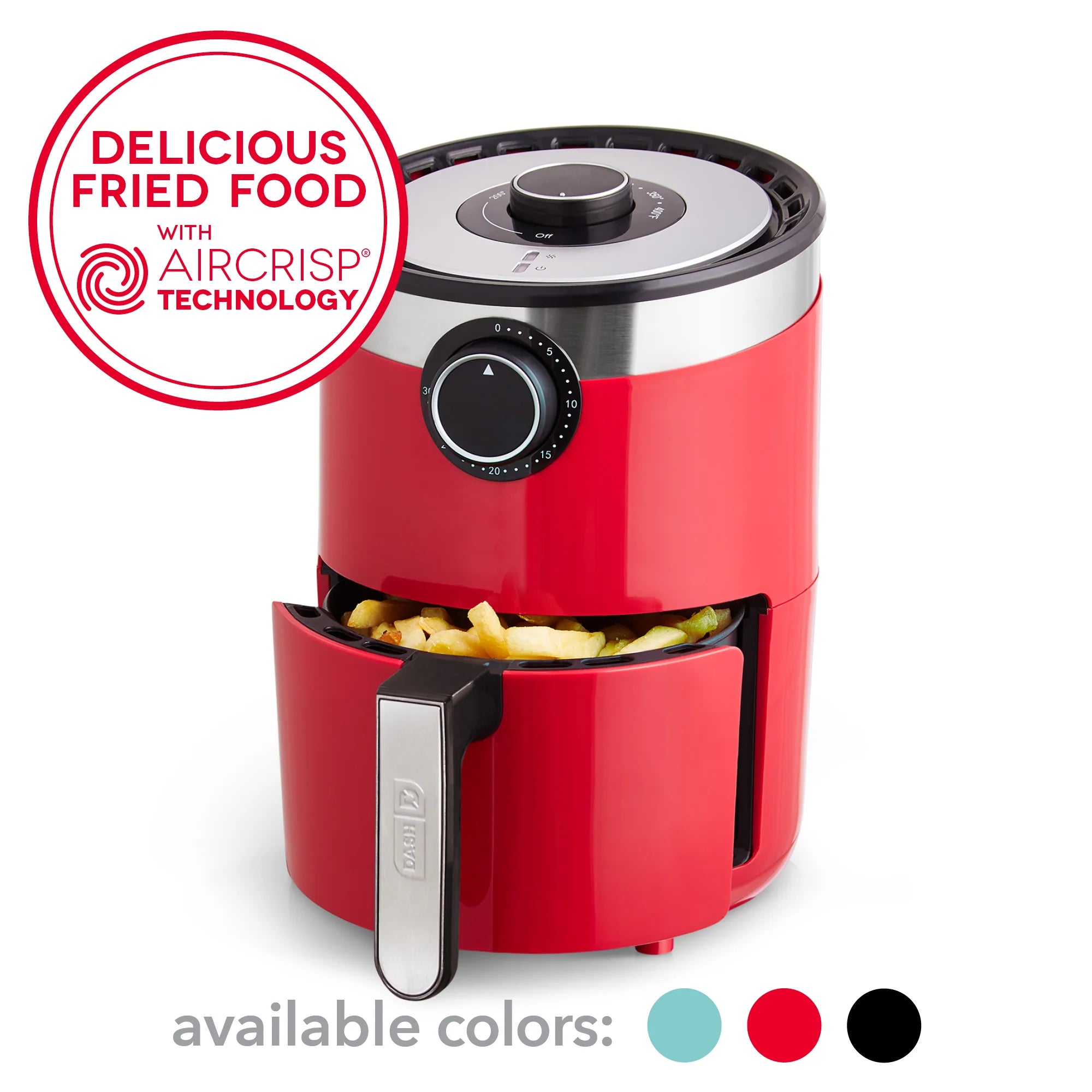 A more compact version of the Dash AirCrisp® Pro Air Fryer, this 2 Qt Air Fryer is perfect for cooking single servings of delicious, crispy fried food with none of the added fat!