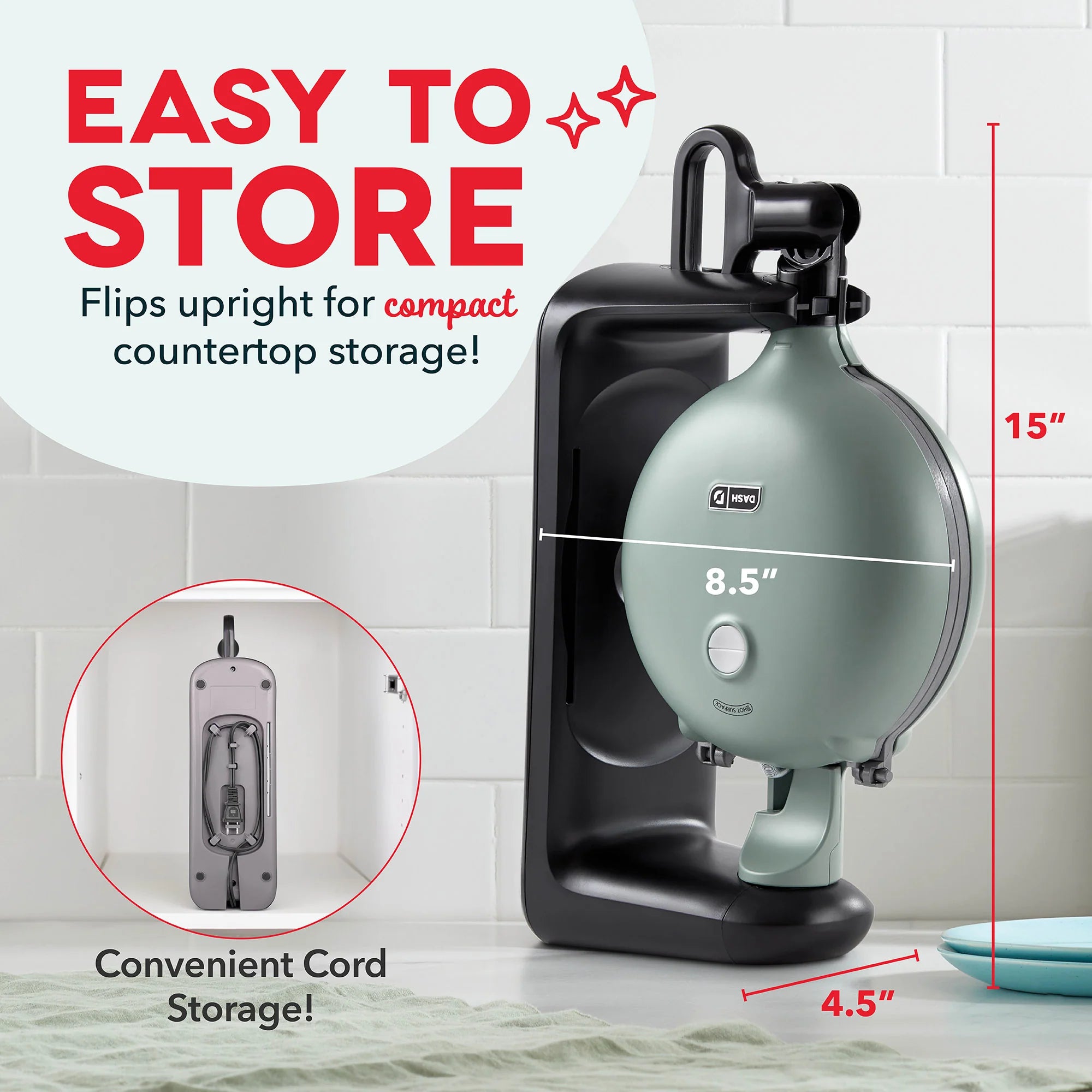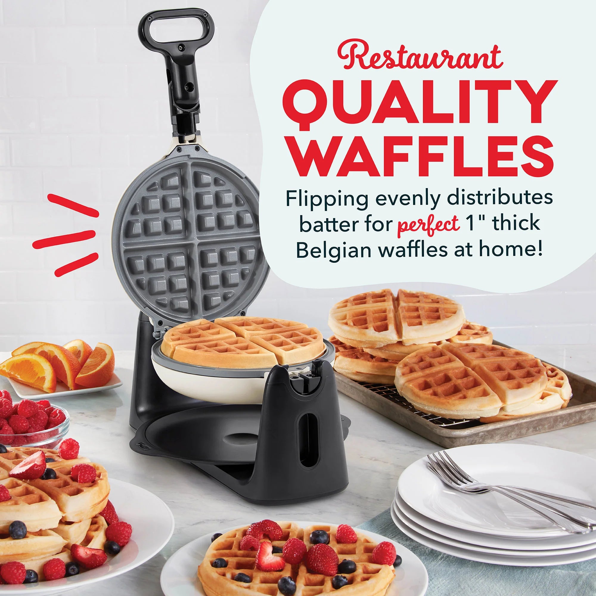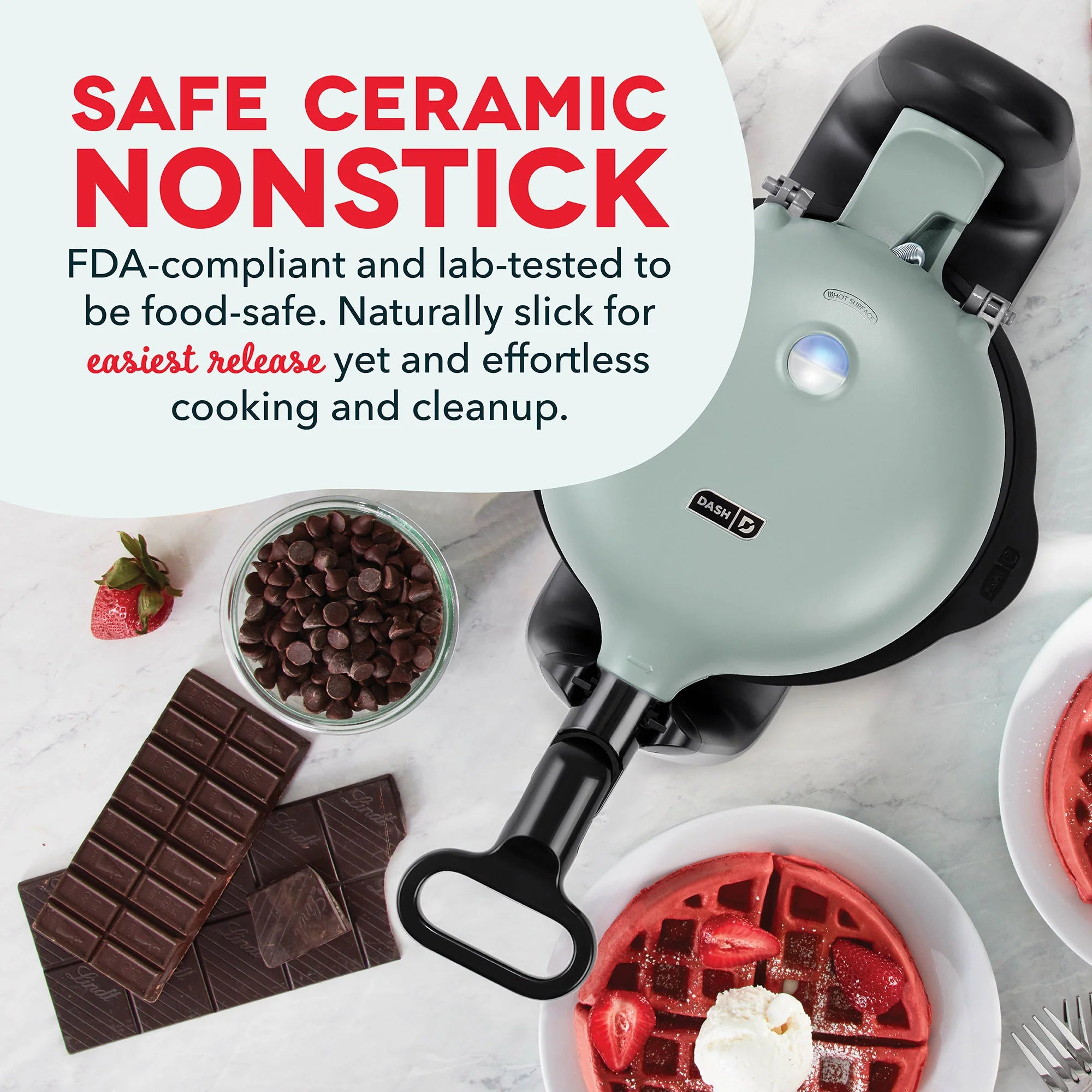 Create thick, crispy restaurant-style Belgian waffles at home with the Dash Ceramic Flip Belgian Waffle Maker!