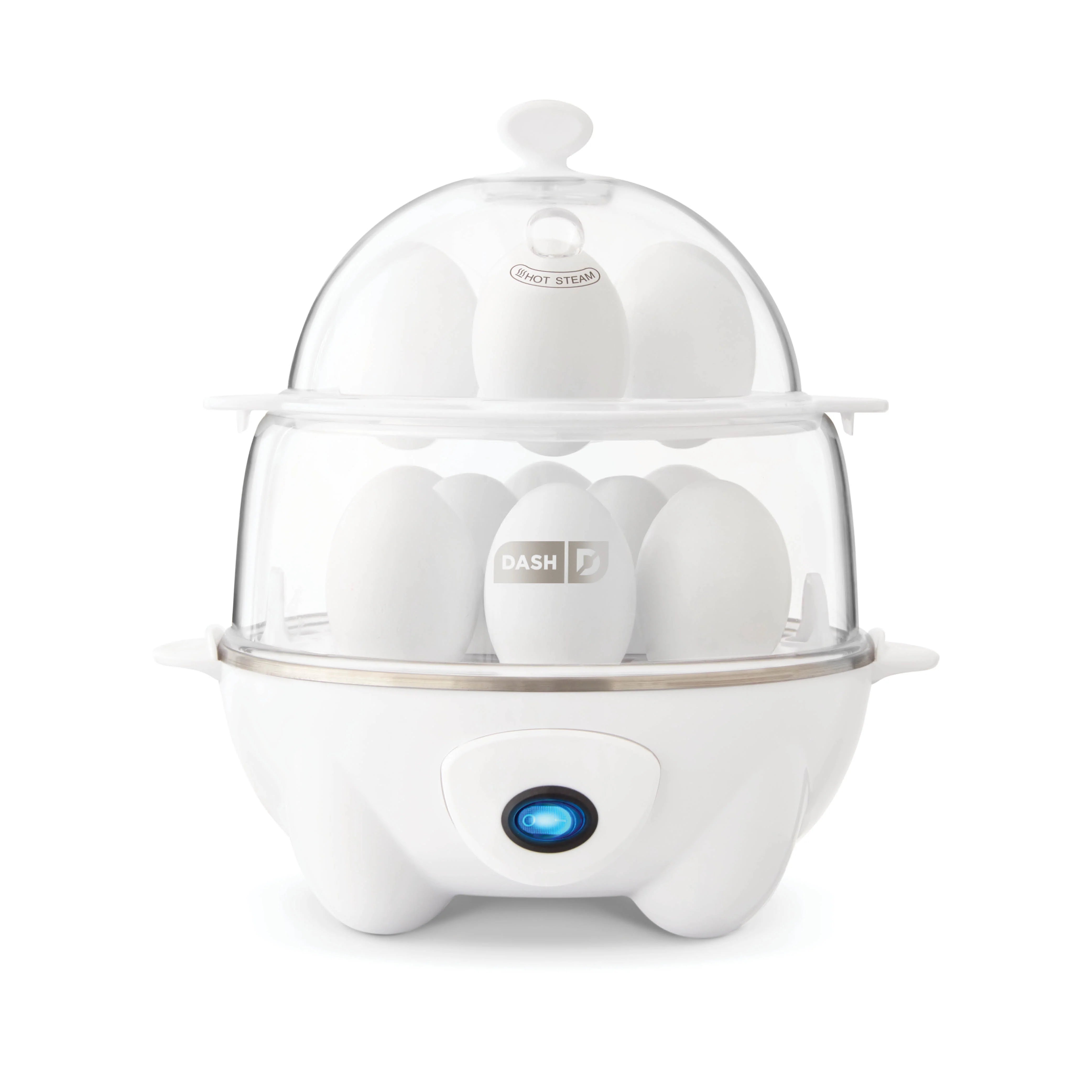 When it comes to eggs, timing is everything. And now, the Dash Deluxe Egg Cooker makes it easy to cook them it eggs-actly how you like them! In less time than it takes to boil water on the stove, boil up to 12 eggs at one time, poach up to 7 eggs, or cook one customized omelette. A precision thermal sensor alerts you when your eggs have reached the desired level of doneness, preventing overcooking and taking all the guesswork out of perfect eggs. The Deluxe Egg Cooker also goes full steam ahead! It doubles as a large capacity steamer, great for vegetables, dumplings, seafood, and more. Plus, cleanup and storage are eggs-tremely easy. Non-electric parts go right into the dishwasher, and all accessories store conveniently inside the cooker. From perfectly poached to deliciously deviled, serving up an eggs-traordinary breakfast has never been easier.