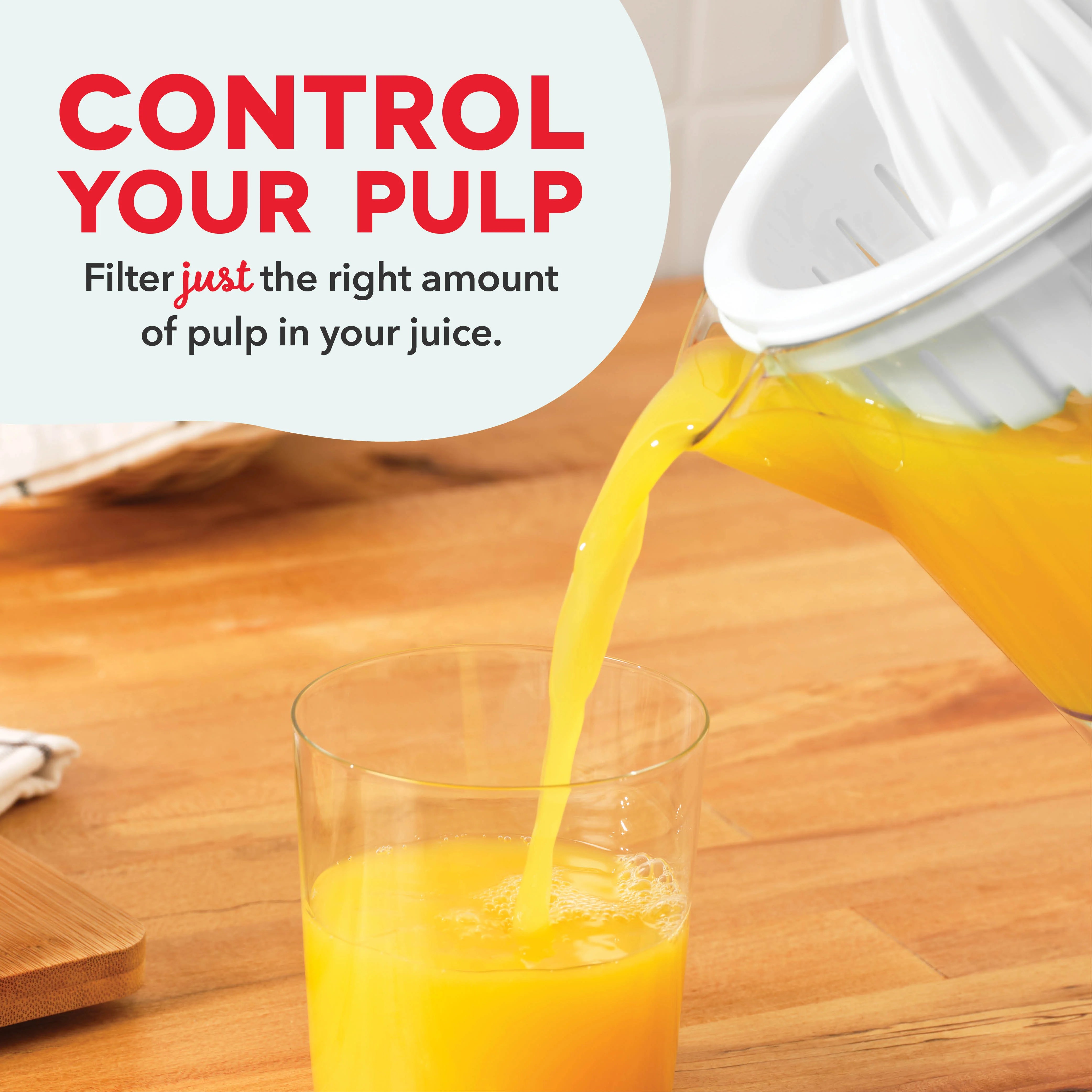 Wake up to an easy cup of fresh juice using the Dash Dual Citrus Juicer! The auto-reversing electric reamer comes with two attachments for different sized fruits, and adjustable pulp control ensures you’re always getting the quality of juice you want. The 25 oz container comes with a spout for pouring, and is refrigerator friendly for storage. Simply plug in and push down on the reamer to use, and you’ll be enjoying healthier, homemade juice in no time.
