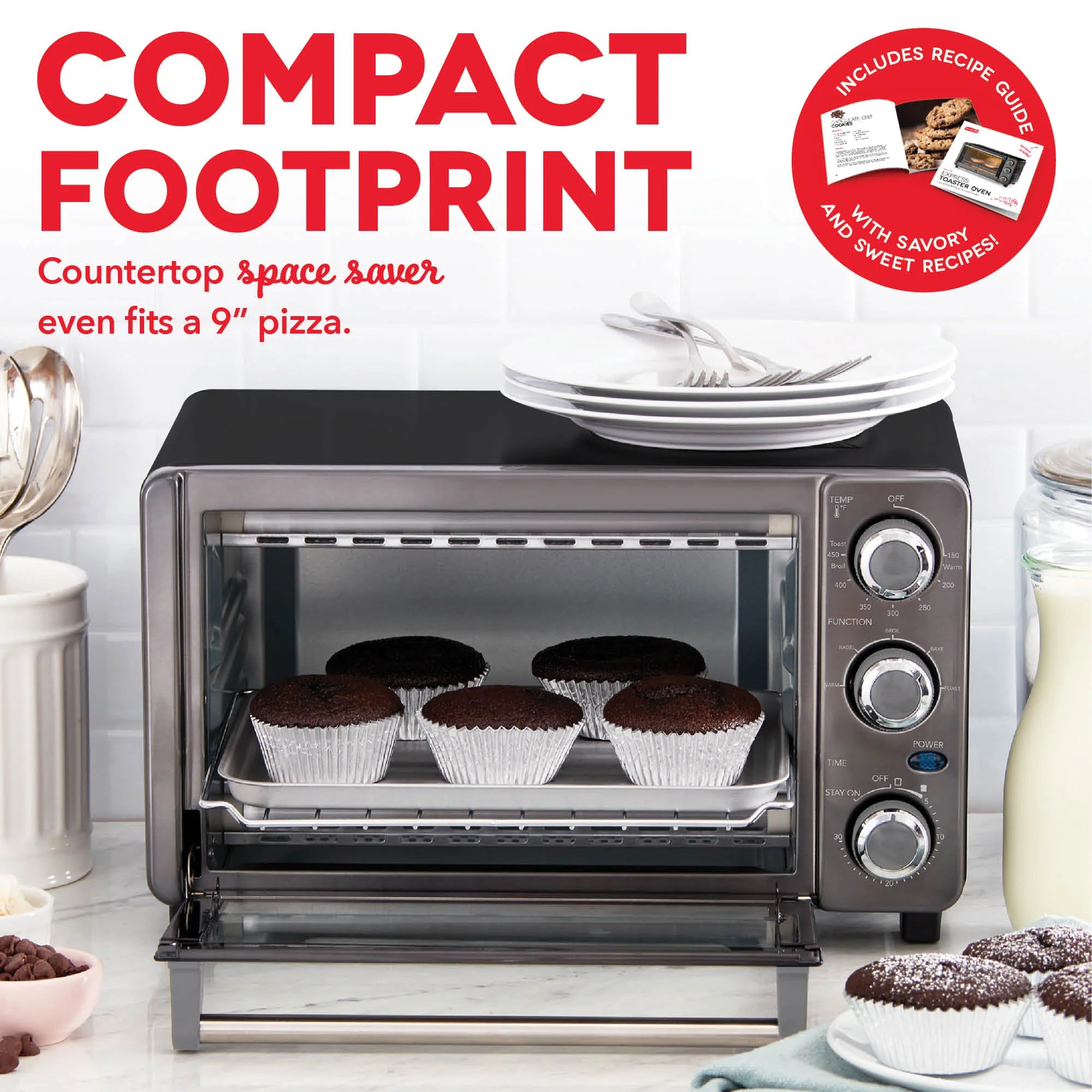 Cook toast, pizza, cookies, and more on your countertop with the Express Toaster Oven.