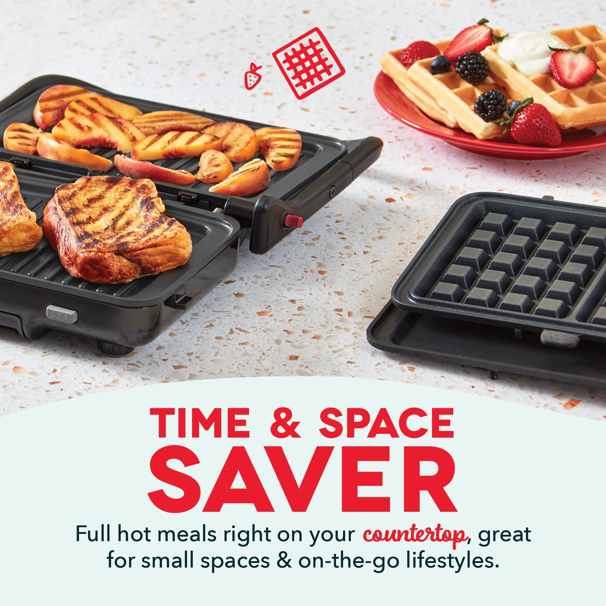 A waffly delicious addition to your MultiMaker™ Flex Press Grill System! With just one device, grill, griddle, make waffles, and press sandwiches—a full countertop Cooking System for whipping up hot meals in a dash sans stovetop. Removable Plates seamlessly pop out from the Grill and go right into the dishwasher for a no-mess cleanup. Includes two Removable Waffle Plates—breakfast, lunch, and dinner are served!