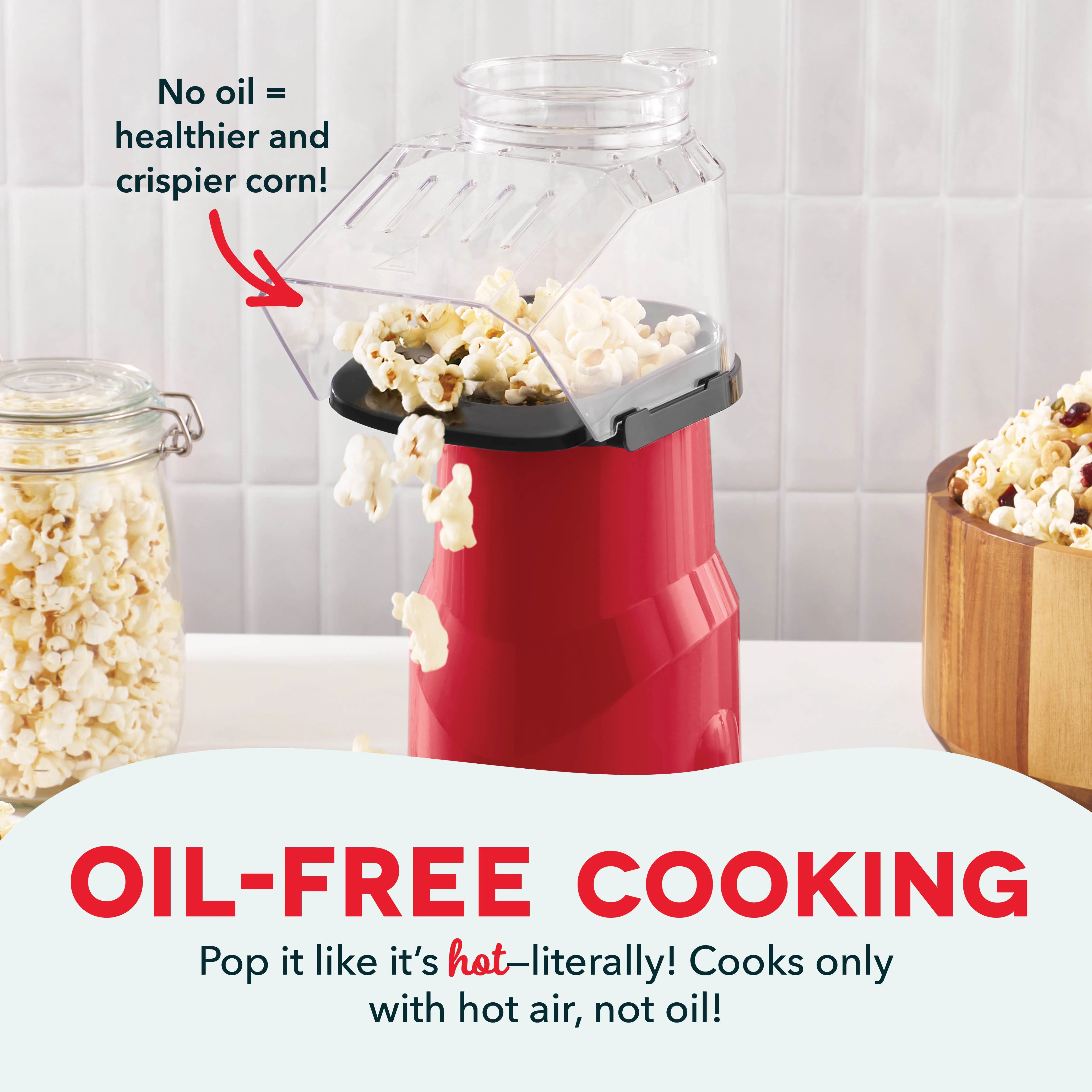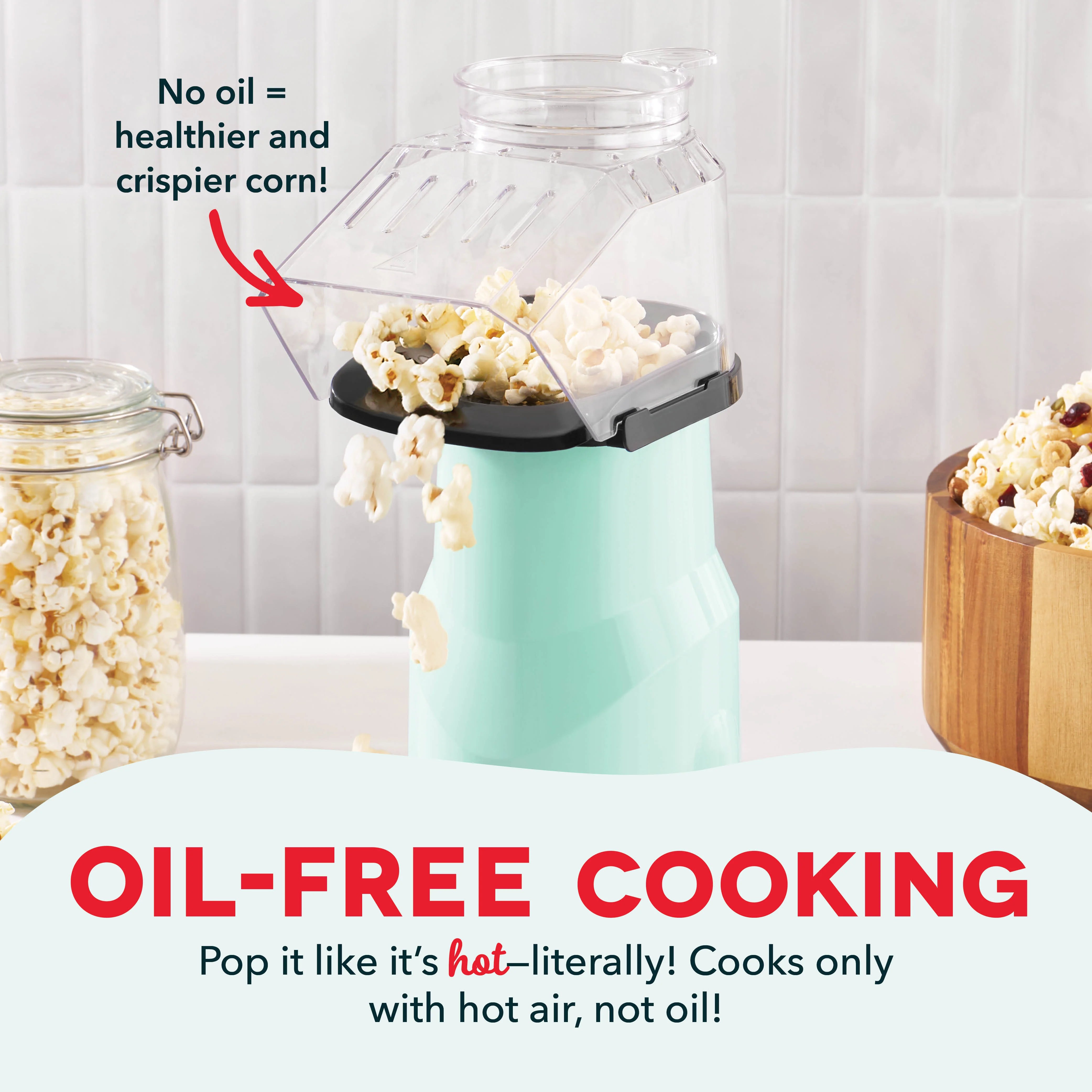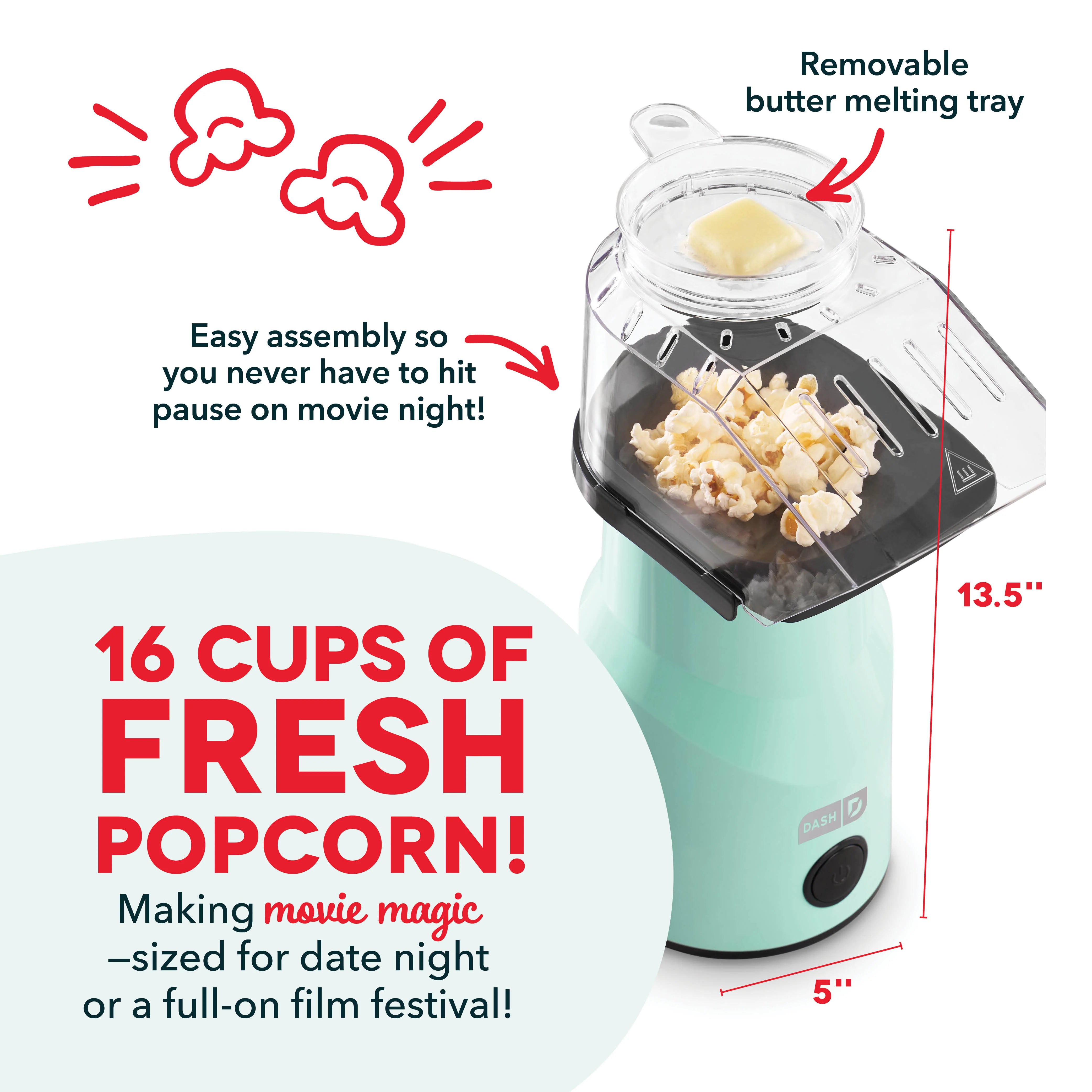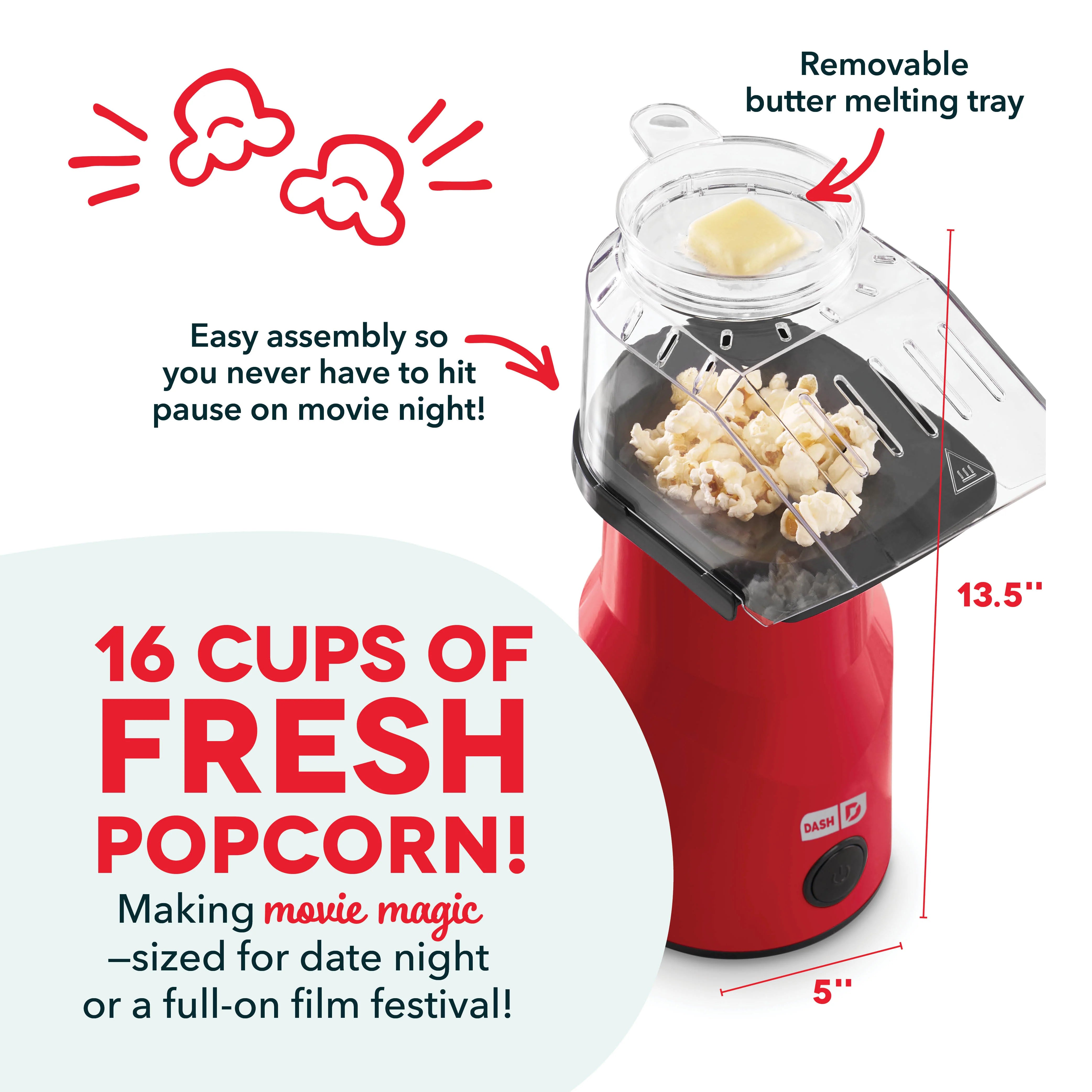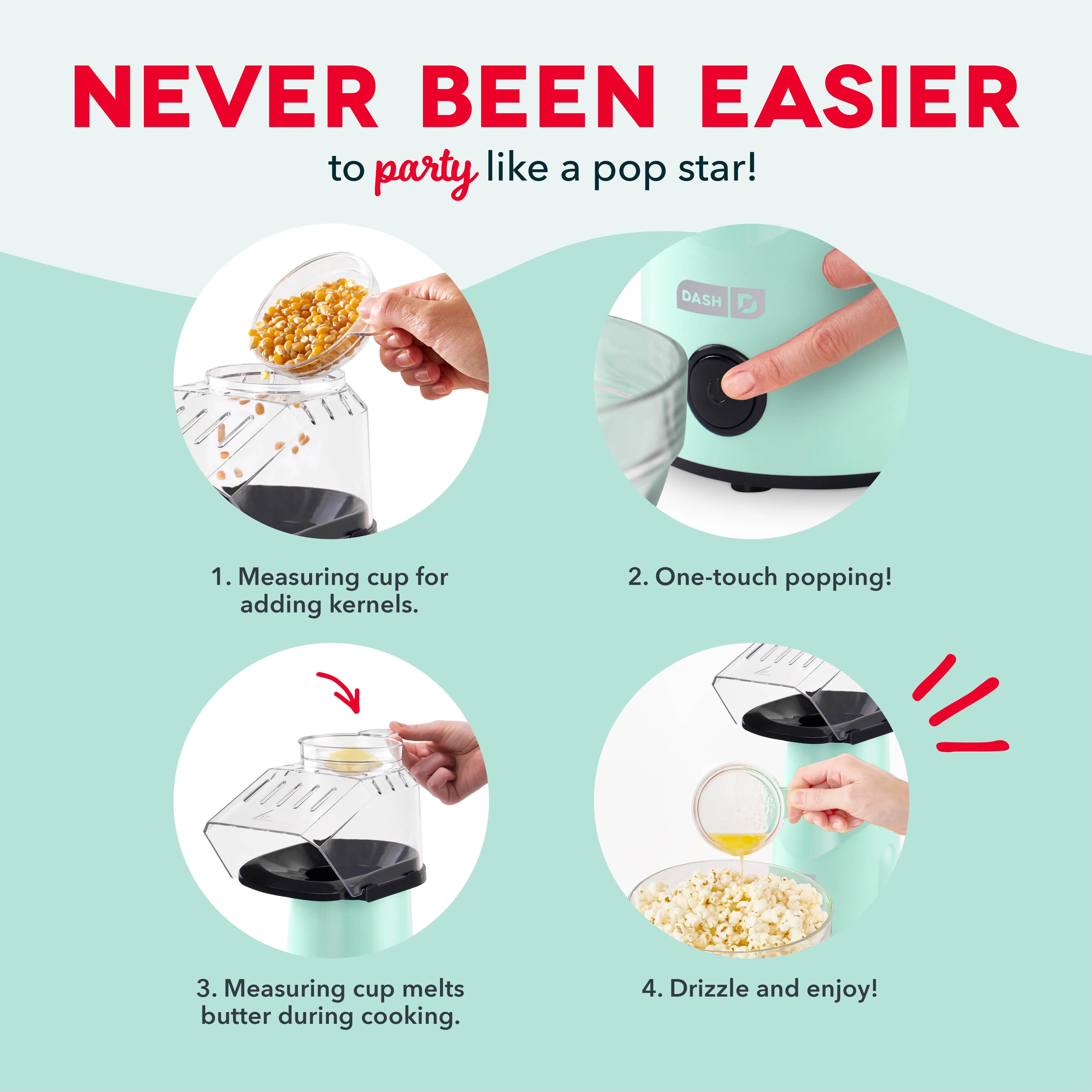 Pop it like it’s HOT! The Dash Hot Air Popcorn Popper cooks using only hot air, no oil necessary! That means you can party like a POP star with a healthier movie night snack that’s ready in a dash! Pop up to 10 cups of fresh popcorn at one time, the perfect size for snacking solo or for a delicious date night. Included Measuring Cup ensures perfect portions then doubles as Butter Melting Tray—place on top during cooking to melt butter for drizzling! And it’s so easy to use—get poppin’ with just one touch! Cute and compact, it’s the ideal movie night sidekick for smaller spaces. And with our included Recipe Guide filled with ideas and inspo, the poppin’ never stops!