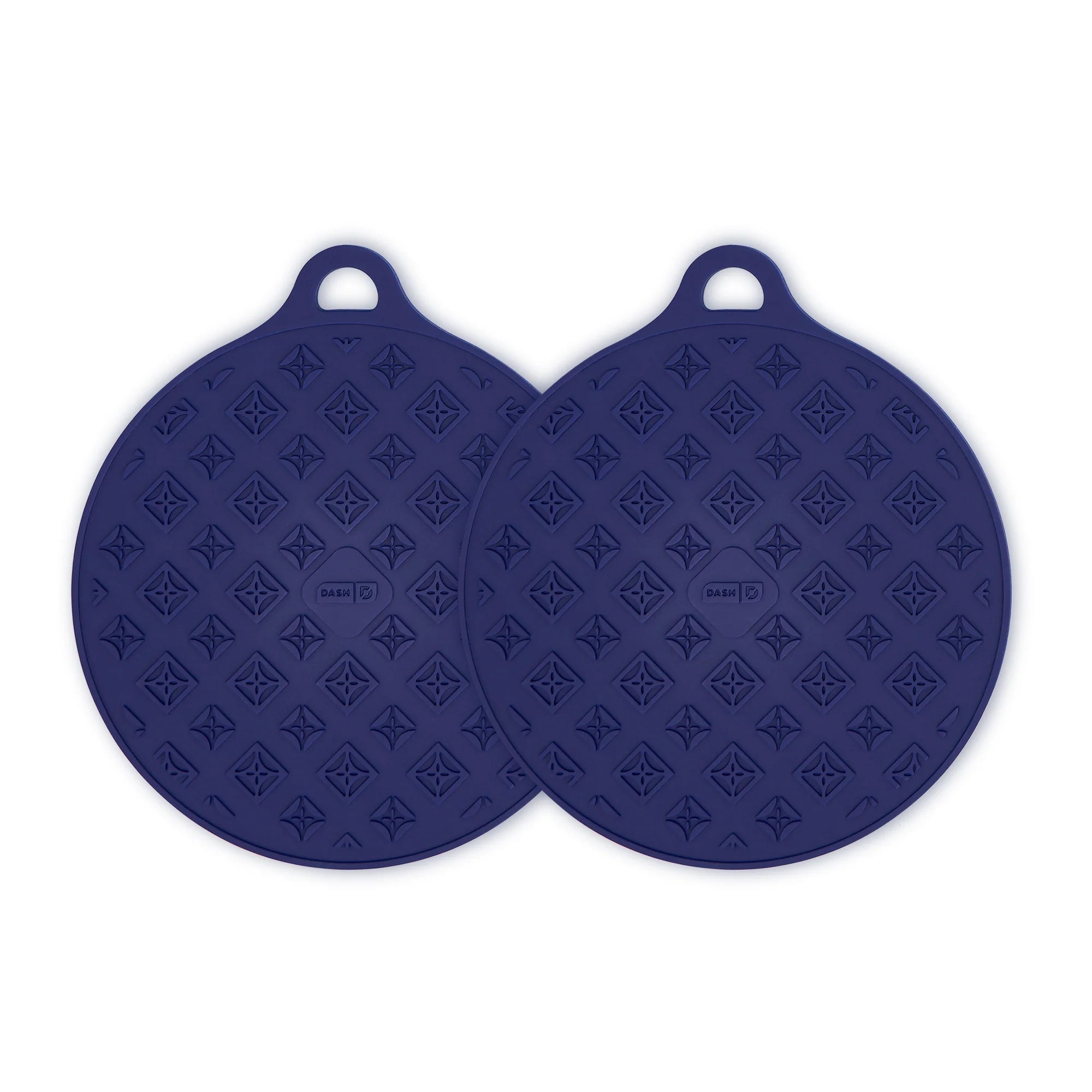 The Dash 2-Piece Magnetic Silicone Trivet Set is a convenient way to protect your kitchen countertops from burns and scrapes. The two 6” Silicone Trivets are easy to use — just rest your pan on the Trivet and magnets will attach automatically, allowing you to move pans from one surface to another without burns. The silicone surface is heat resistant up to 425°F and dishwasher safe, so cleanup is a breeze. Both trivets are printed with a signature Dash pattern, and one side has a deeper print so trivets can double as a spoon rest. These versatile Magnetic Trivets are an easy way to protect your kitchen and cookware from everyday wear and tear. Note: While the trivets still protect countertops from hot aluminum pans, the magnets will not adhere to aluminum.