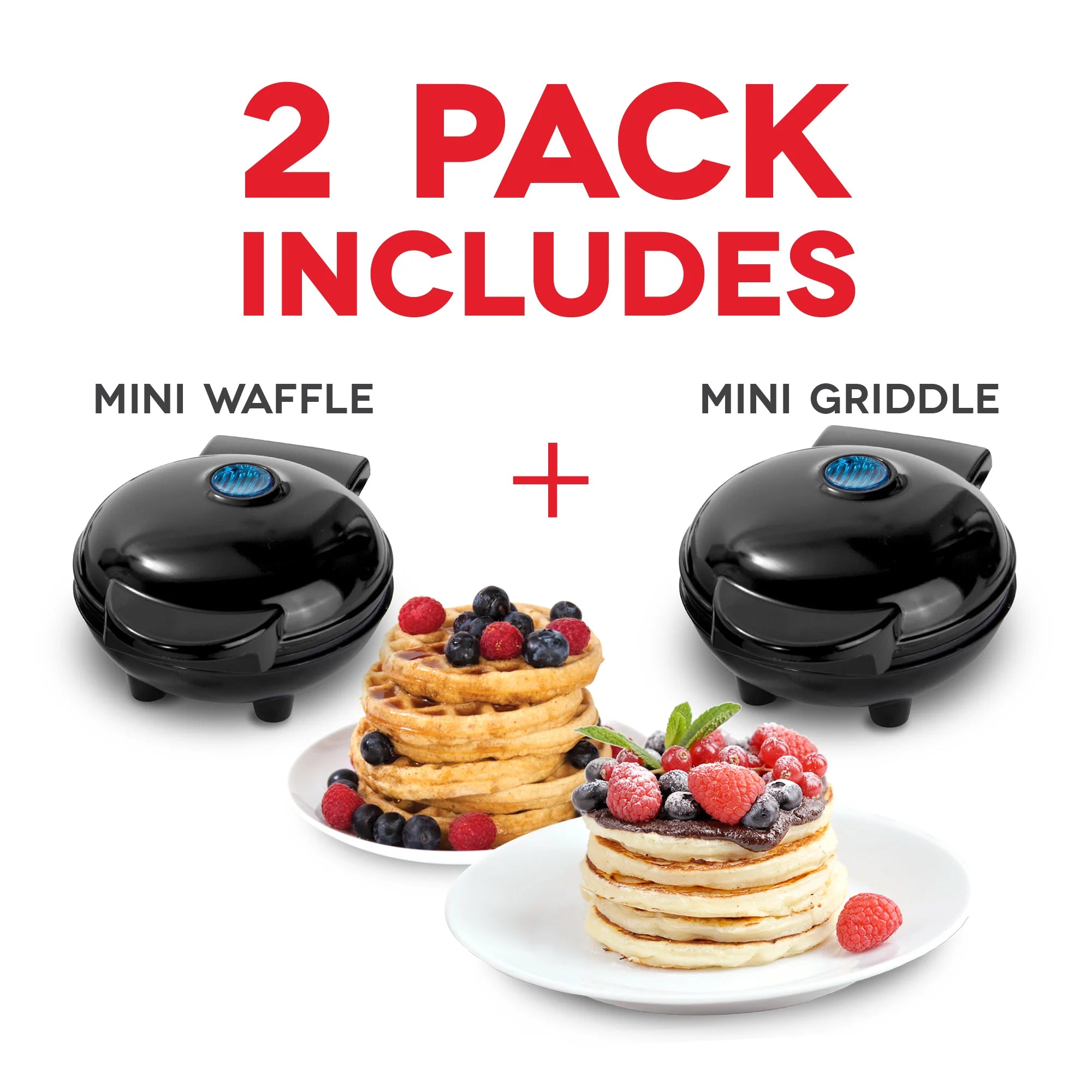 From fried eggs to grilled sandwiches and waffles, this PTFE nonstick Mini Maker Duo does it all! Featuring a Mini Maker Griddle, and Waffle Maker, these cute, compact appliances make individual portions for delicious snacks and treats. All Mini Makers heat evenly for perfect results, and dual nonstick cooking surfaces release food easily and make cleaning simple. Mini Makers are compact and fit easily in small apartments, dorm rooms or a camper — a great gift for someone on the go! No assembly necessary, simply plug in your Mini Maker and you’re ready to cook!