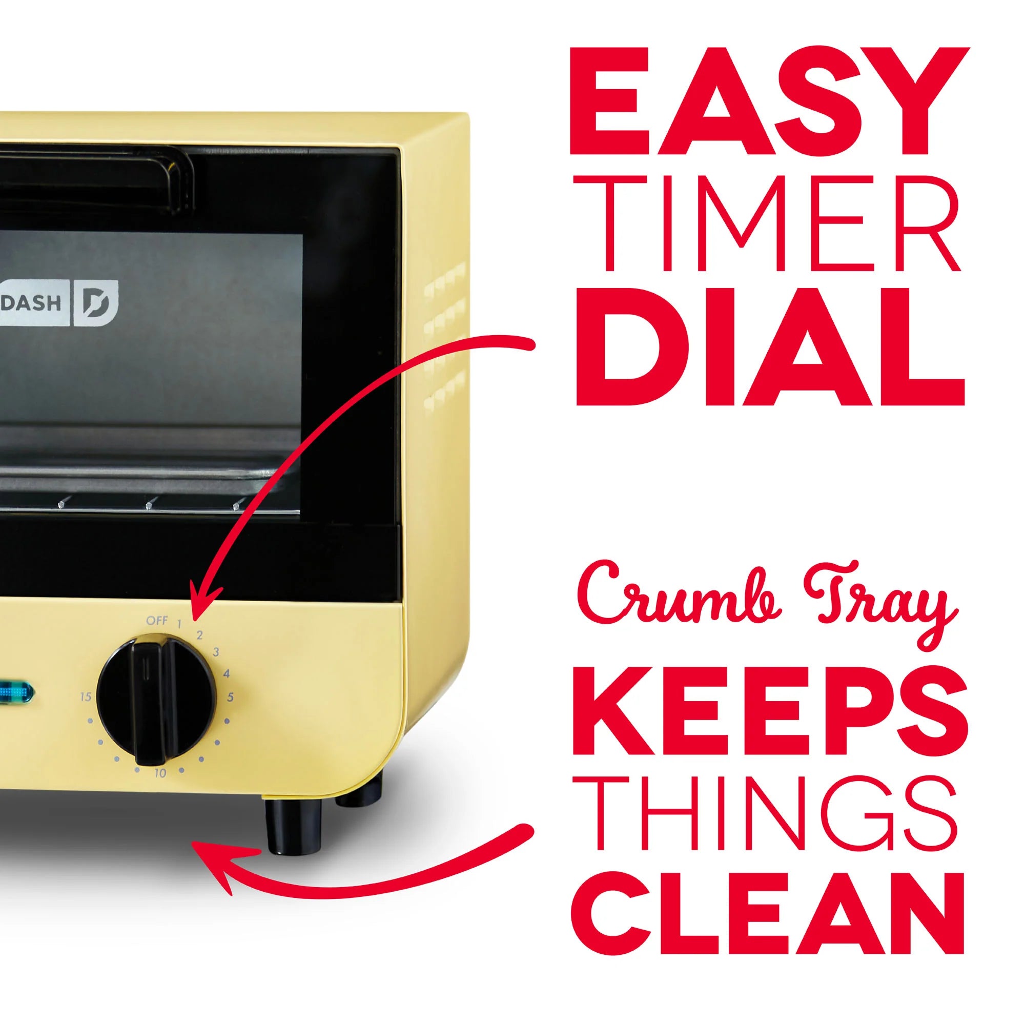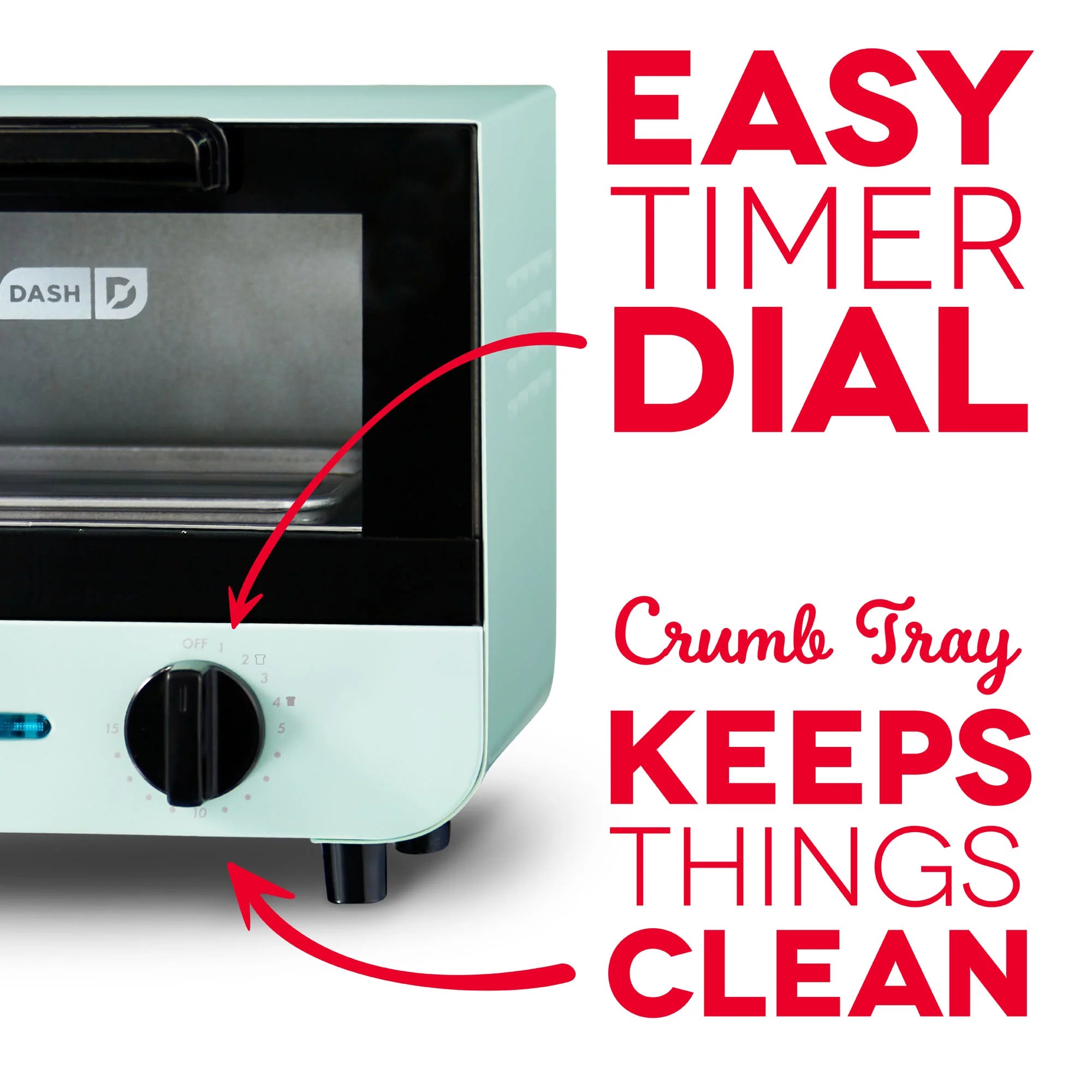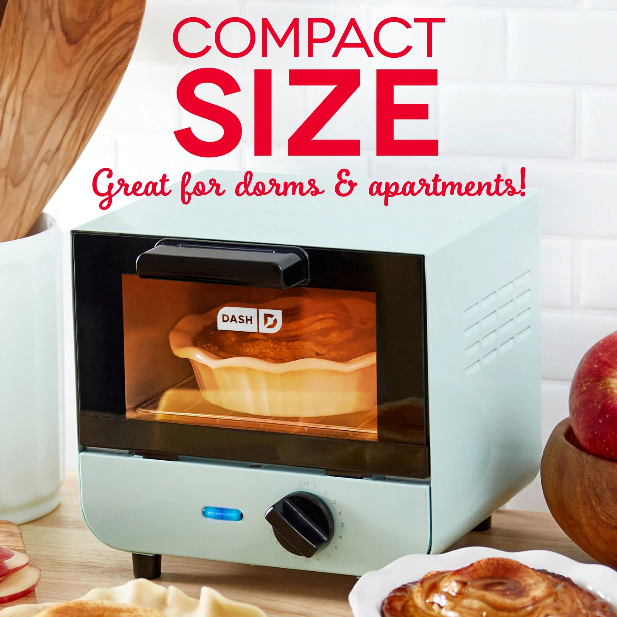 The Dash Mini Toaster Oven is perfect for cooking with limited counter space. Make single slices of toast, bagels, mini-pizzas, even cookies! The precise dial controls temperature to your exact specifications, and the auto shut-off feature will prevent burning, giving you perfect results every time. The cute and compact Mini Toaster Oven includes a removable baking tray, oven rack, and crumb tray for easy cleaning. Great for a dorm room or camper / RV, this Mini Toaster Oven is a convenient solution for making quick snacks.