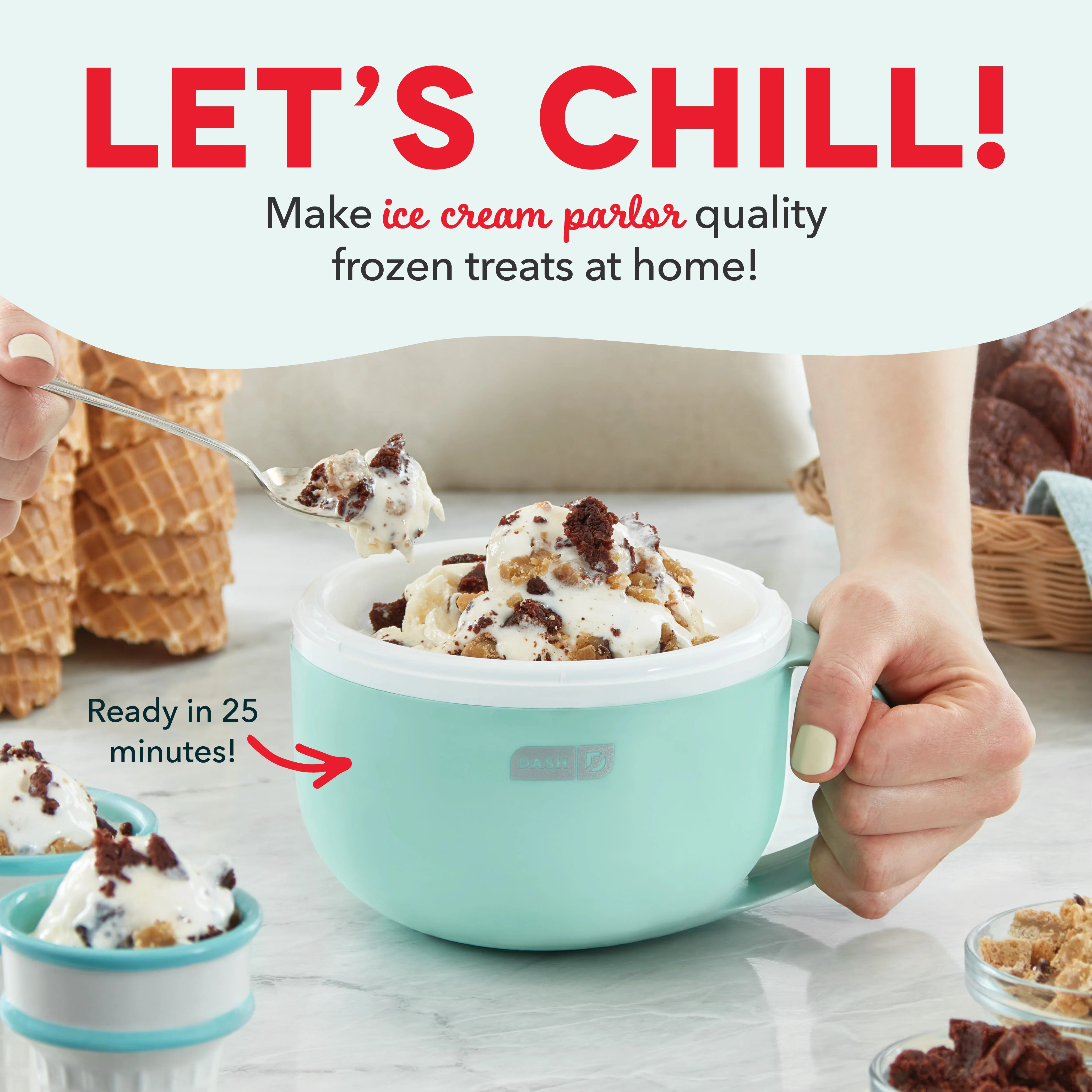 Make delicious single servings of ice cream, gelato, sorbet, and frozen yogurt with the Dash My Mug Ice Cream Maker!
