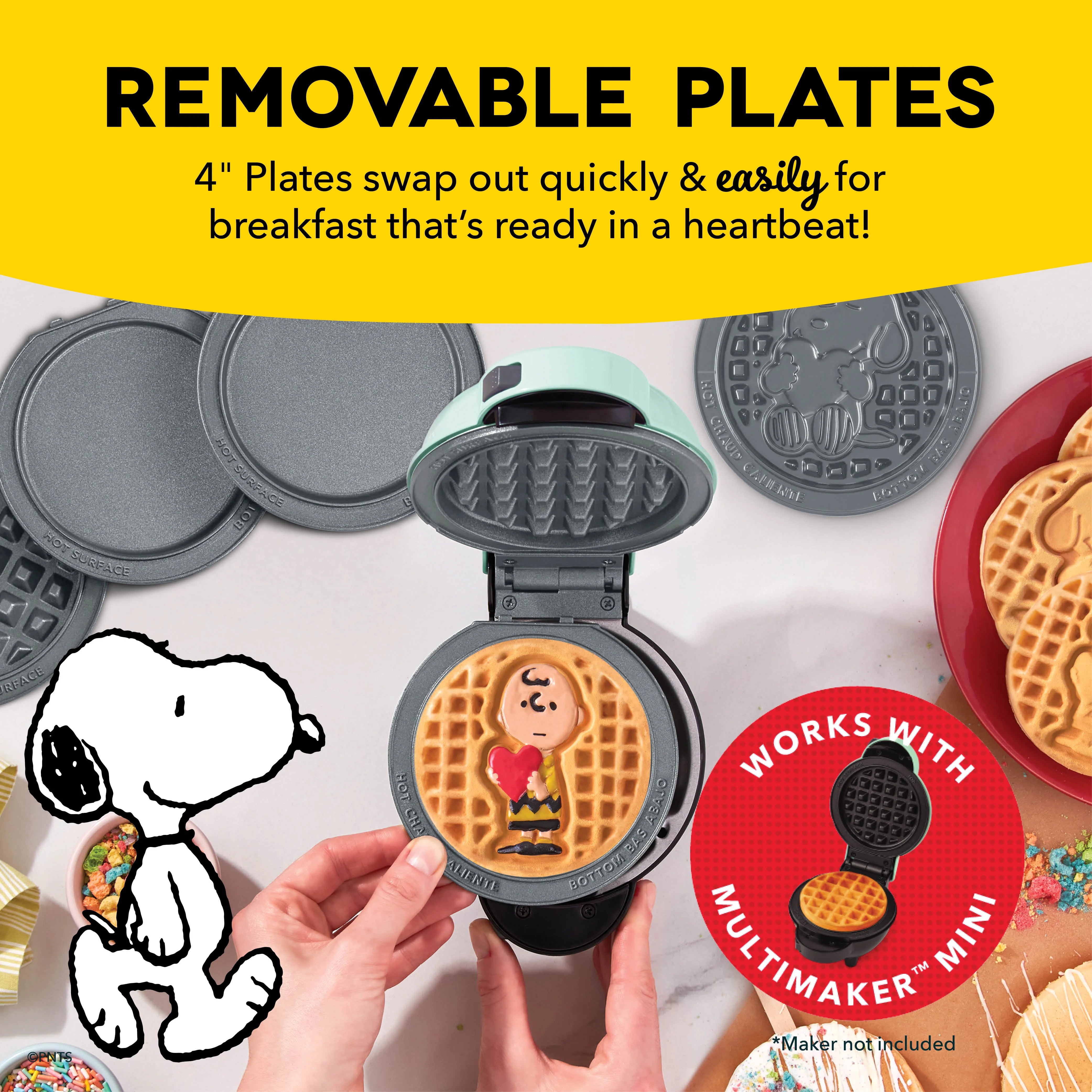 Get ready to spread some love with our Charlie Brown & Snoopy with Hearts Removable Plates, perfect for creating a hearty breakfast with any Dash MultiMaker™ Mini Maker System. These Removable Plates heat up quickly and cook evenly, making it easy to whip up a flurry of waffles that would make even Lucy smile! With their easy-release Safe Ceramic Nonstick coating, every waffle is picture-perfect, ready to win hearts all around. Cook up a delicious dose of nostalgia with classic Peanuts® characters and let these minis serve up major love!