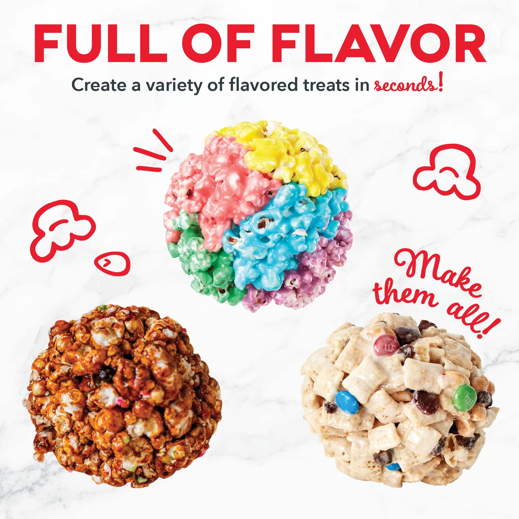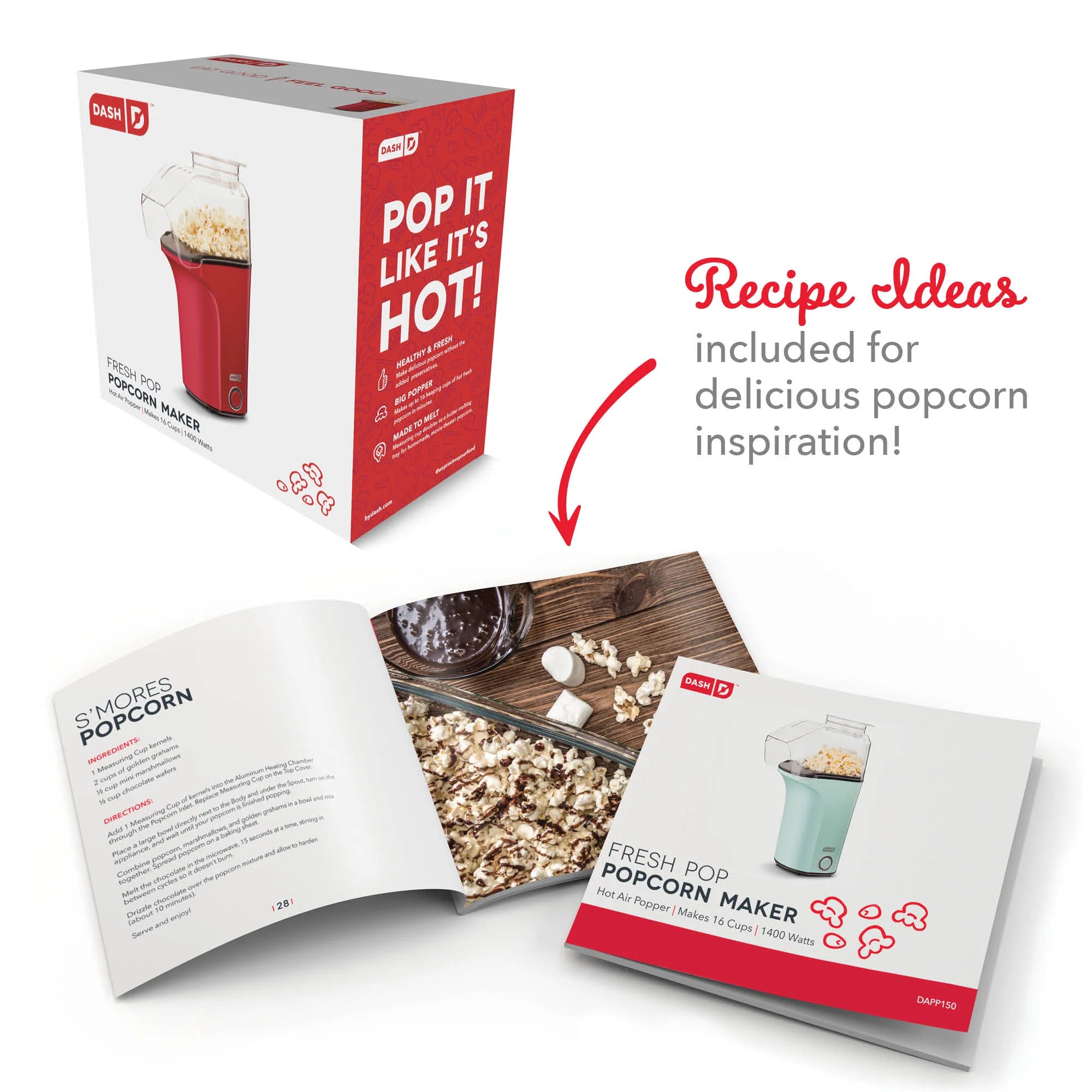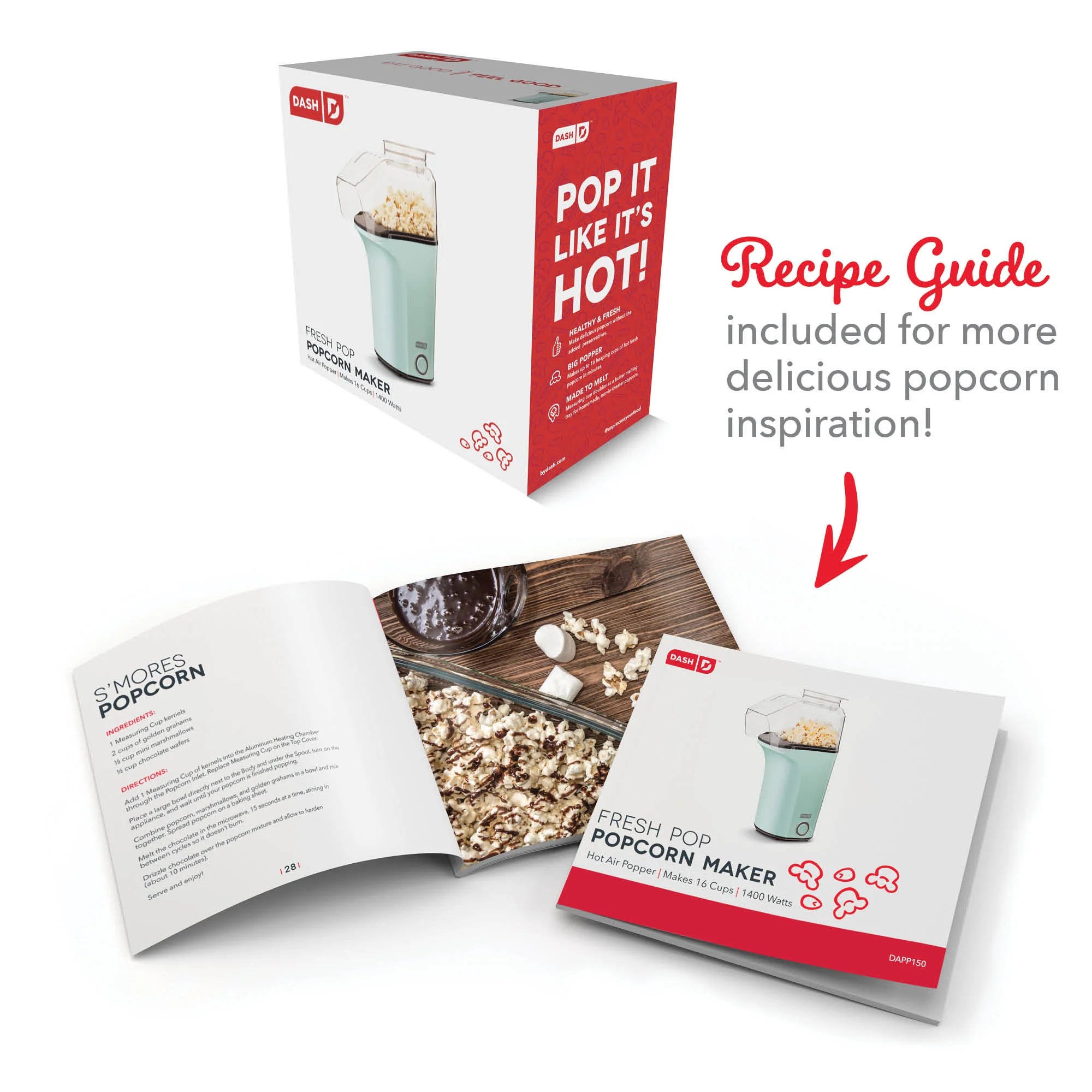 Deck the halls with homemade popcorn treats using the Dash Holiday Popcorn Bundle! This bundle includes the Dash Fresh Pop Popcorn Maker and set of 2 Dash Popcorn Ball Makers, so you can make your own popcorn balls from start to finish! The Fresh Pop Popcorn Maker cooks up to 16 cups of popcorn in minutes, with an included measuring cup that doubles as a butter melting tray. Once your popcorn is ready, use the Popcorn Ball Makers to scoop and form the popcorn into a ball—all while keeping your hands mess-free! You can even add an ice pop stick in the Lid’s opening to make easy-to-eat, portable treats. The included Recipe Guides will get you started with both classic and creative popcorn treats to try this holiday season and year-round!