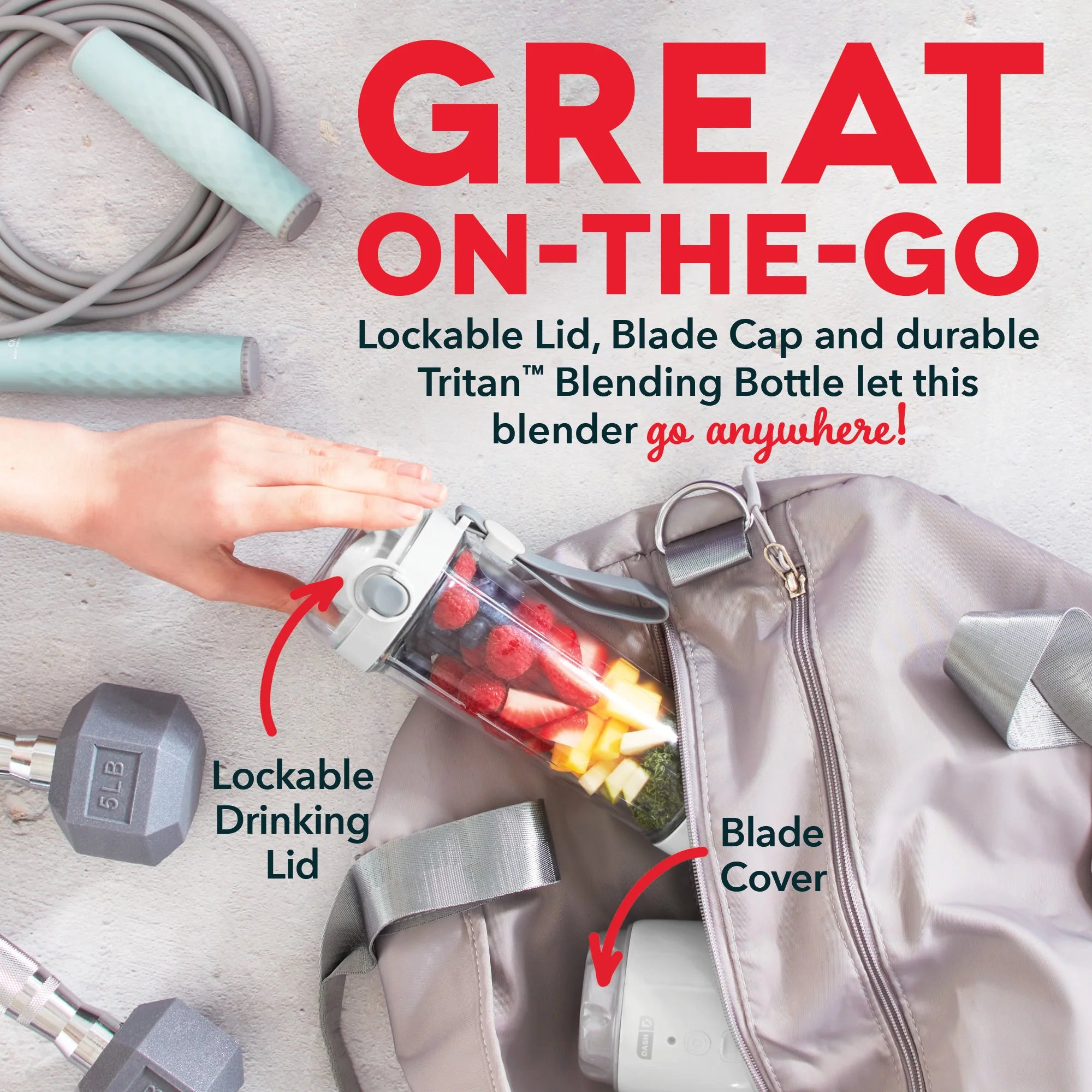 Pack your favorite recipe and blend fresh smoothies and shakes at the gym, outdoors or anywhere you’d like with the Dash Portable Blender! A powerful DC motor can handle fruits, veggies and small ice cubes, while the 12.8oz Blending Bottle holds the perfect amount for a single serving; plus, the Blender is rechargeable! The Blending Bottle comes with a leak-resistant Drinking Lid, so you can enjoy smoothies on the go, and the bottle is made of a durable clear Tritan™ material that won’t shatter or get foggy over time. Grab the included Recipe Guide and get started making delicious drinks!