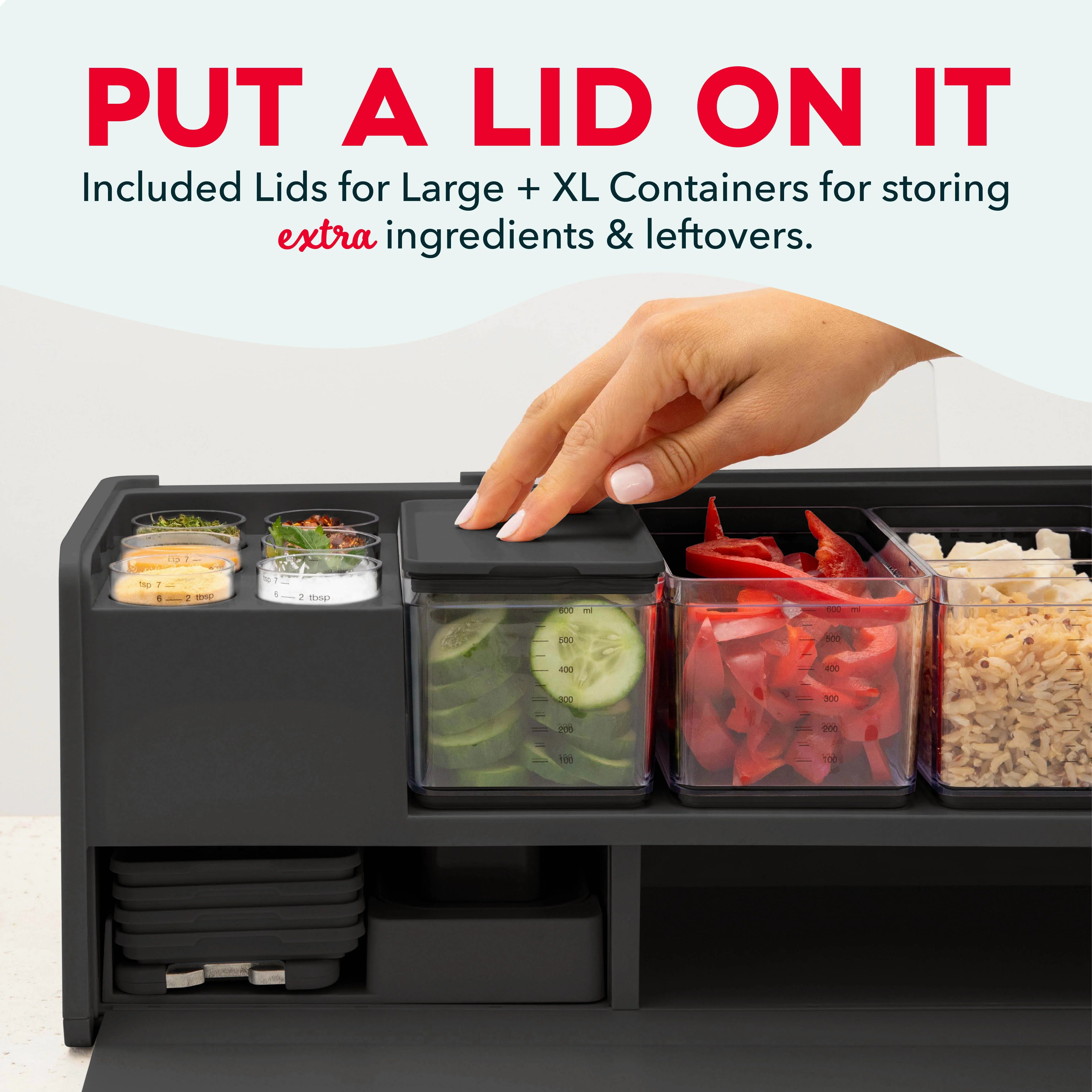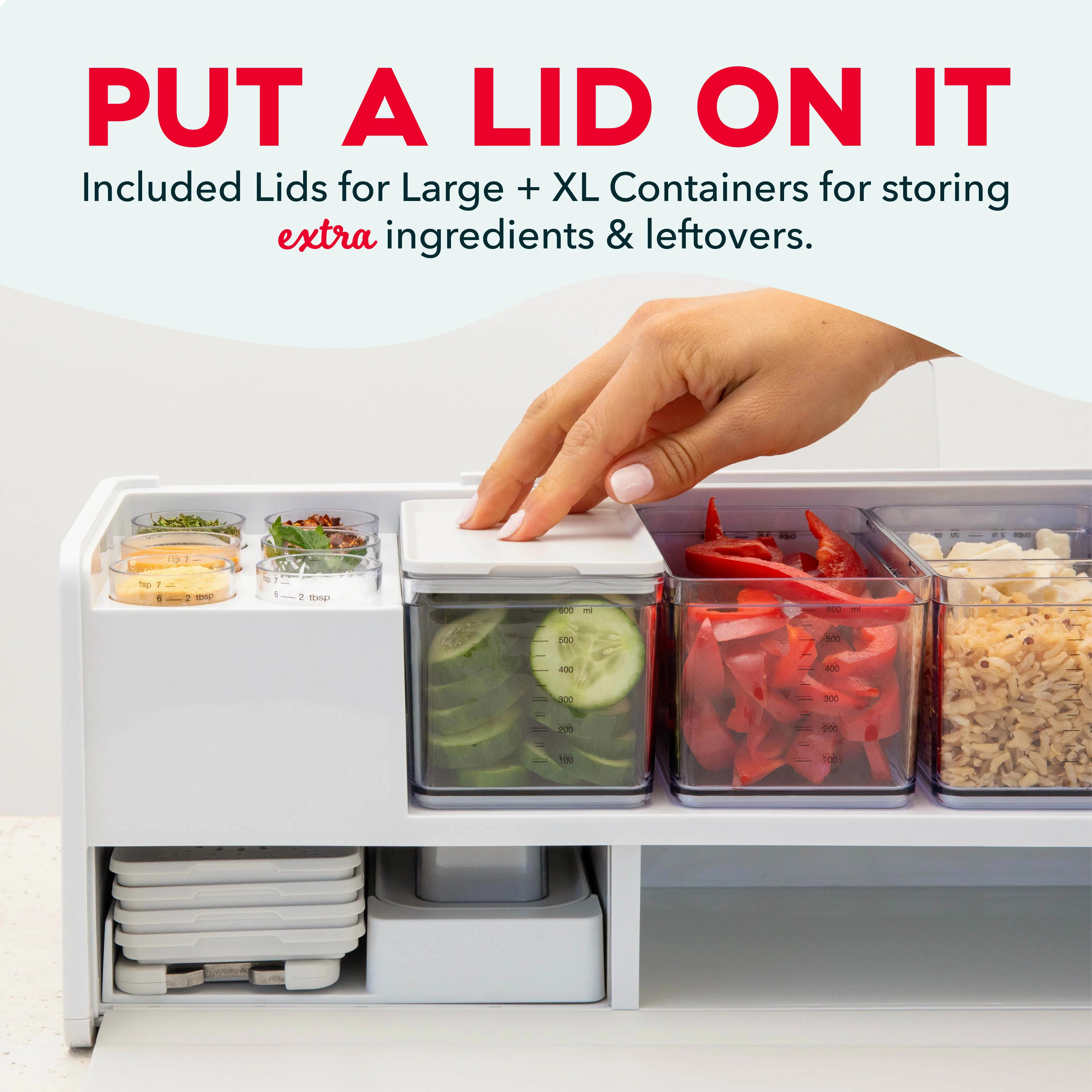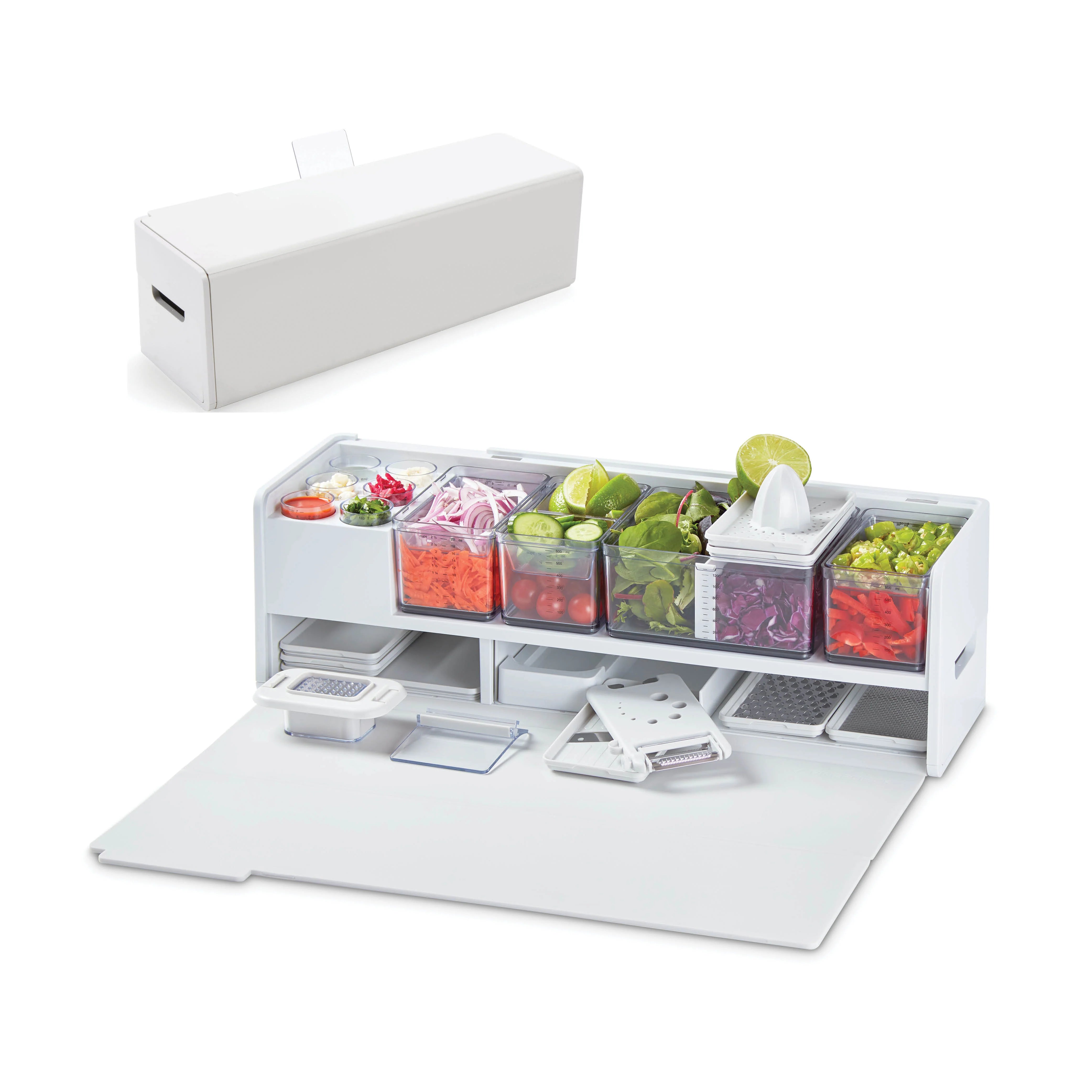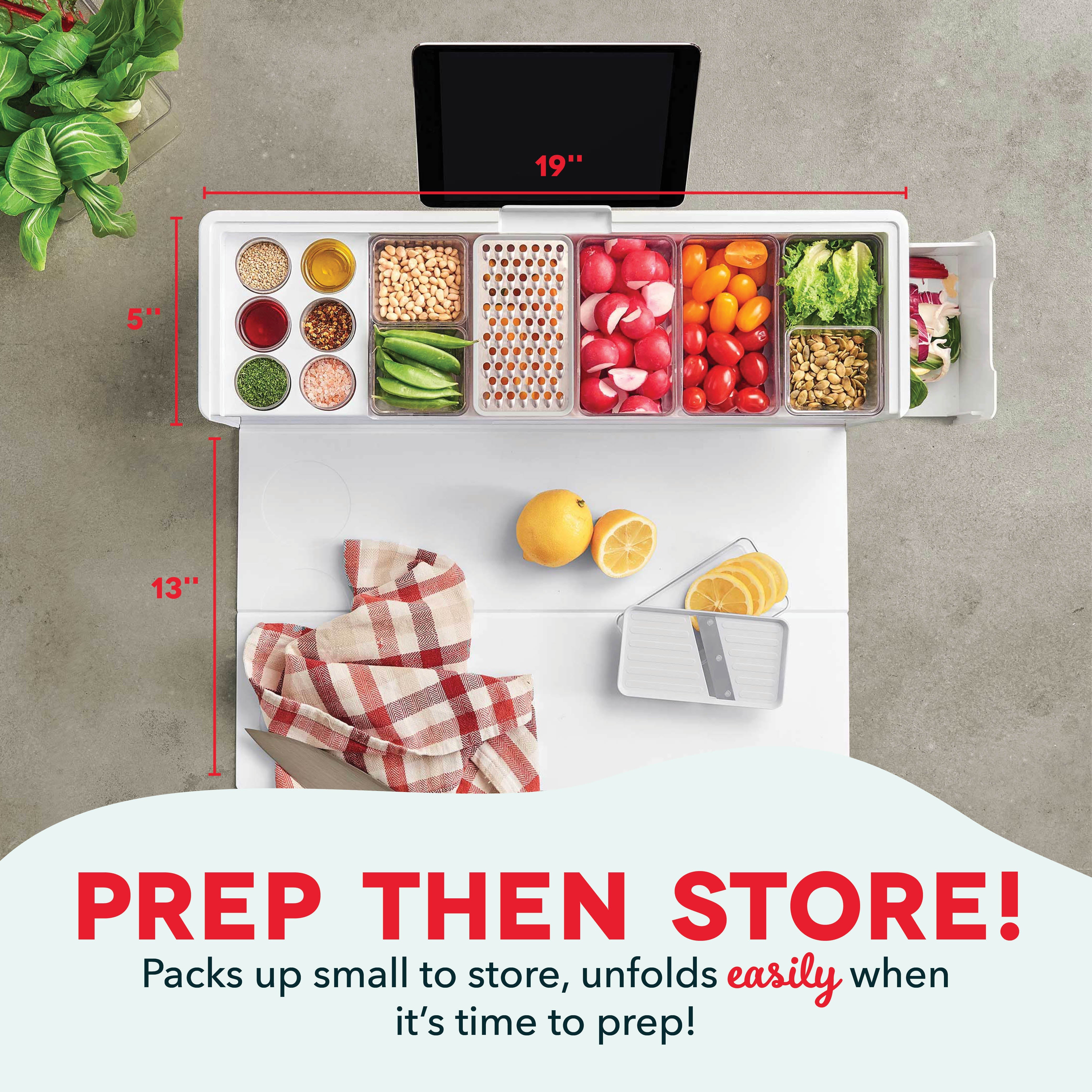 Trying to get dinner on deck while staying one prep ahead? The Prepdeck System has everything a home chef needs to prep five-star meals at home! The easy-to-use System keeps ingredients organized so that the kitchen and counter stay tidy, freeing up home chefs to cook without distraction, fully embracing the joy of cooking for family and friends. To help you take the next step in your culinary journey, five handy chef’s tools are included: A Juicer, Grater, Zester, Mandoline, and a 5-in-1 Peeler, plus a Garlic Crusher that doubles as a Finger Guard. Stay a cut above with an attached spacious Cutting Board. And store it all in 14 Storage Containers that range in size from Small to XL, all with Measurement Markings for easily sizing up ingredients! Large and XL Containers come with Lids for easy stackable fridge storage. The entire System packs up to go right in the fridge—prep the night before and store! When the prep work is done, accessories go right into the dishwasher. Prep for pizza night and get ready for Taco Tuesday with included PREP-cipe Guide! Now, are you ready to start cooking and zest with the best? YES, Chef!