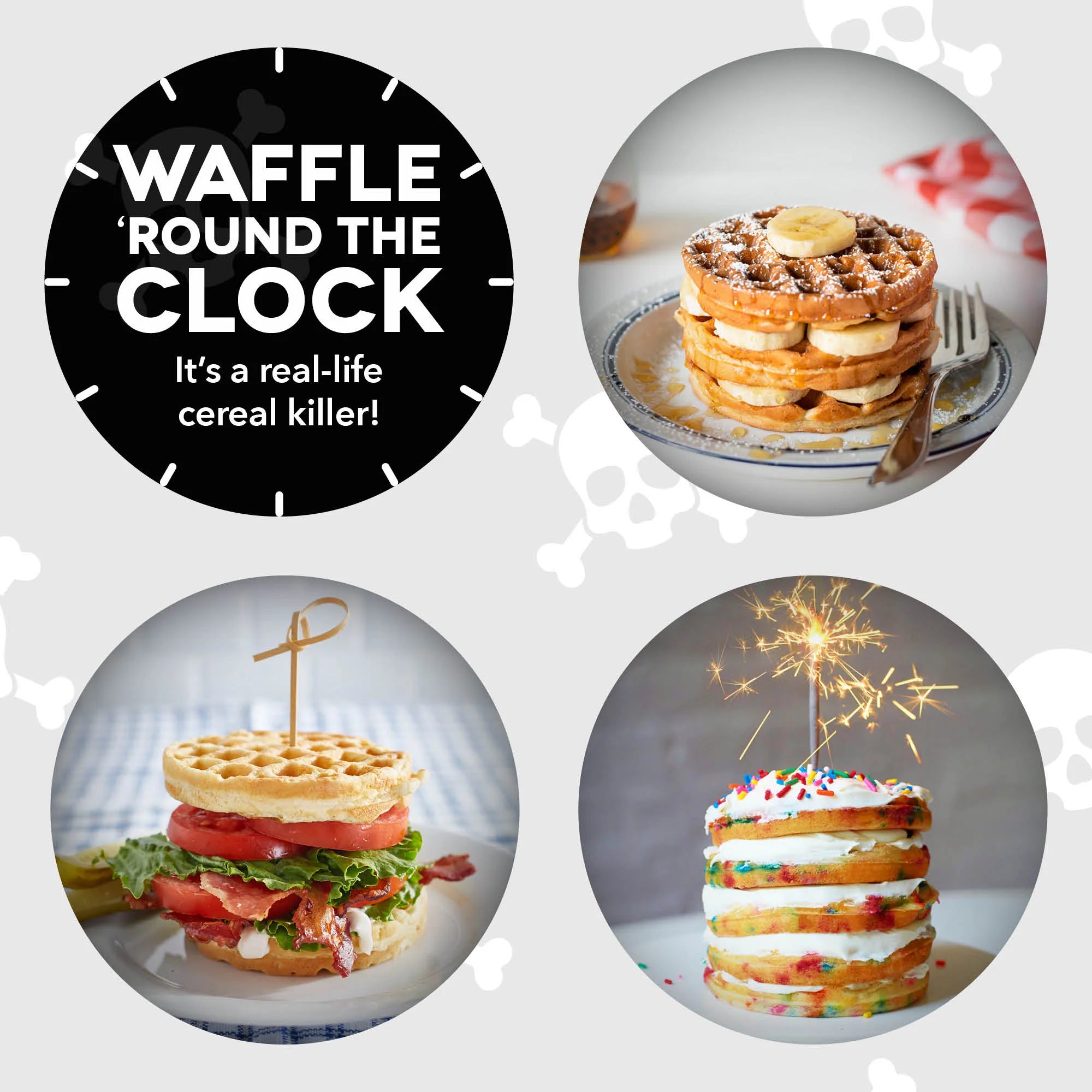 This Mini Maker comes with a PTFE nonstick plate inside that prints a cheerful skull on every waffle. With a 4” diameter and nonstick coating, you’ll be making delicious mini waffles for all your best ghouls in just a few minutes. This Mini Maker comes with a plate inside that prints a cheerful skull on every waffle. No bones about it, these waffles bring a spooky touch to any meal.