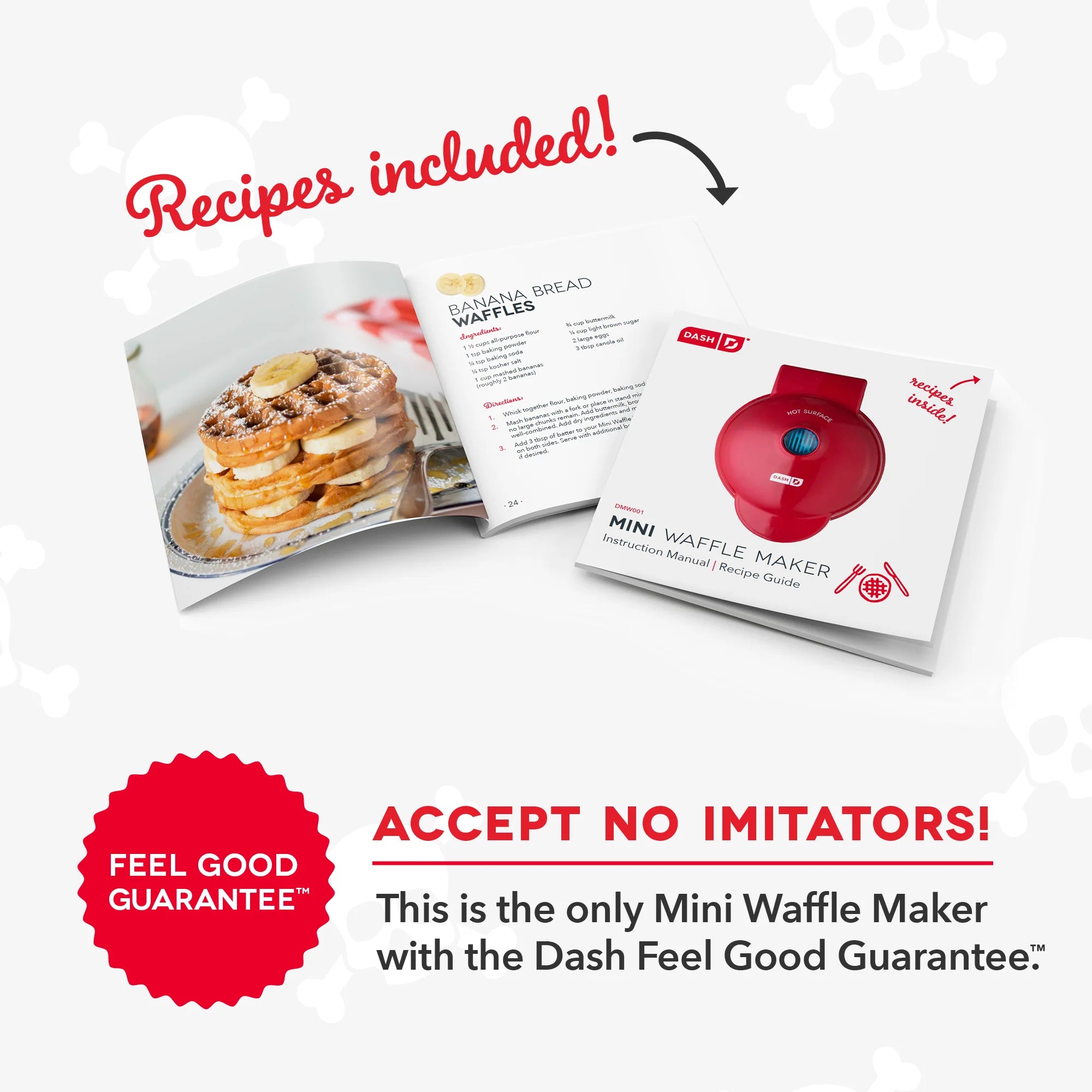The Dash Skull Mini Waffle Maker is perfect for Halloween or any type of otherworldly breakfast gathering! With a 4” diameter and nonstick coating, you’ll be making delicious mini waffles for all your best ghouls in just a few minutes. This Mini Maker comes with a plate inside that prints a cheerful skull on every waffle. No bones about it, these waffles bring a spooky touch to any meal.