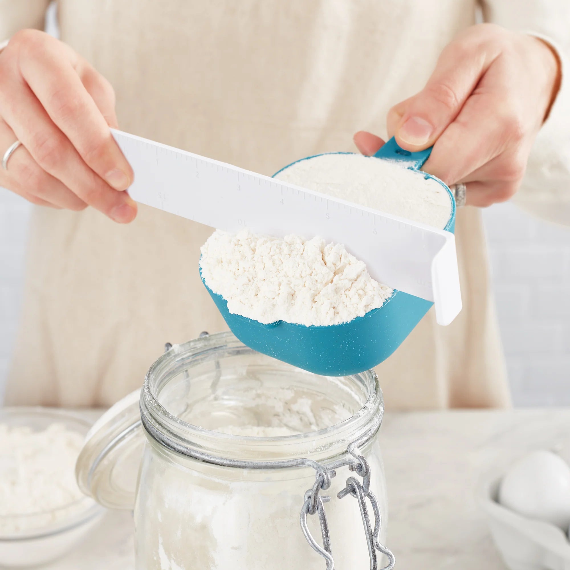 Does your kitchen measure up? With the Dash SmartStore® Measuring Set, you’ll have 16 measuring tools at your fingertips that all stack within a single compact container. The unique SmartStore® design reduces clutter in your kitchen cabinets and drawers, while still providing all the measuring spoons and cups you need in one organized place. In addition to full sets of Measuring Spoons and Measuring Cups, the SmartStore® set comes with an Egg Separator, Sifter, Funnel, and Leveler for precision cooking. For both liquid and dry ingredients, this Measuring Set has the perfect measuring spoons and cups to make your cooking and baking creations come to life.