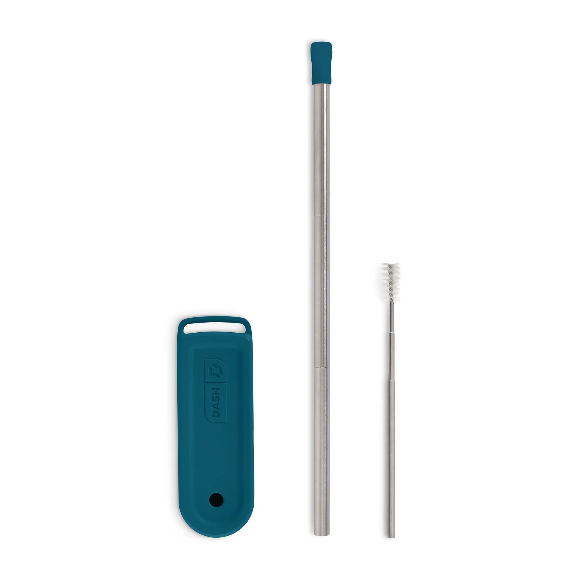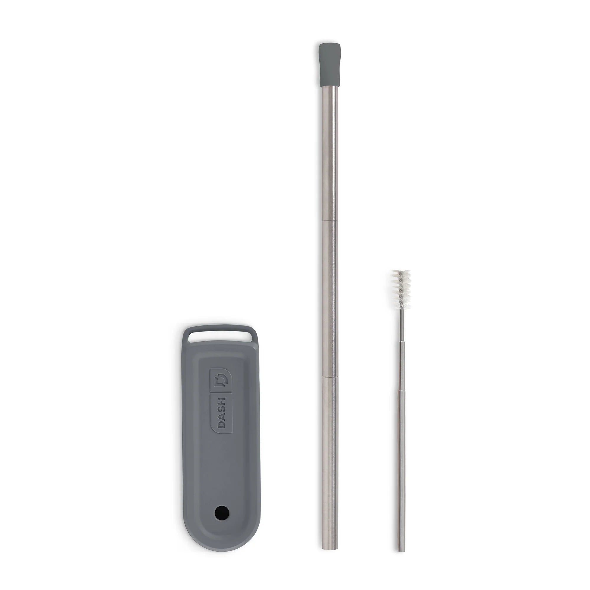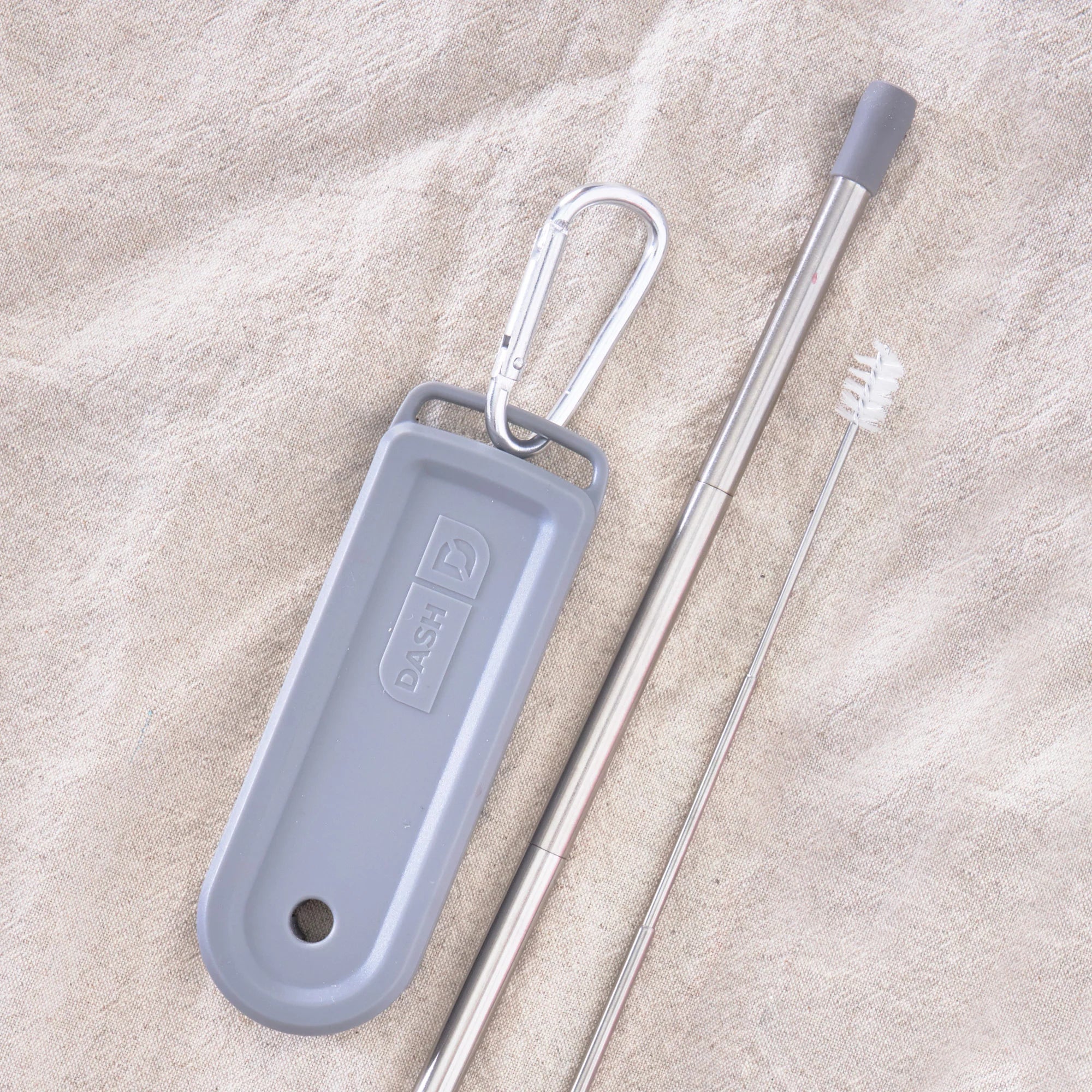 Enjoy refreshing beverages from your own personal, portable straw with the Dash Super Straw! This food-grade stainless steel straw cuts down on single use plastic and fits perfectly in even large 24 oz beverages. The silicone comfort tip adds a pop of color and is molded to the stainless base, so it doesn’t collect dirt or fall off. Ideal for traveling, the Super Straw is held together with powerful magnets to stir even thick beverages or ice, and the straw collapses easily into its own Carrying Case. The Super Straw comes with everything you need to sip on the go, including a collapsible nylon Cleaning Brush and a Clip to attach the case to your backpack or bag.