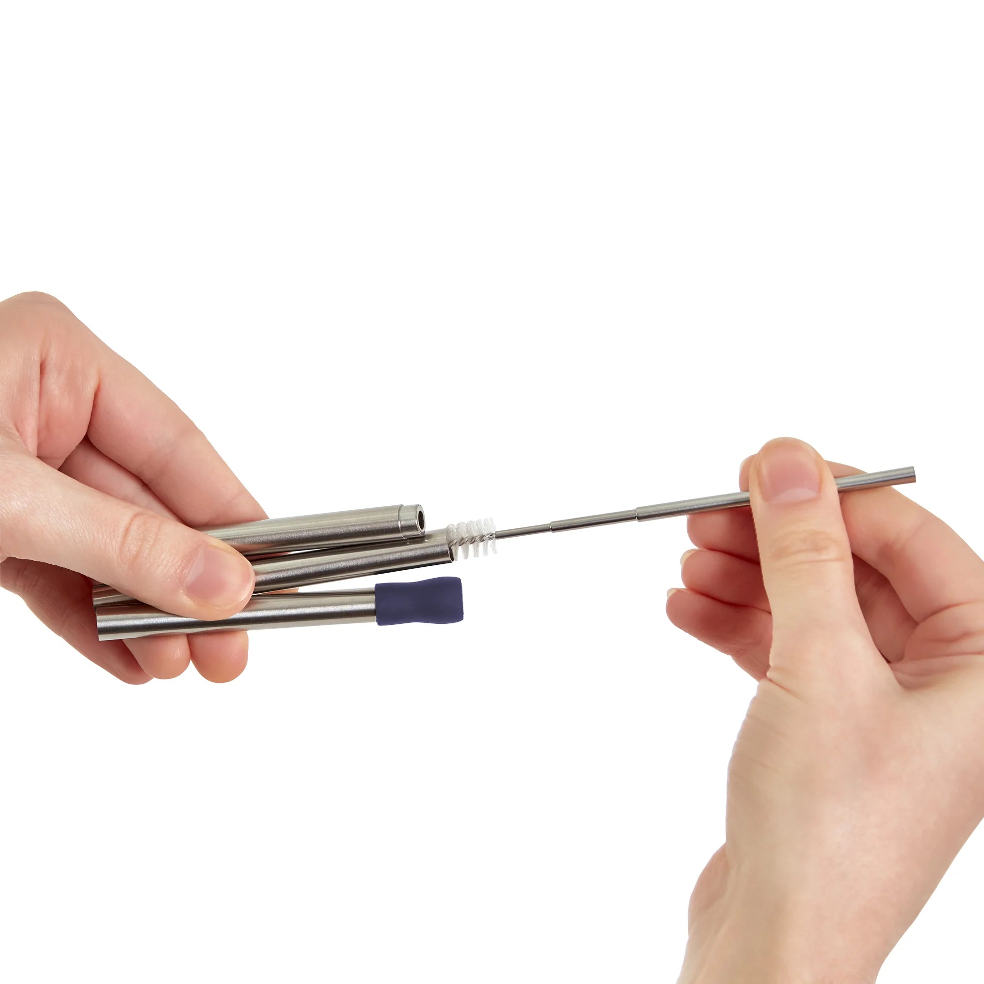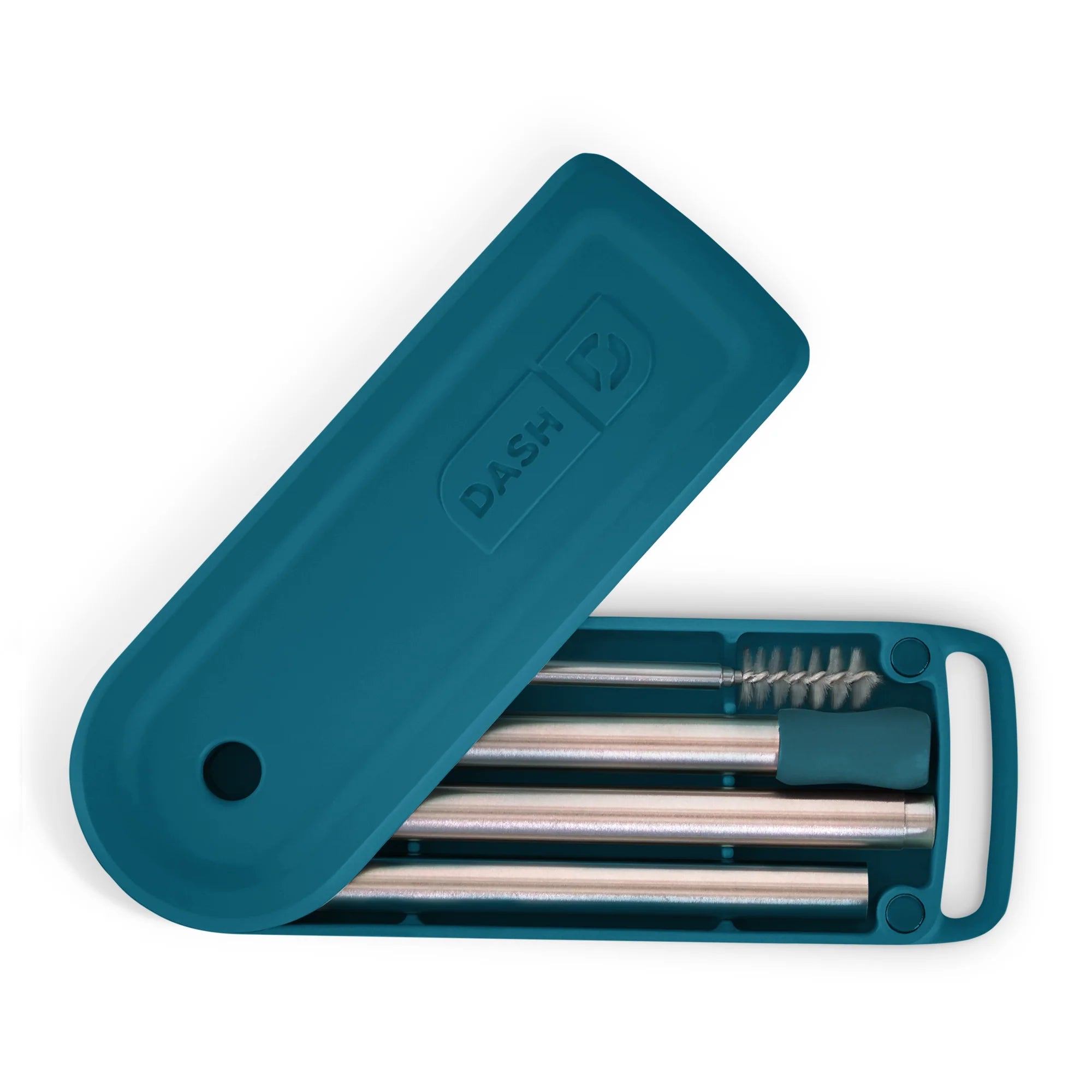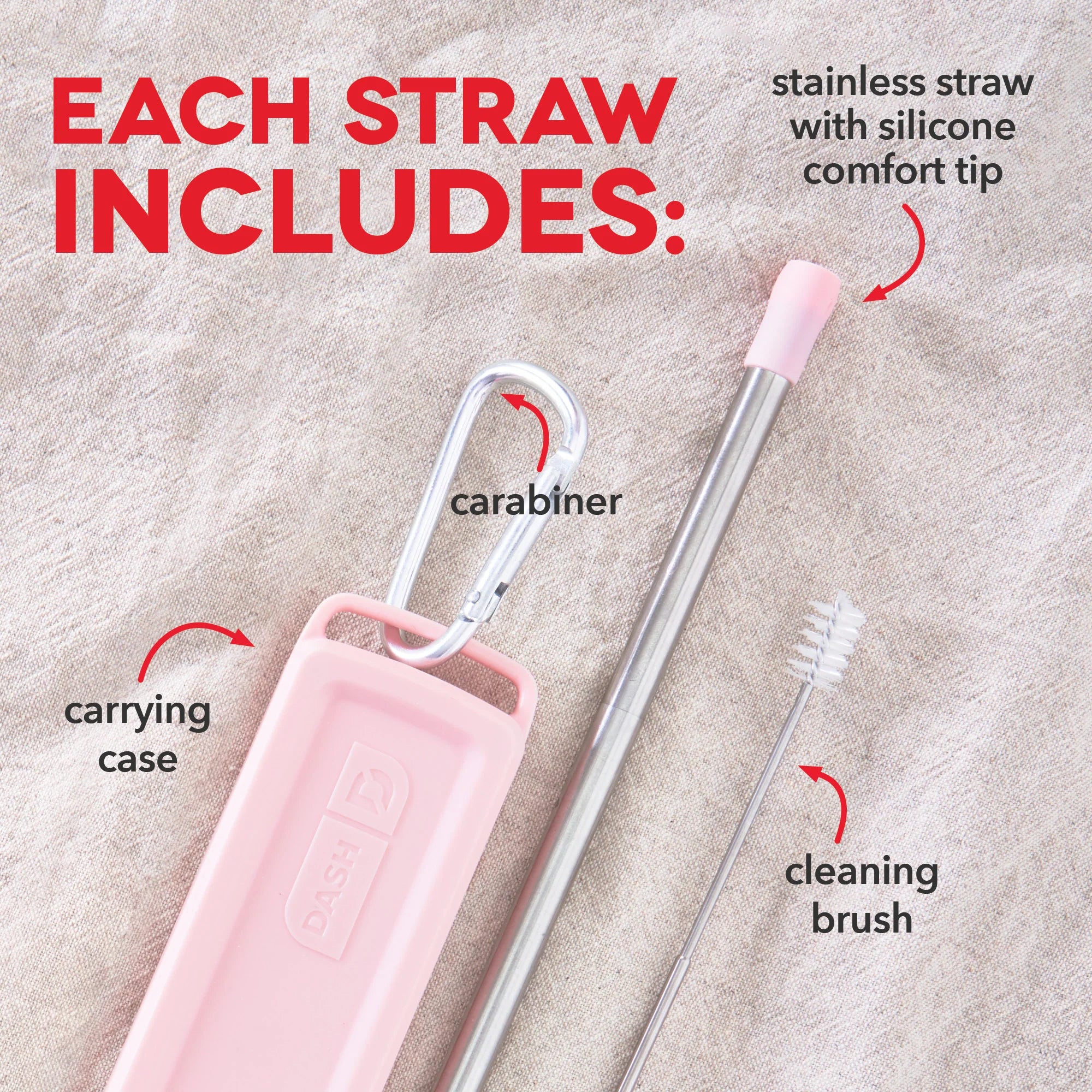 Enjoy refreshing beverages from your own personal, portable straw with the Dash Super Straw! This food-grade stainless steel straw cuts down on single use plastic and fits perfectly in even large 24 oz beverages. The silicone comfort tip adds a pop of color and is molded to the stainless base, so it doesn’t collect dirt or fall off. Ideal for traveling, the Super Straw is held together with powerful magnets to stir even thick beverages or ice, and the straw collapses easily into its own Carrying Case. The Super Straw comes with everything you need to sip on the go, including a collapsible nylon Cleaning Brush and a Clip to attach the case to your backpack or bag.