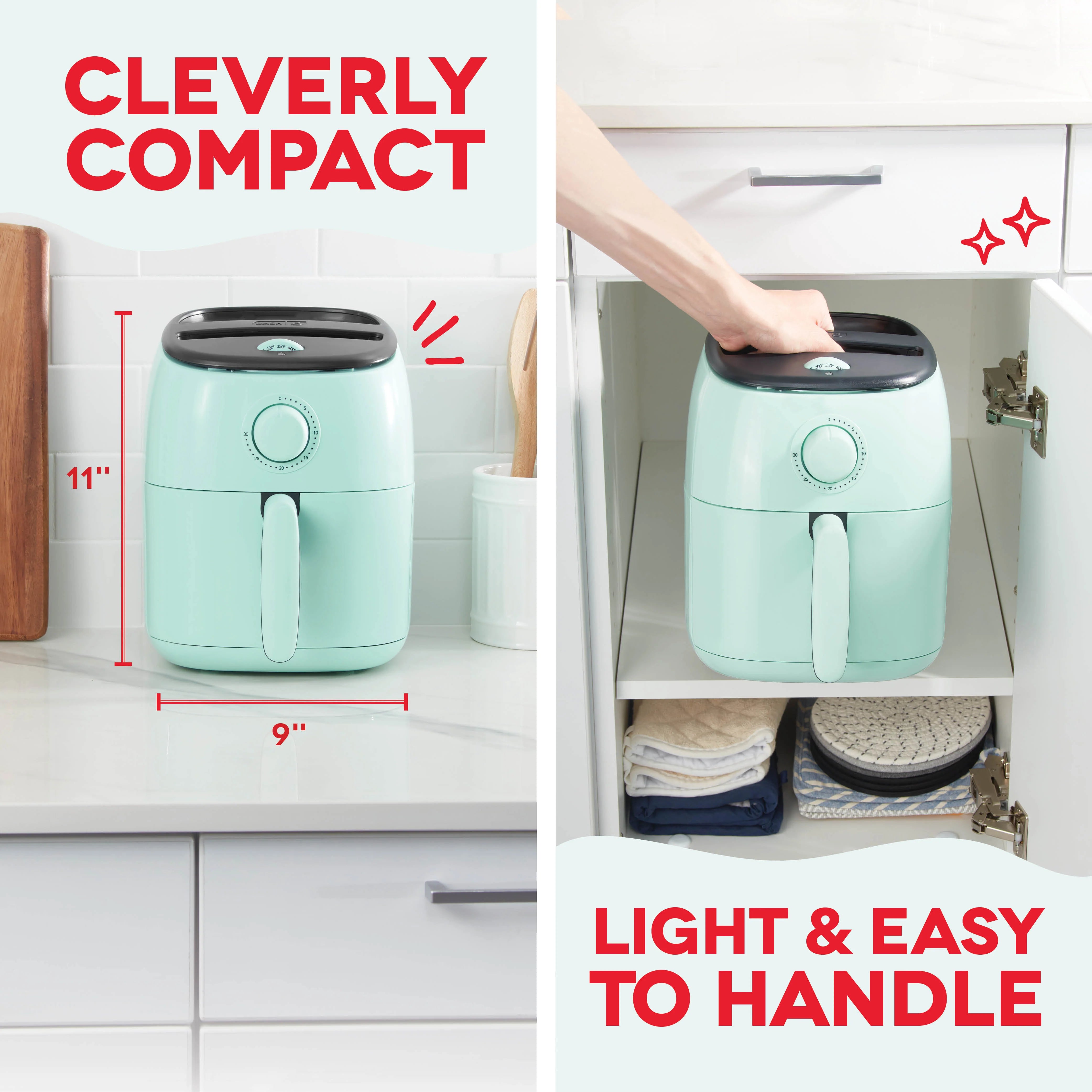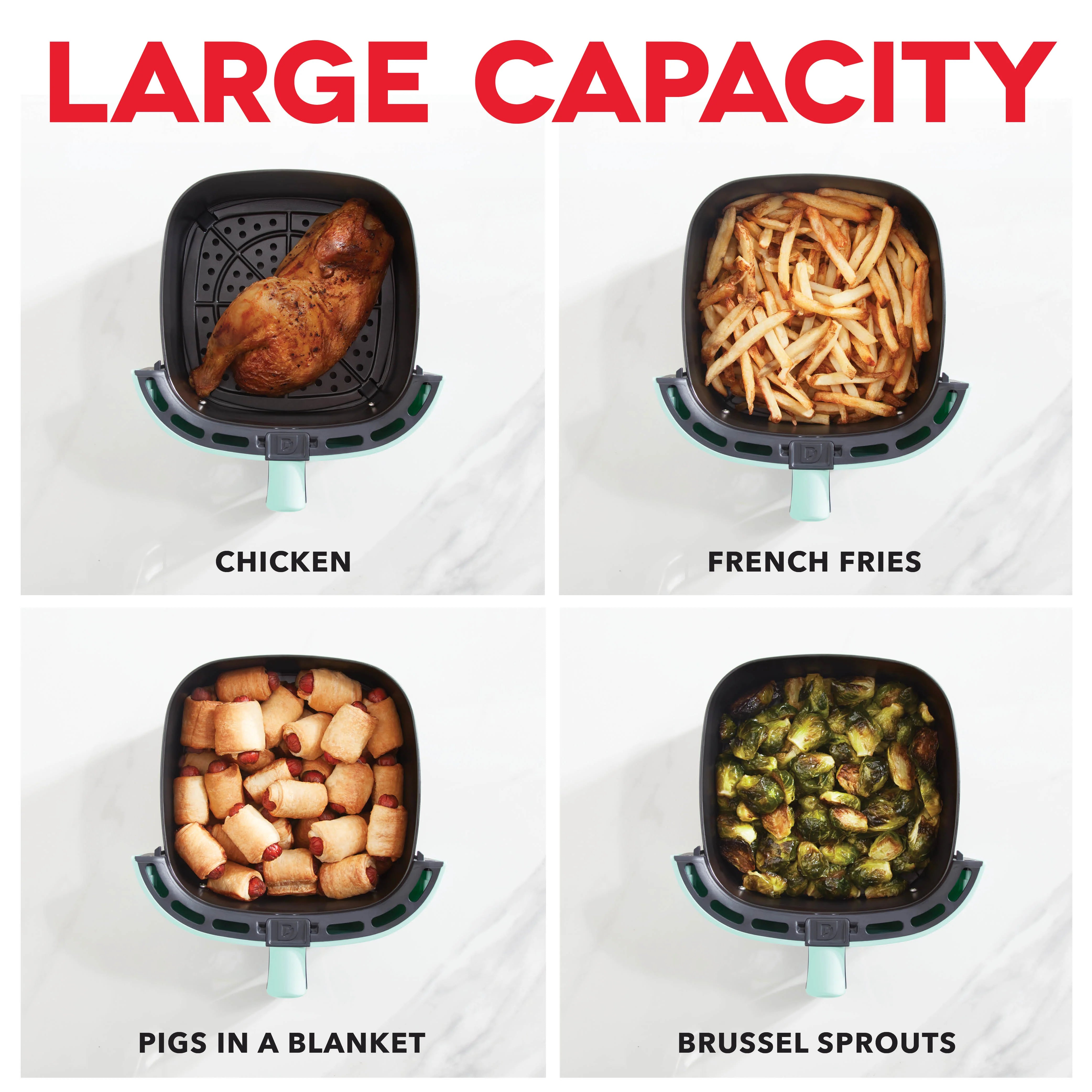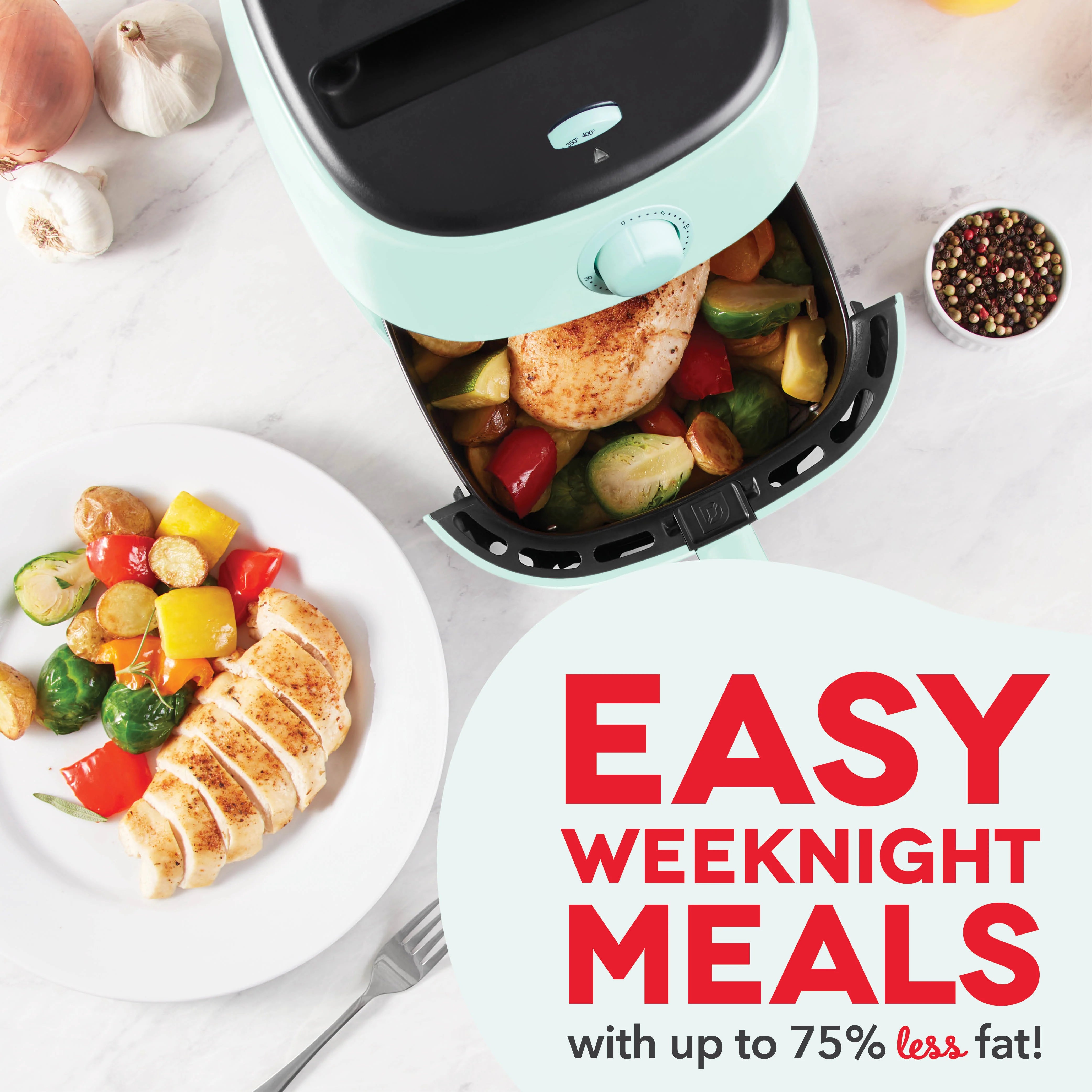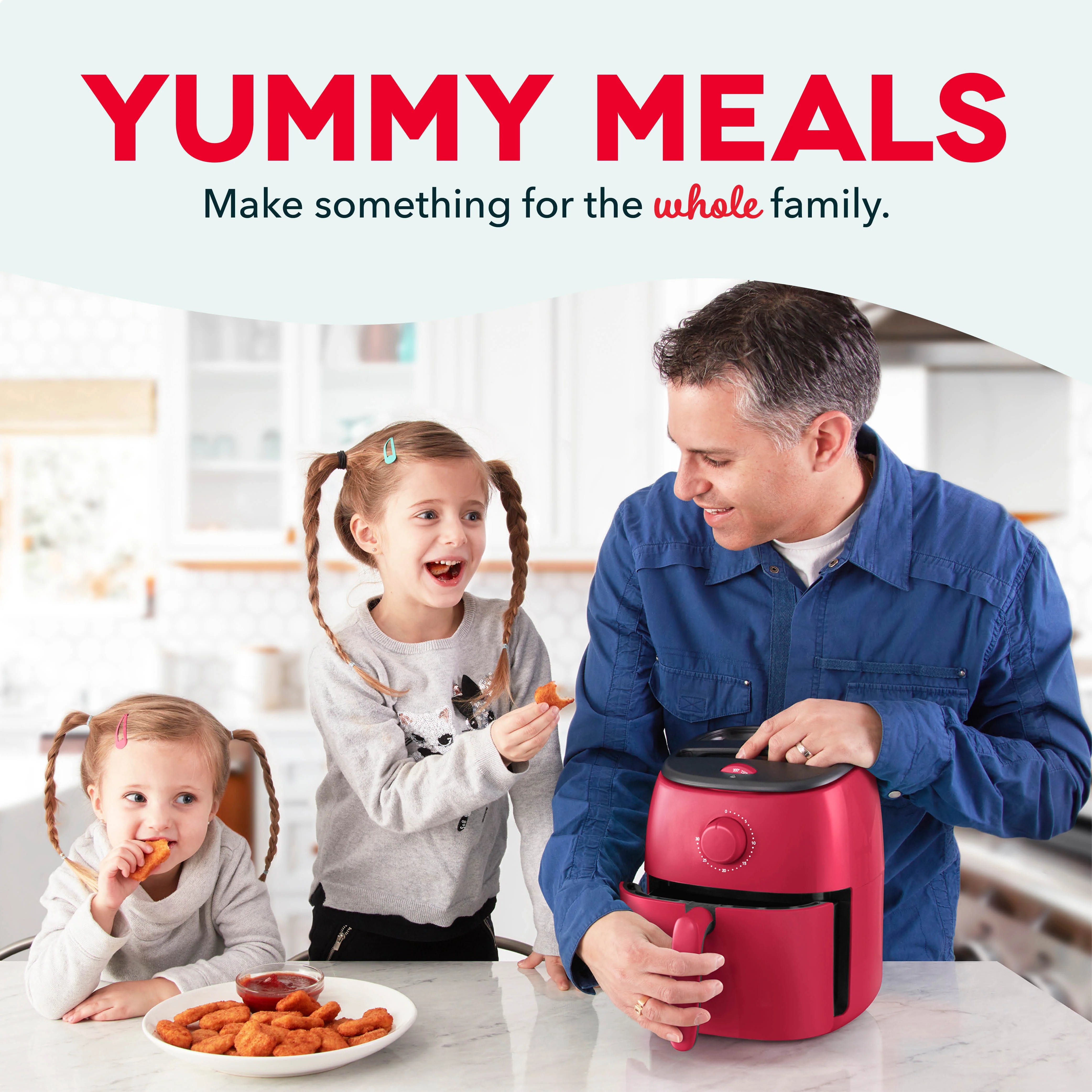Make delicious fried food in a dash with the PTFE nonstick Tasti-Crisp™ Air Fryer! AirCrisp® technology fries with hot air instead of oil, for delicious fried food with up to 75% less fat than a traditional deep fryer. This convenient countertop air fryer is sized for any kitchen, making it easier to store while still providing ample 2.6 qt capacity. The redesigned Crisper Basket allows for greater surface area inside the Air Fryer, so food gets more crisp, faster. Perfect for cooking frozen treats like chicken nuggets, fish sticks, and other snacks, this is a compact air fryer families will love.