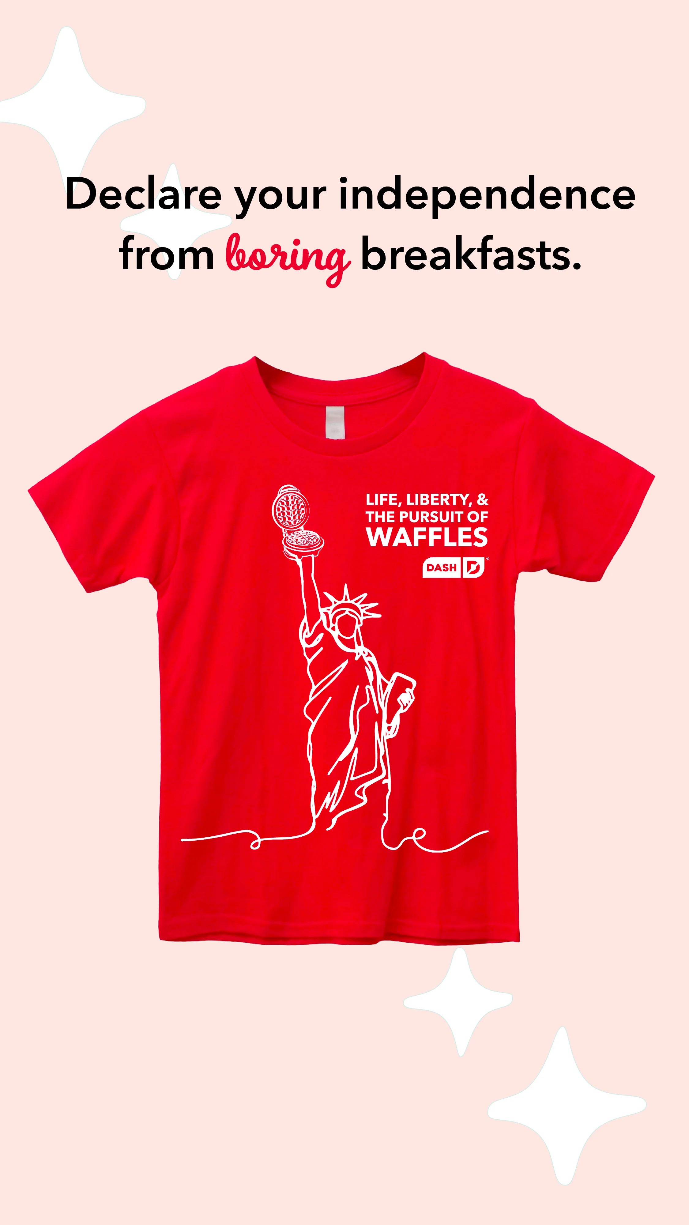 All breakfasts are NOT created equal. Waffles just make everything better! Declare your independence from boring breakfasts when you sport some delicious Dash swag. We are a proud NYC original supporting your right to life, liberty, and the pursuit of happiness/waffles, just choose your size and BYOS (Bring Your Own Syrup)!