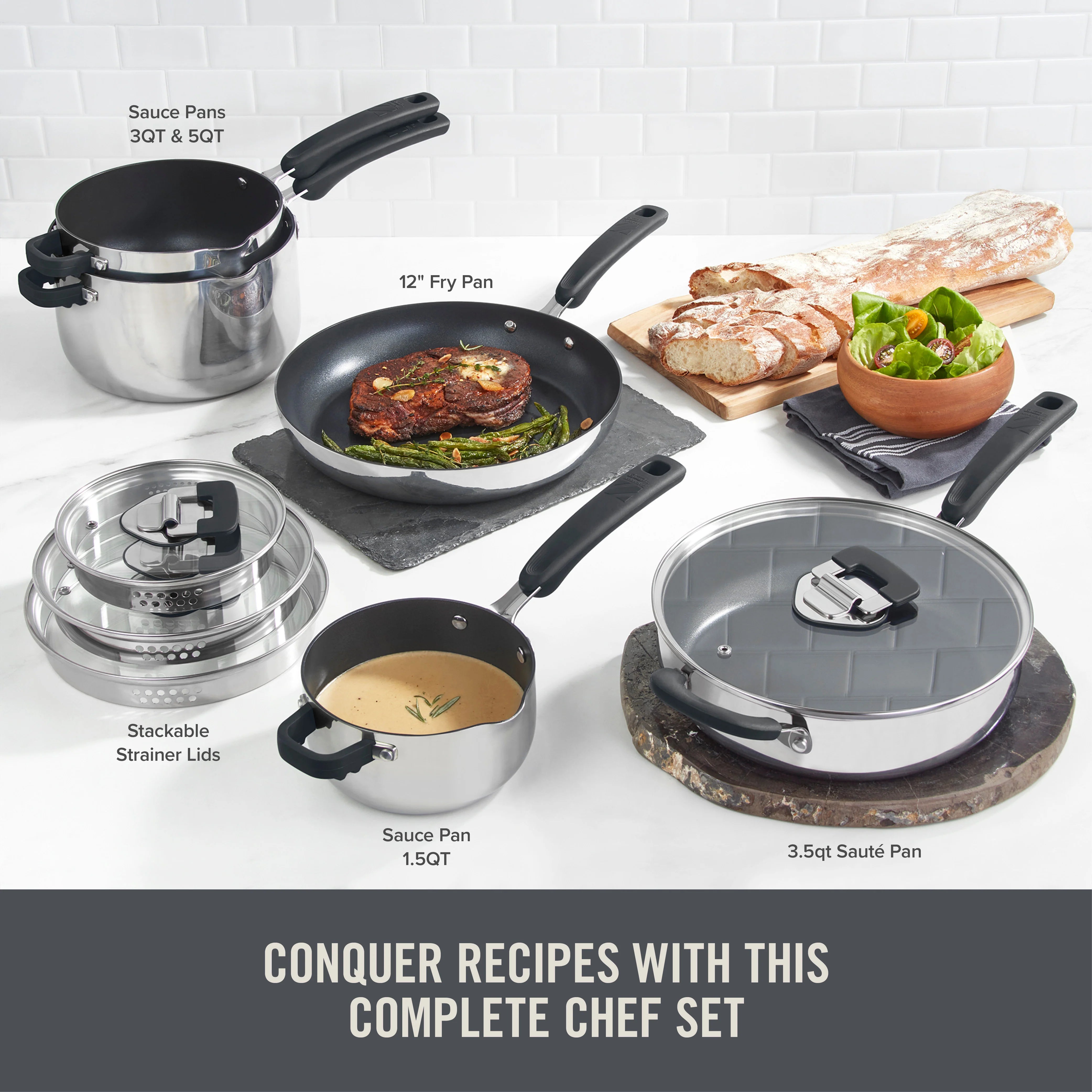 Create restaurant-quality meals at home with the TruPro™ Tri-Ply 10 Piece Stainless Steel Cookware Set.