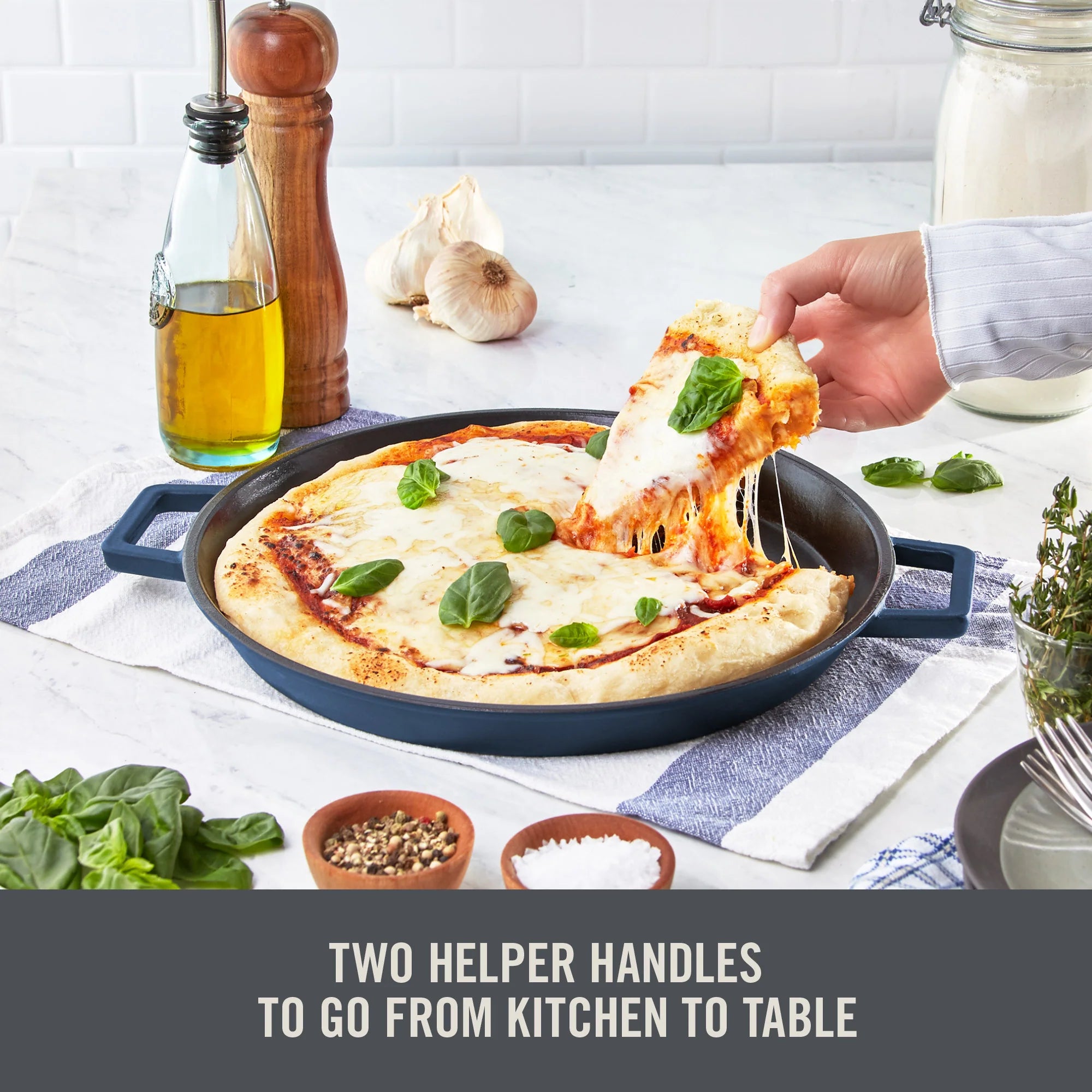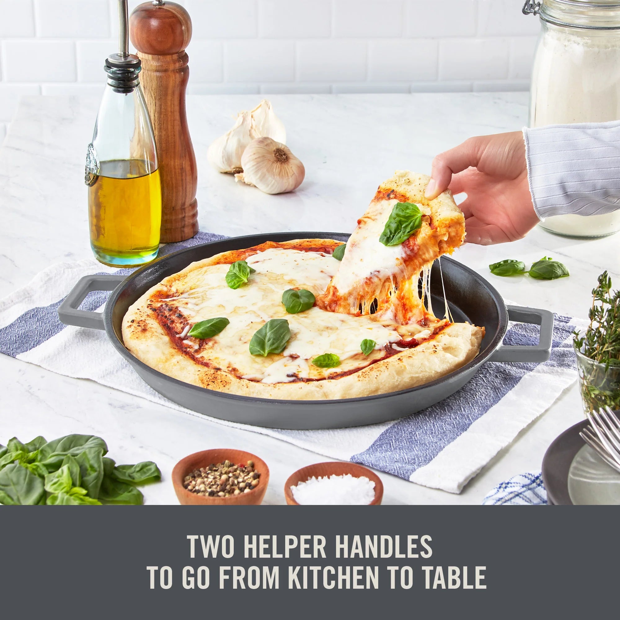 From Zakarian by Dash, this 13” Nonstick Cast Iron All-Purpose Pan brings restaurant-quality dishes to your home.