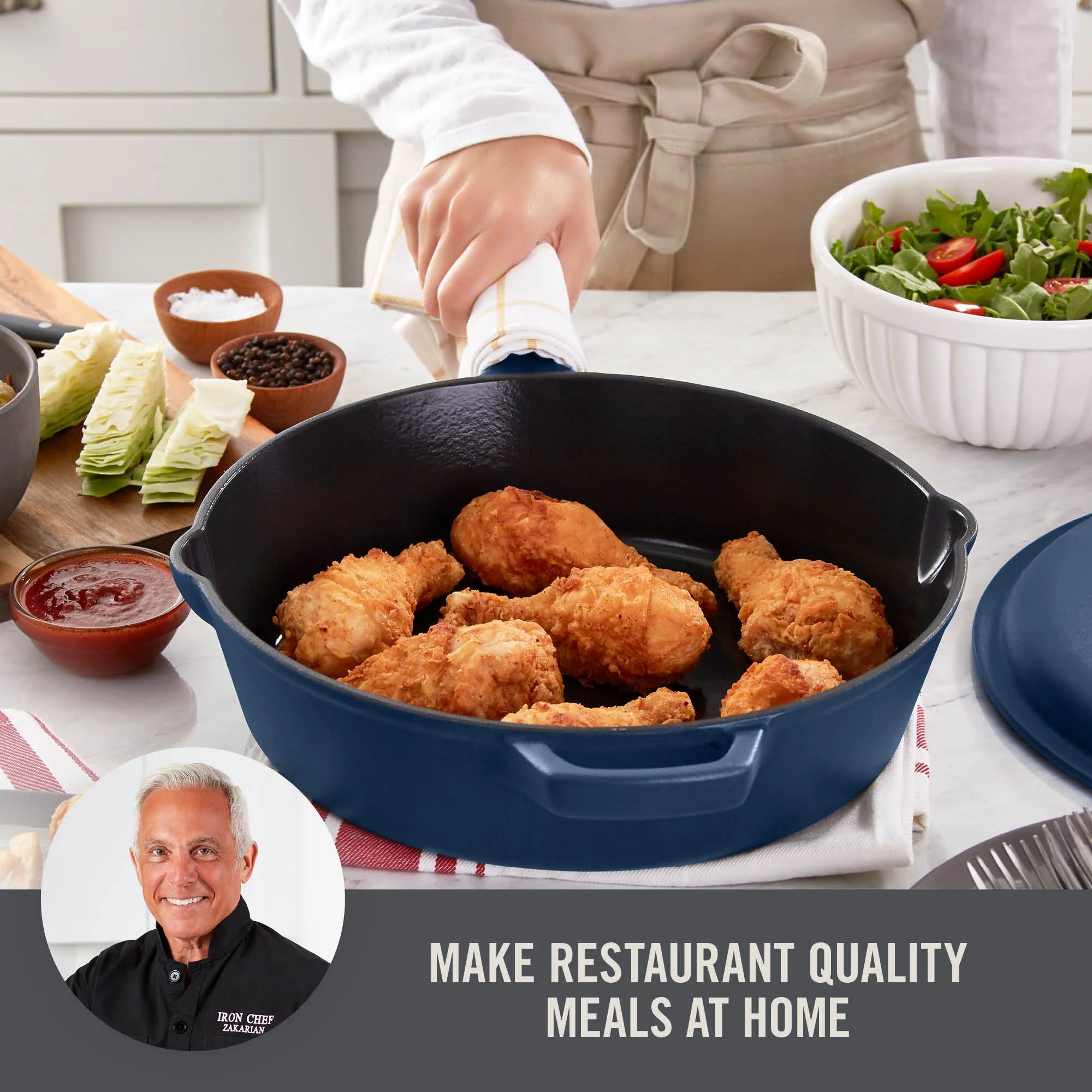 From Zakarian by Dash, this Nonstick Cast Iron 4.5Qt Deep Skillet gives home chefs the ability to make restaurant-quality meals at home!