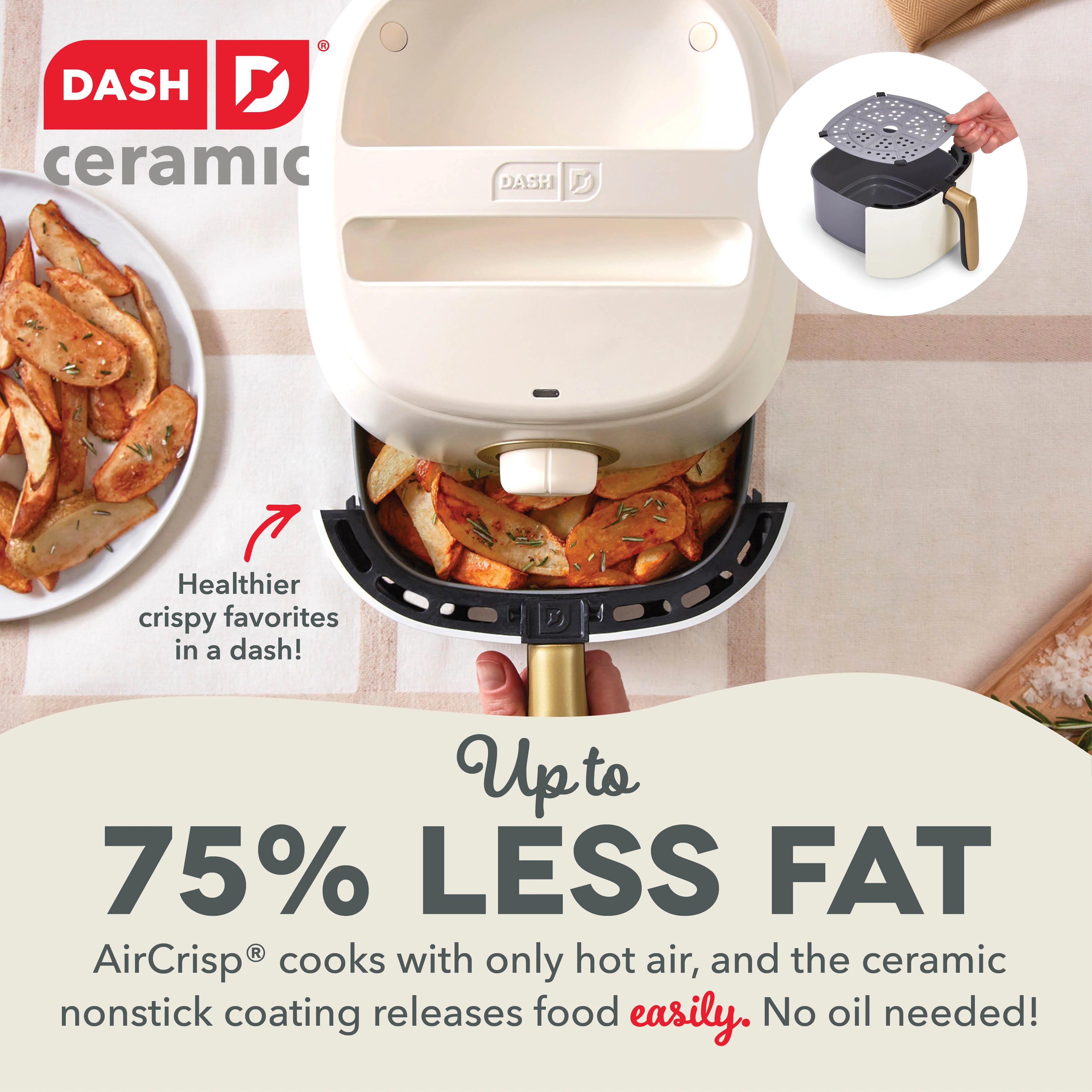 Healthier cooking is in the air! Our exclusive AirCrisp® technology cooks food using 360° of hot air circulation instead of oil so you can enjoy your favorites with up to 75% less fat than traditional deep frying. And when our innovative AirCrisp® technology combines with our advanced ceramic nonstick coating, the result is a truly superior air frying experience. Our ceramic nonstick coating is laboratory-tested and FDA-approved to be food-safe, boasting our easiest food release yet for picture-perfect dishes and quick cleanup. And while other nonstick coatings can wear away quickly, our premium ceramic coating is long-lasting and durable. In modern muted colorways with brushed gold accents, it’s sleek and chic on your countertop or stores easily with top easy-grip handle. Looking for flavor to fill your fryer? Recipe Guide is included for ideas and inspiration to go beyond fries!
