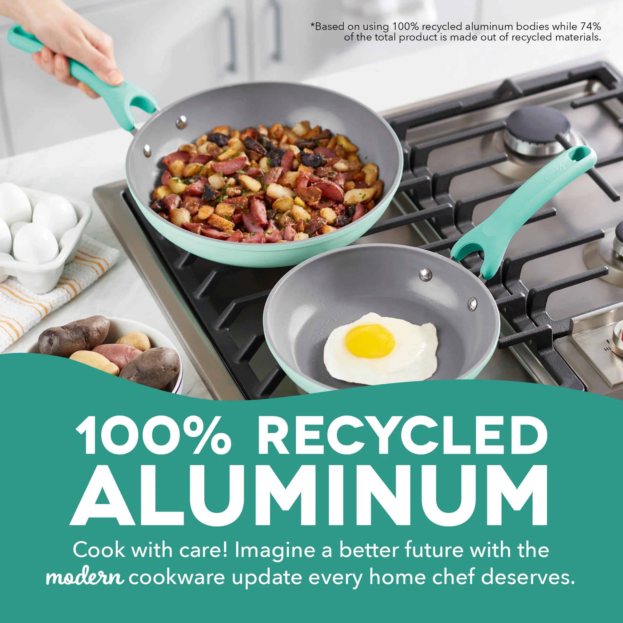 Upgrade your kitchen cookware and help prevent waste with the Dash Dream Green Recycled Aluminum 2-Piece Fry Pan Set!