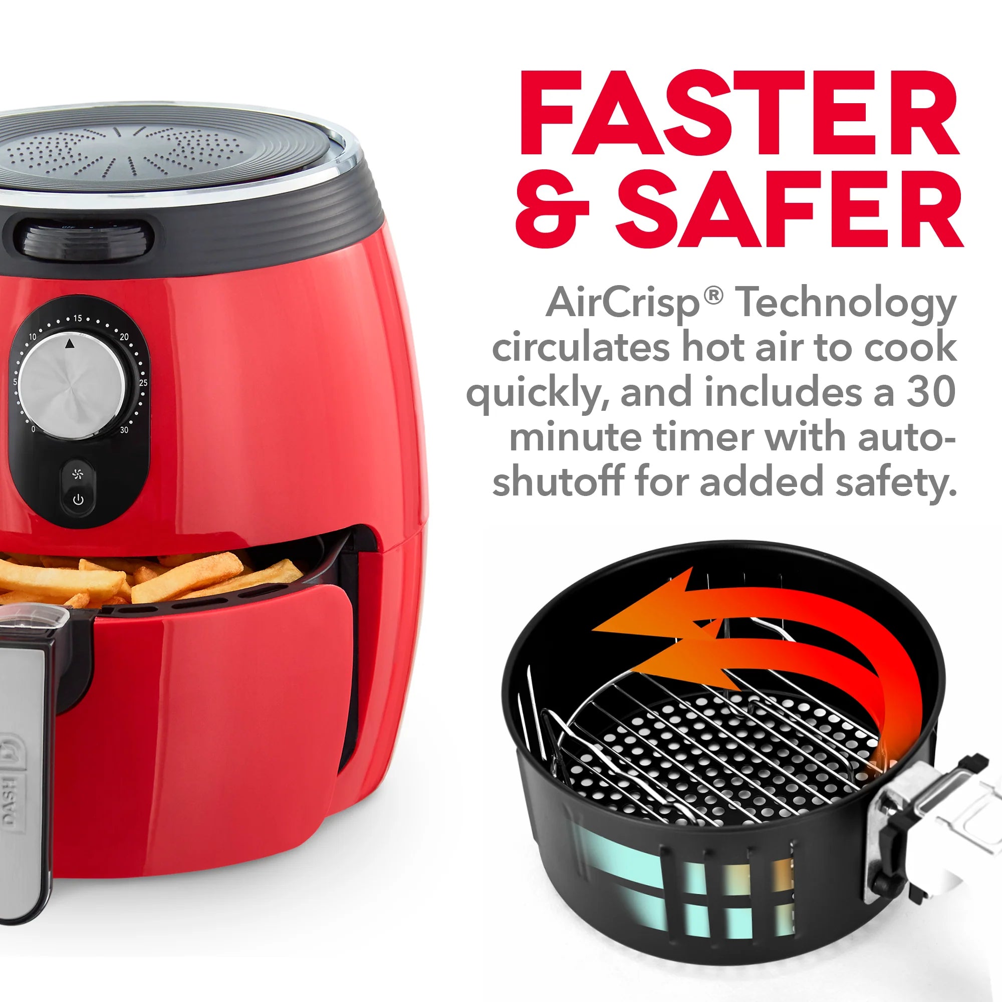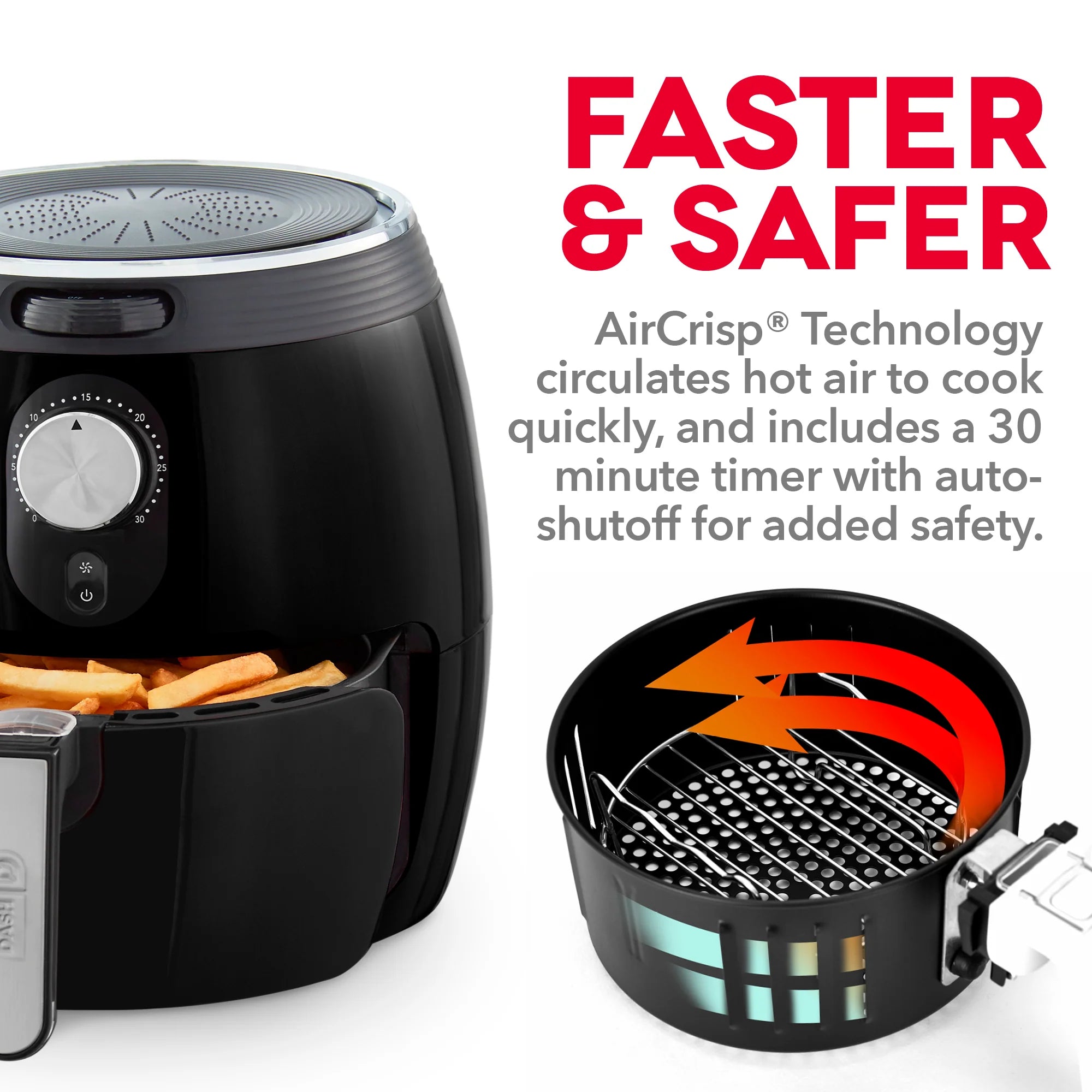 Cook healthier fried food using only hot air with the Dash Deluxe Air Fryer!