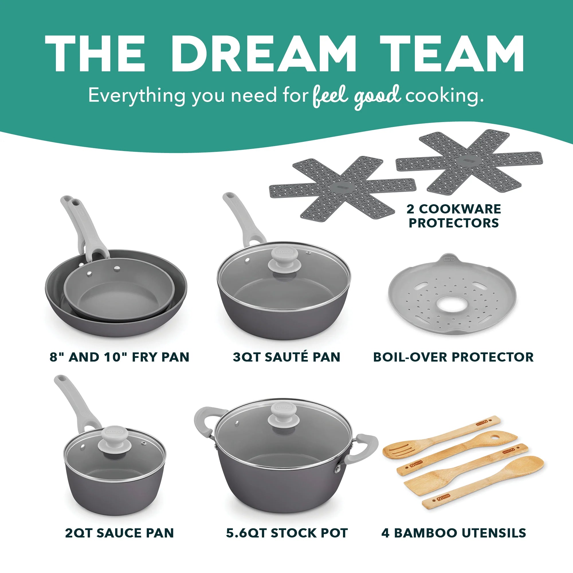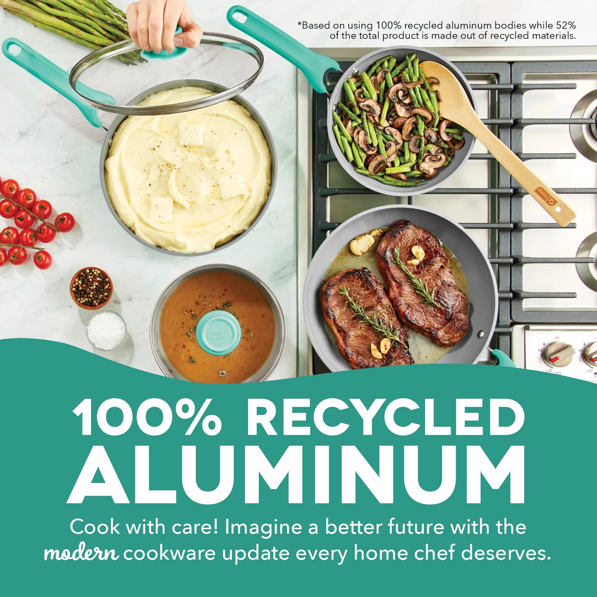 Upgrade your kitchen cookware and help prevent waste with the Dash Dream Green Recycled Aluminum 15-Piece Cookware Set!