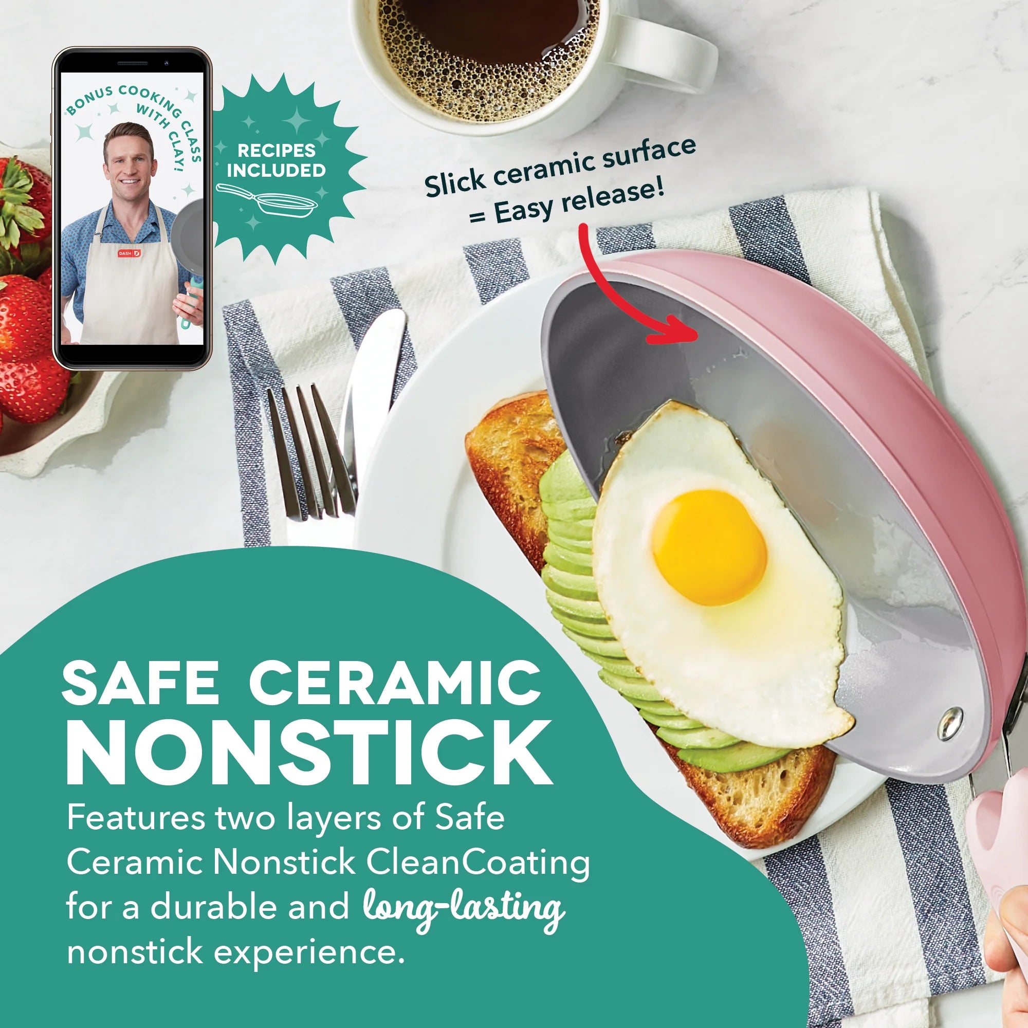Upgrade your kitchen cookware and help prevent waste with the Dash Dream Green Recycled Aluminum 15-Piece Cookware Set! These pots and pans are constructed with 100% recycled aluminum bodies, and 52% of the total product is made out of recycled materials, which helps minimize waste. Each piece is induction compatible and features a thick aluminum construction that maximizes heat distribution and retention, as well as our CleanCoating™ Safe Ceramic Nonstick coating. Stainless steel handles are wrapped in silicone and designed with comfort in mind, and the set includes four bamboo utensils that are easy to use with the cookware. The set is lightweight, durable, easy to clean and includes everything your kitchen needs!