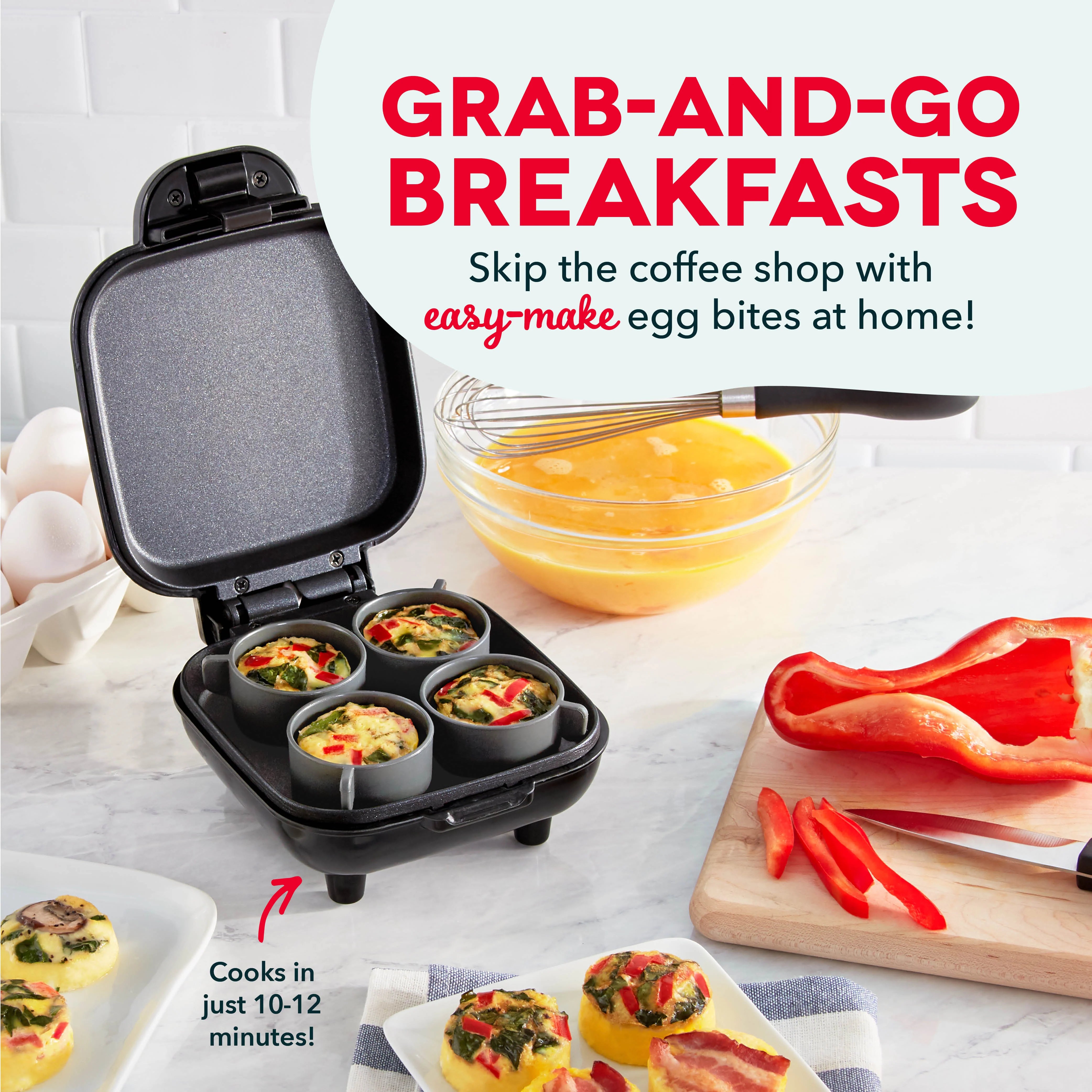 Perfect protein, one bite at a time. Make delicious, healthier egg bites at home with the Dash Egg Bite Maker. Choose your own ingredients for up to 4 egg bites as once, pour into easy-release Silicone Cups, then start cooking with one touch. Ready in less than 10 minutes, it’s never been easier to meal prep, get flavor-packed protein on the go, or simply serve up an eggs-traordinary family breakfast in a dash.