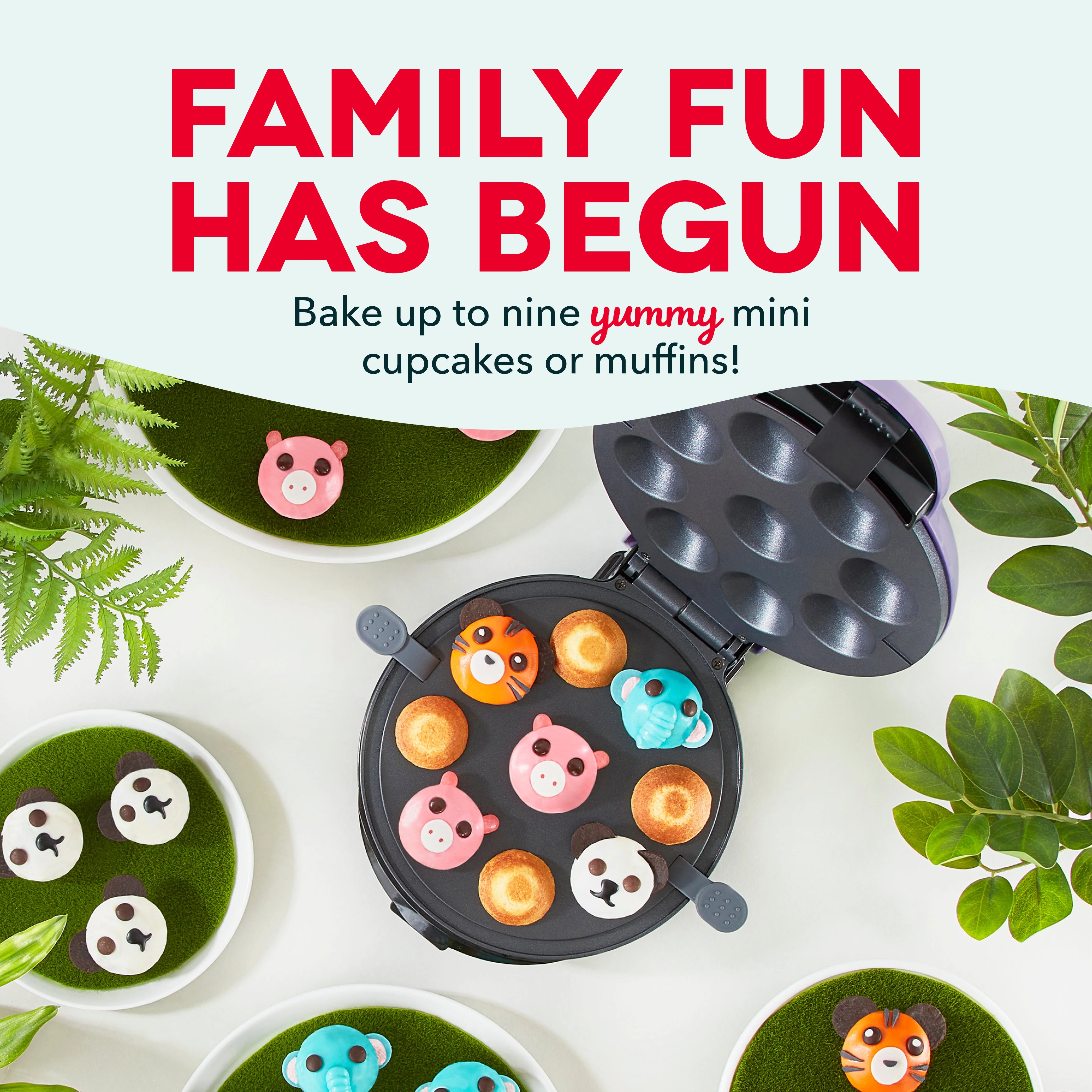 Looking for ready-to-decorate deliciousness? Piece of cake! Make up to nine mini cupcakes or muffins at once, just as fun to decorate as they are to eat! Dual nonstick cooking surfaces and an Easy-Lift Removal Tool release cupcakes cleanly and easily for picture-perfect results and minis that are infinitely Instagrammable! Make up to three dozen in about 10 minutes, perfect for passing around at parties, excellent for entertaining, and bound to bring down the house at any bake sale. Get creative—with so many minis, every member of the family will want to frost their own!