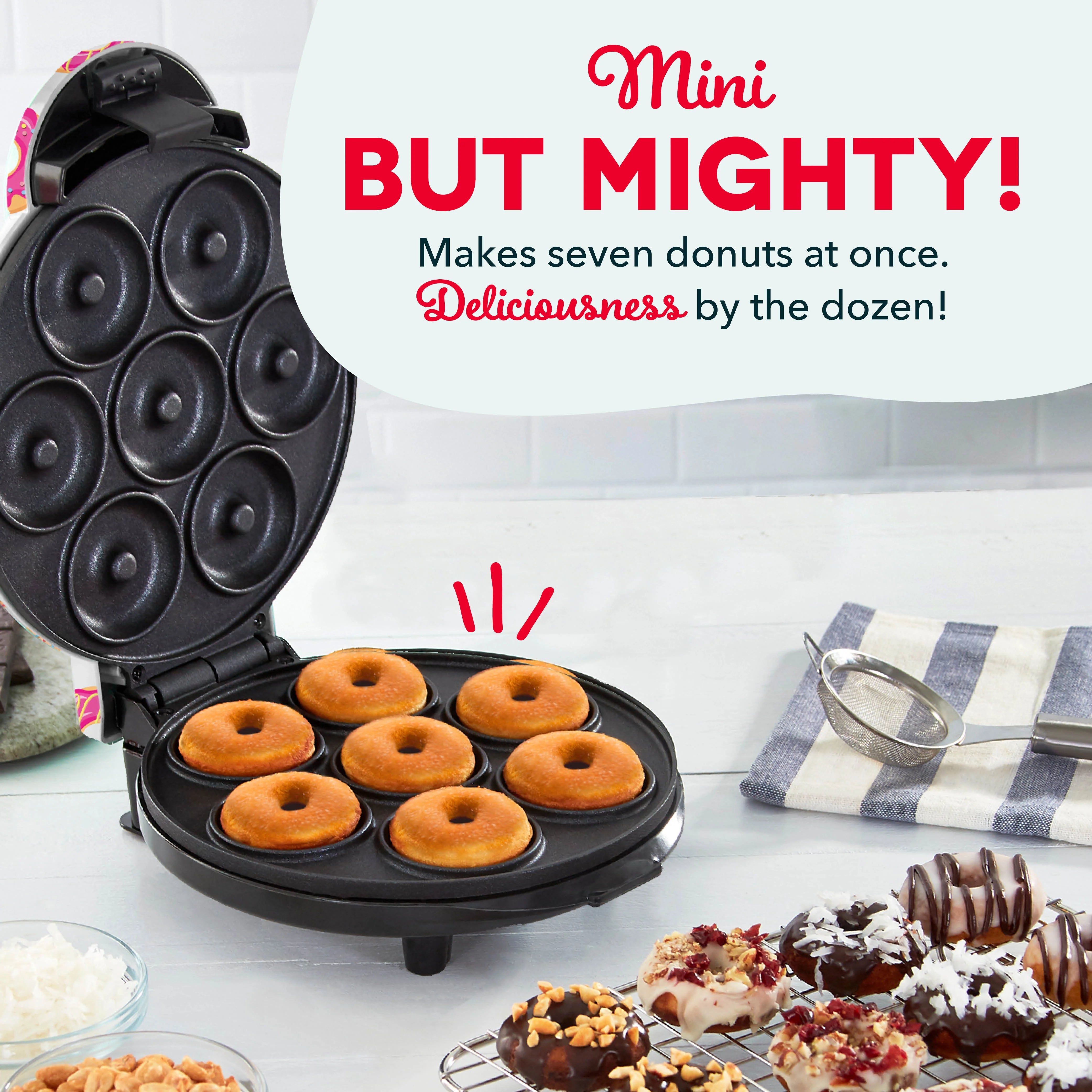 Looking for cute and creative homemade treats to serve at birthday parties and bake sales? Then you DONUT want to miss out on the Dash Express Mini Donut Maker! Make up to 7 minis in just minutes, perfect for passing around at parties, excellent for entertaining, and bound to bring down the house at any bake sale. Dual nonstick cooking surfaces cook and heat quickly and evenly for donuts that are just as adorable as they are delicious, picture-perfect and infinitely Instagrammable! Get creative—with so many minis, every member of the family can decorate their own! Glaze or frost, then add your favorite toppings—360° of snack-sized deliciousness the whole family will love.