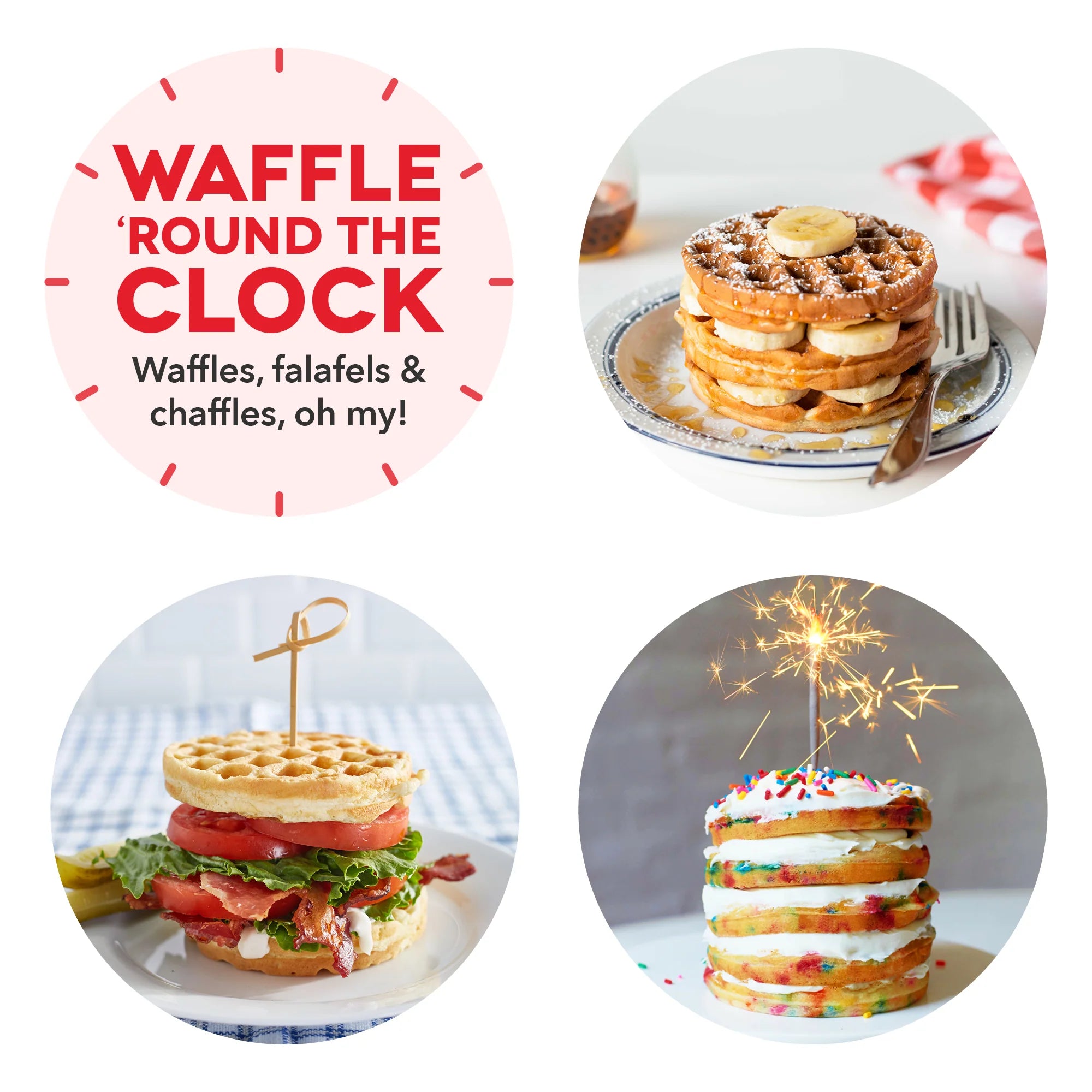 The original PTFE nonstick Mini Waffle Maker for perfect 4” waffles, now in a 2-pack! Dual non-stick cooking surfaces heat evenly for consistent, delicious results, and the cute and compact size saves valuable counter space. Fun and kid-friendly, the Mini Waffle Maker can be used to waffle other ingredients, including cookie dough, hash browns, and keto chaffles. A recipe guide is included so you can create the classics with confidence or branch out and try something new. No setup required, just plug it in and you’re ready to cook!