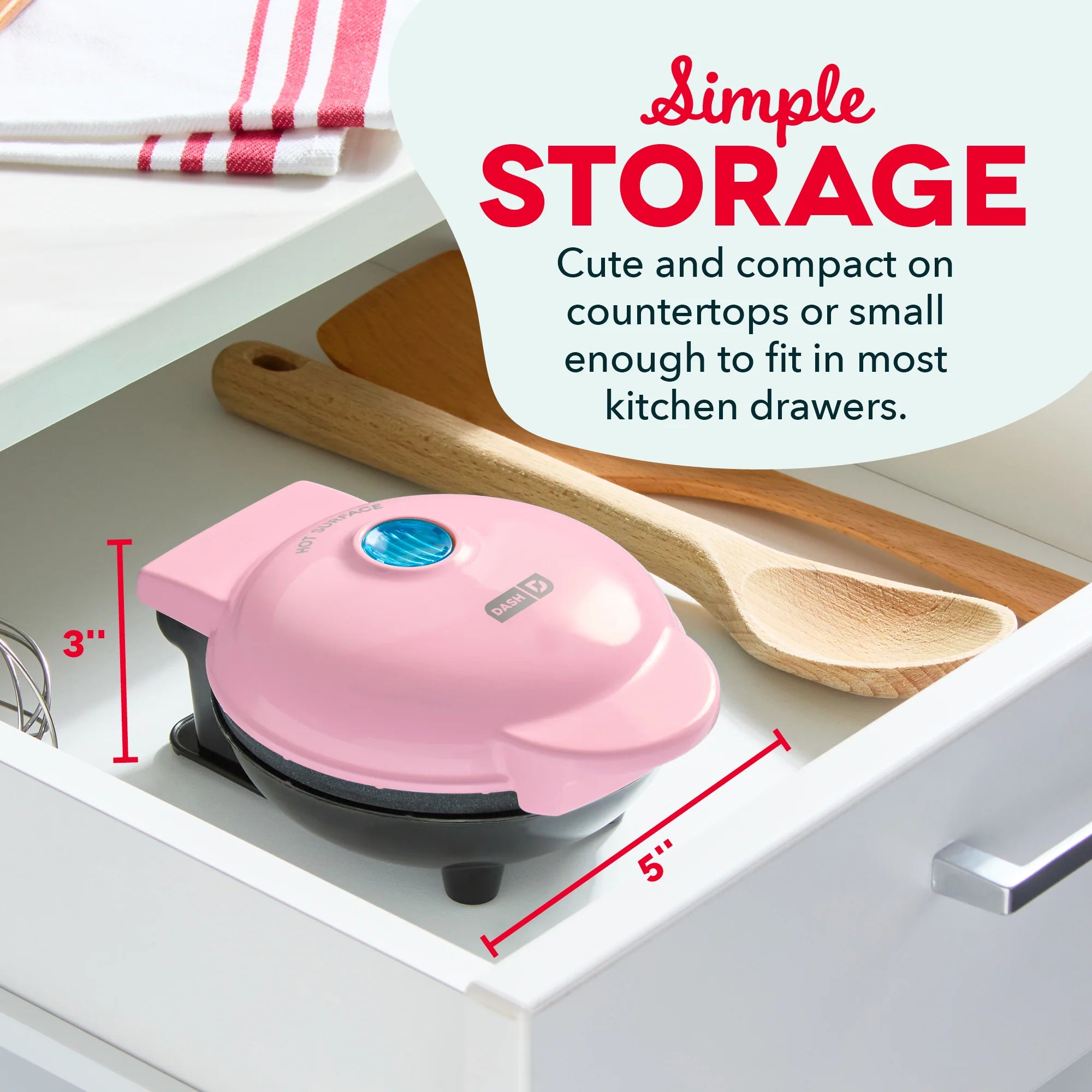 Delicious things come in small packages! The Dash Mini Waffle Maker cooks 4” snack-sized waffles using dual nonstick cooking surfaces that heat and cook evenly for perfect results every time. Make adorable bite-sized breakfasts in a dash or use your imagination for fun family creations! No time to waffle? No problem! Waffles can be premade in batches and frozen for breakfast on the go. Cute and compact, it stores easily on counters or in drawers and cabinets. And go beyond waffles—use your Mini Waffle Maker to cook hash browns, cornbread, cookie dough, and so much more! Mini is mighty, and the possibilities are endless!
