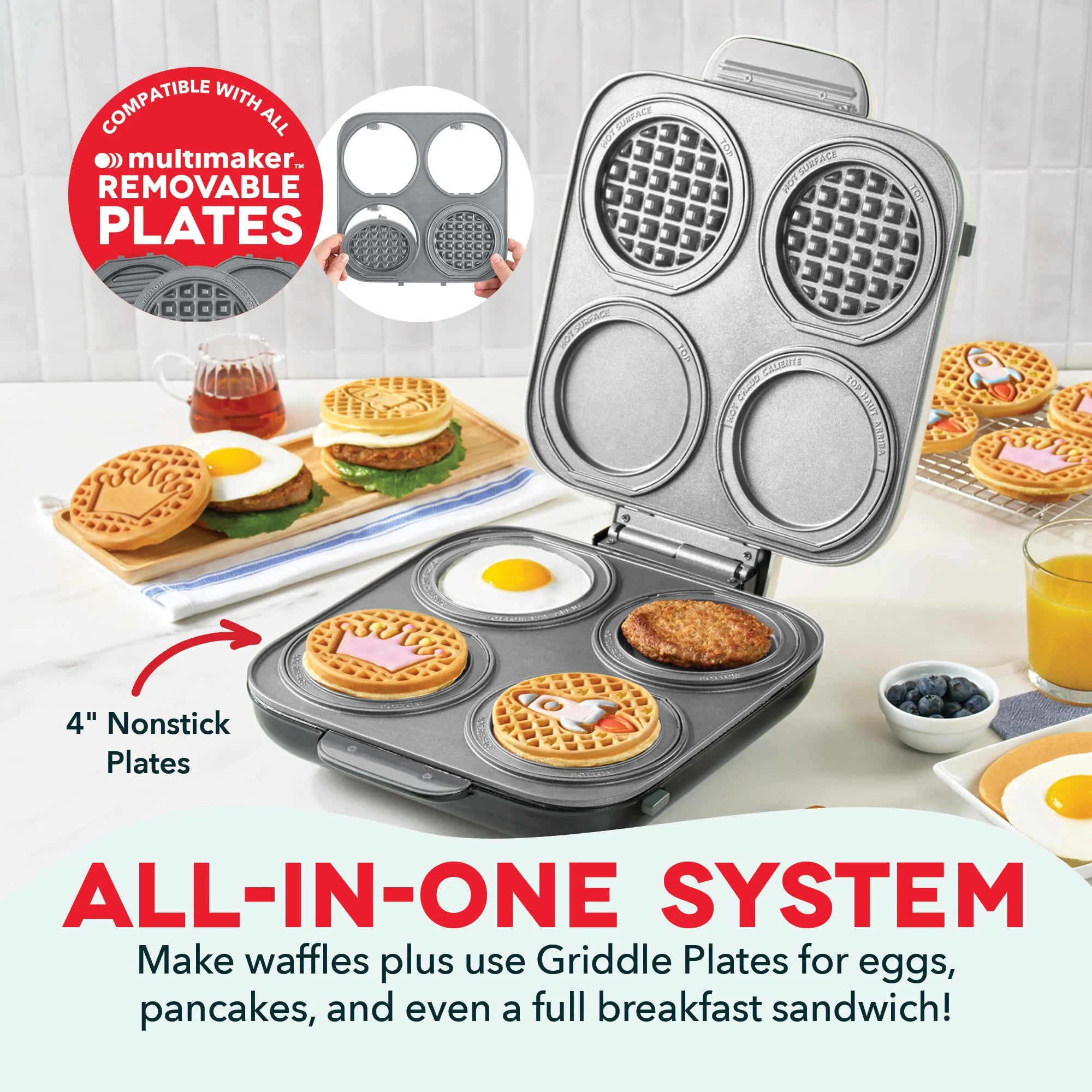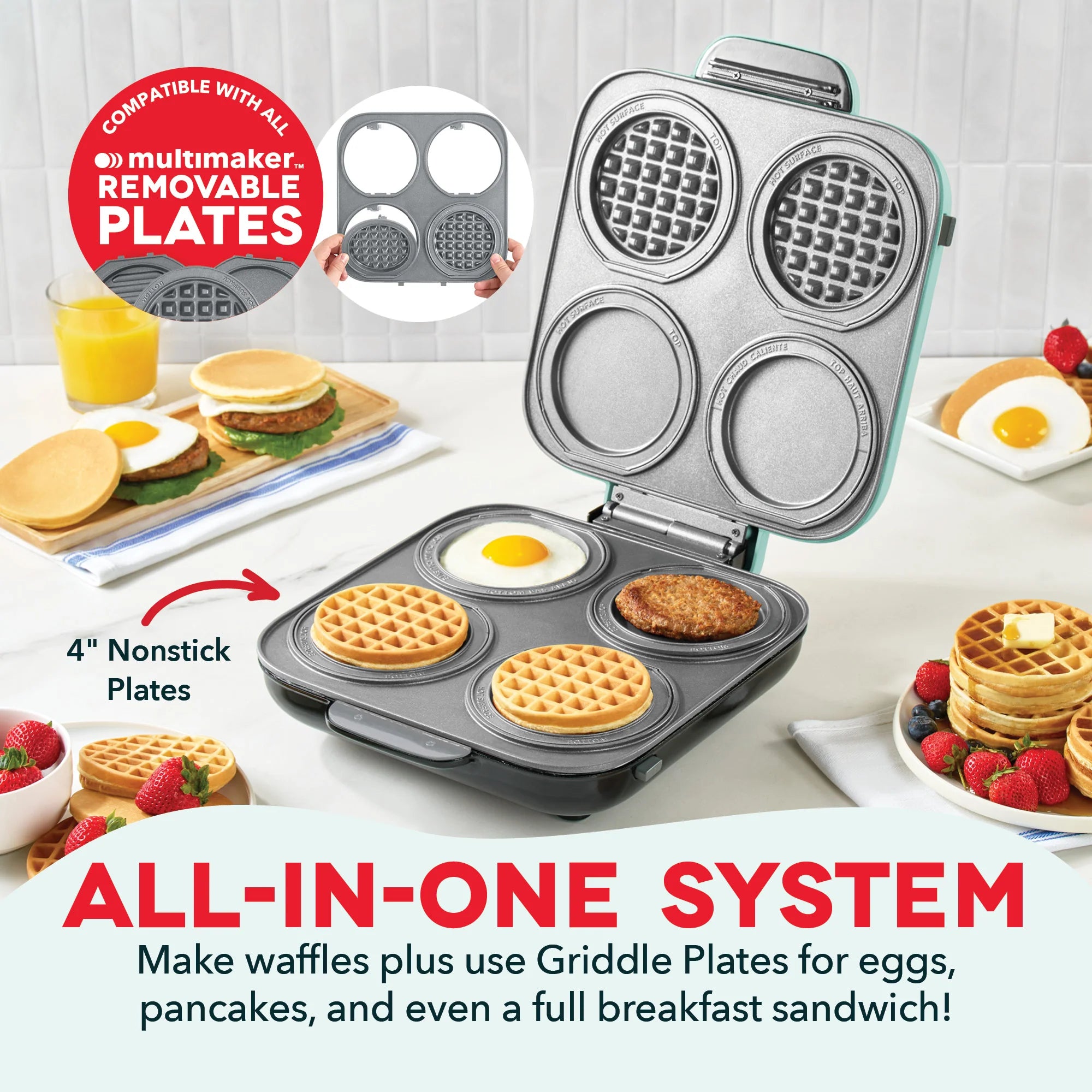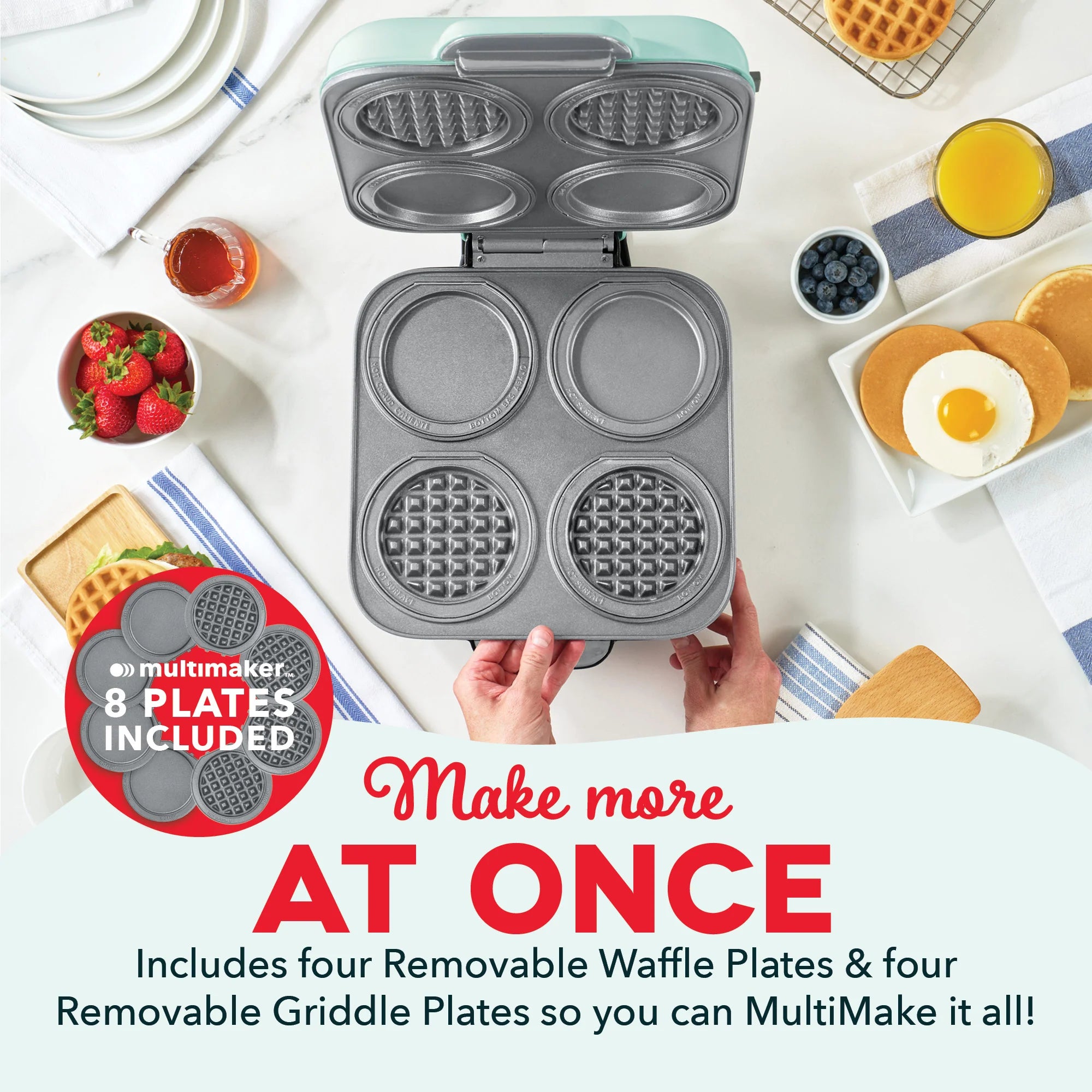 Make more with less! With multiple Removable Plates, this hardworking hero is a do-it-all cooking system that makes full meals right on your countertop. The Classic Waffle Plates brighten up breakfast with crispy, golden minis while the Mini Griddle Plates round out your morning routine with eggs, sausage, pancakes, & even breakfast sandwiches. The Mini Griddle Plates also take you beyond breakfast, perfect for making burgers, mini paninis, desserts, & more. The dual nonstick ceramic cooking surfaces ensure that food releases easily for perfect results from sunrise to sunset. Removable Plates pop out easily and go right into the dishwasher for a no-mess cleanup. Compact on your countertop, the MultiMaker™ is ideal for feeding the whole family and is perfect for small spaces like dorms, apartments, and RVs. Meal possibilities are endless—check out our included Recipe Guide for ideas and inspo!