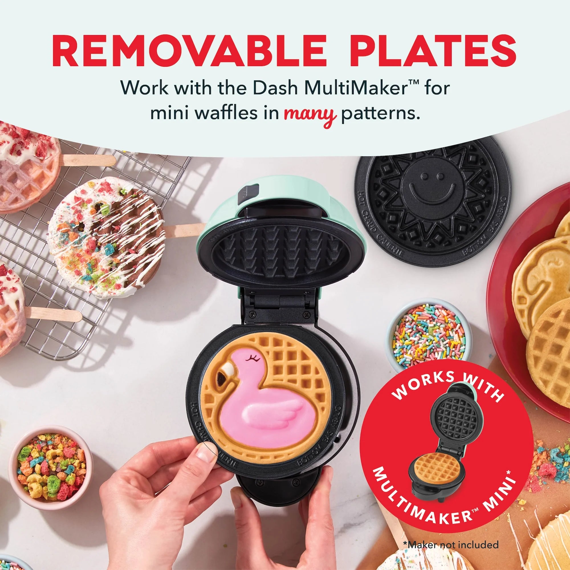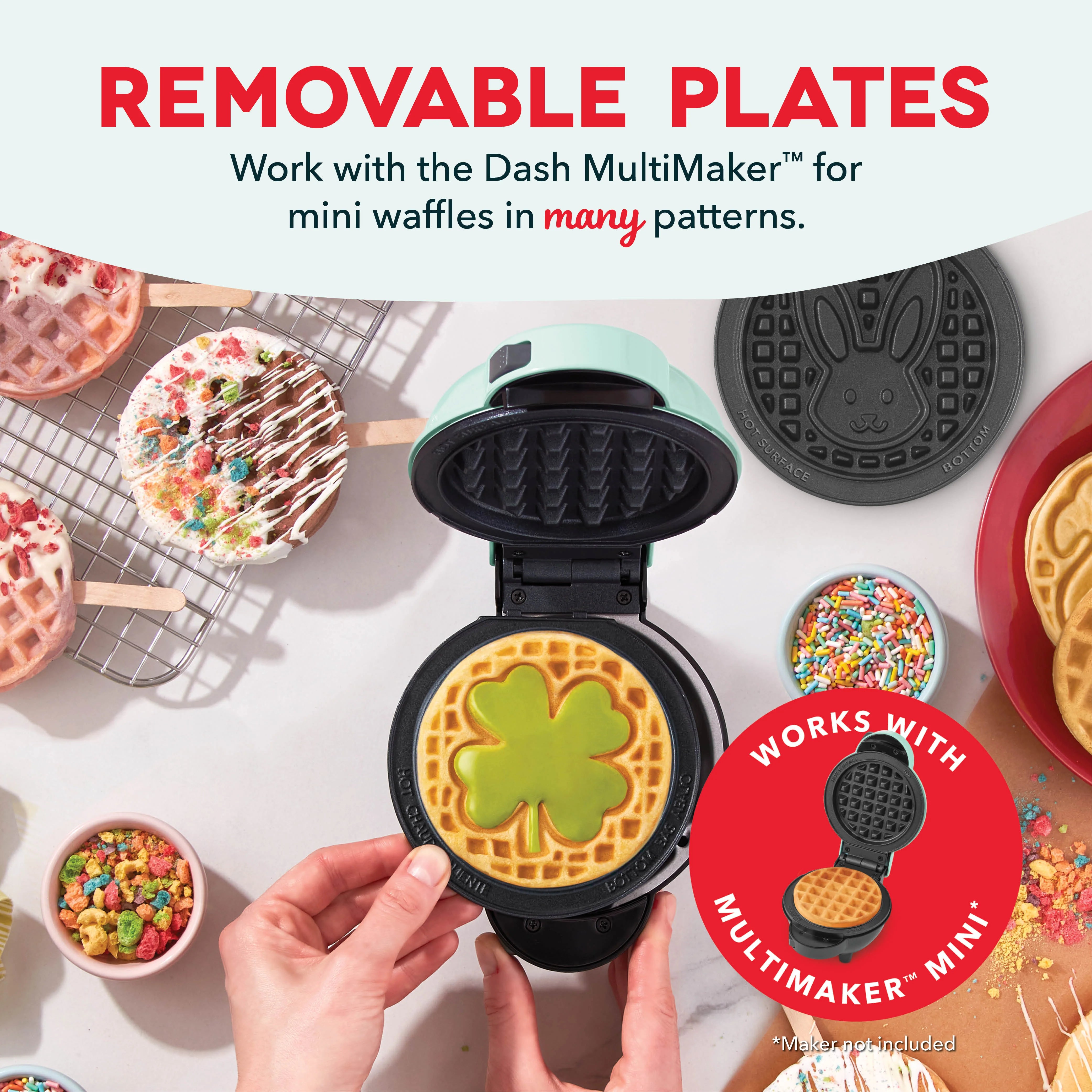 Collect them all! Each Two Plate Pack of Removable Plates is compatible with the Dash MultiMaker™ Mini Maker System. With just one Mini Maker, use your collection of Removable Plates to make many mini waffles in all your favorite seasonal shapes and patterns. Just swap out the Removable Plates, and the sky’s the limit! Dual nonstick cooking surfaces release food easily and cleanly for perfect results every time. Removable Plates pop in and out easily and go right into the dishwasher for a no-mess cleanup. Get ‘em while they’re hot!