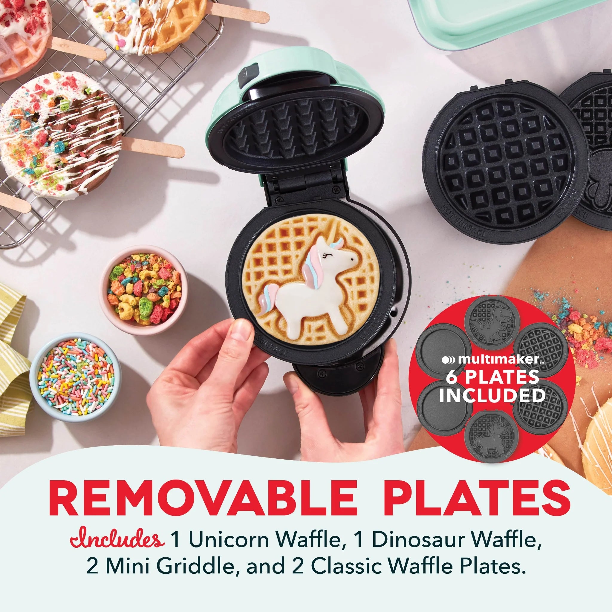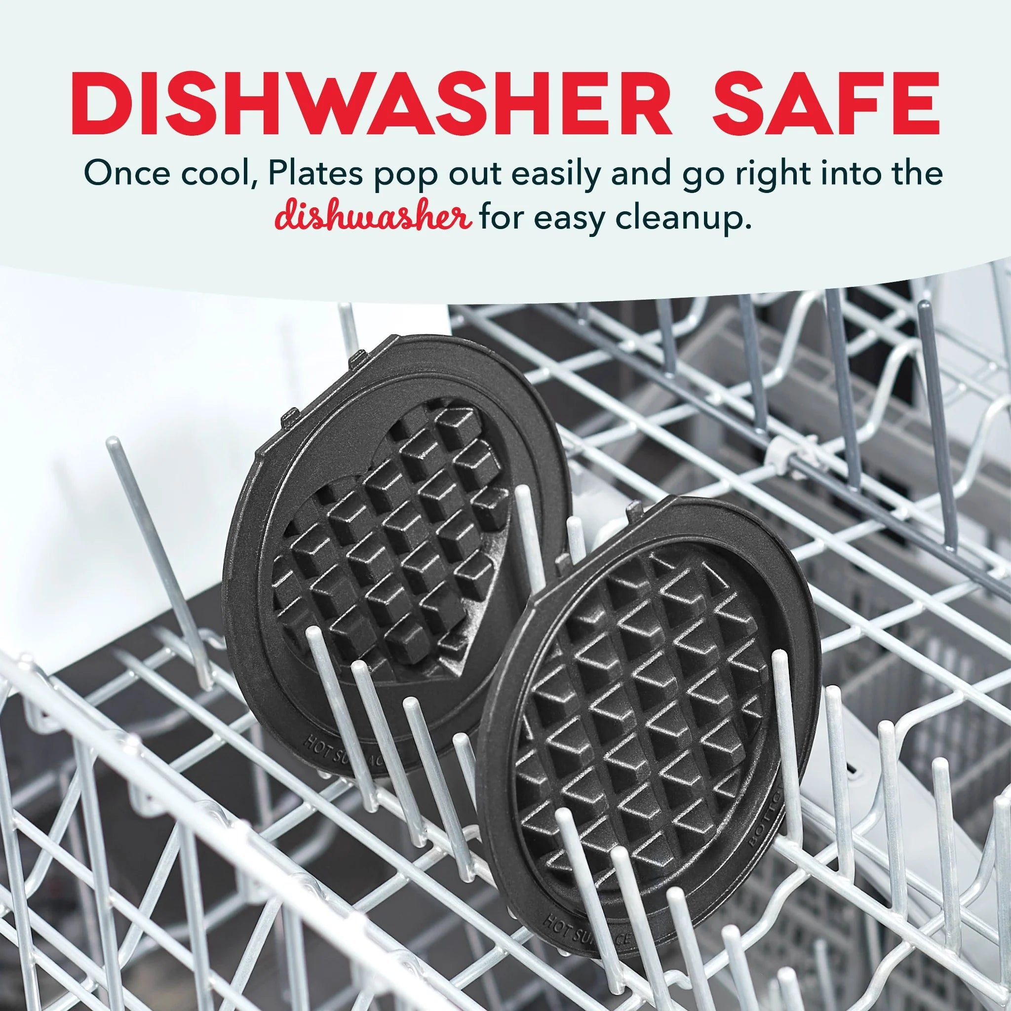 One Mini Maker to rule them all! The versatile 3-in-1 Mini Maker with Removable Plates pulls triple duty. The Heart and Classic Waffle Plates make fun and festive breakfast bites while the Griddle Plate rounds out your breakfast menu with eggs and sausage, plus it’s great for burgers! Plates heat quickly and evenly while the easy-release nonstick coating produces picture-perfect creations every time. Removable Plates seamlessly pop out from the Maker and go right into the dishwasher for a no-mess cleanup, then store handily in included Storage Case. Need a little griddle inspo? Check out the included Recipe Guide meal ideas big and small. And the Maker is compatible with all of Dash’s seasonal Plate Packs for festive fun all year long!