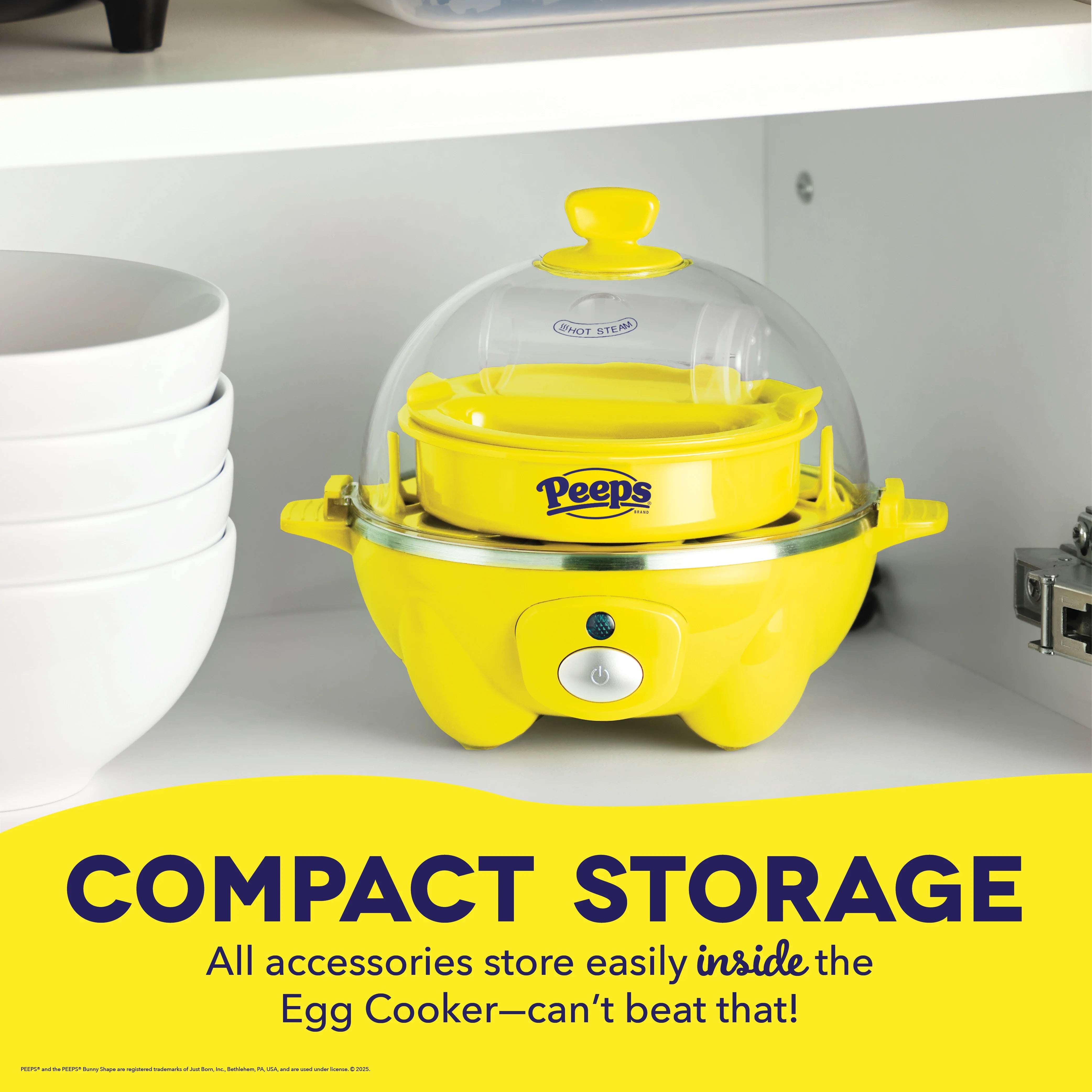 Cooks up to 7 boiled eggs, 2 poached eggs, or one individual PEEPS® Brand Bunny-shaped omelette at once