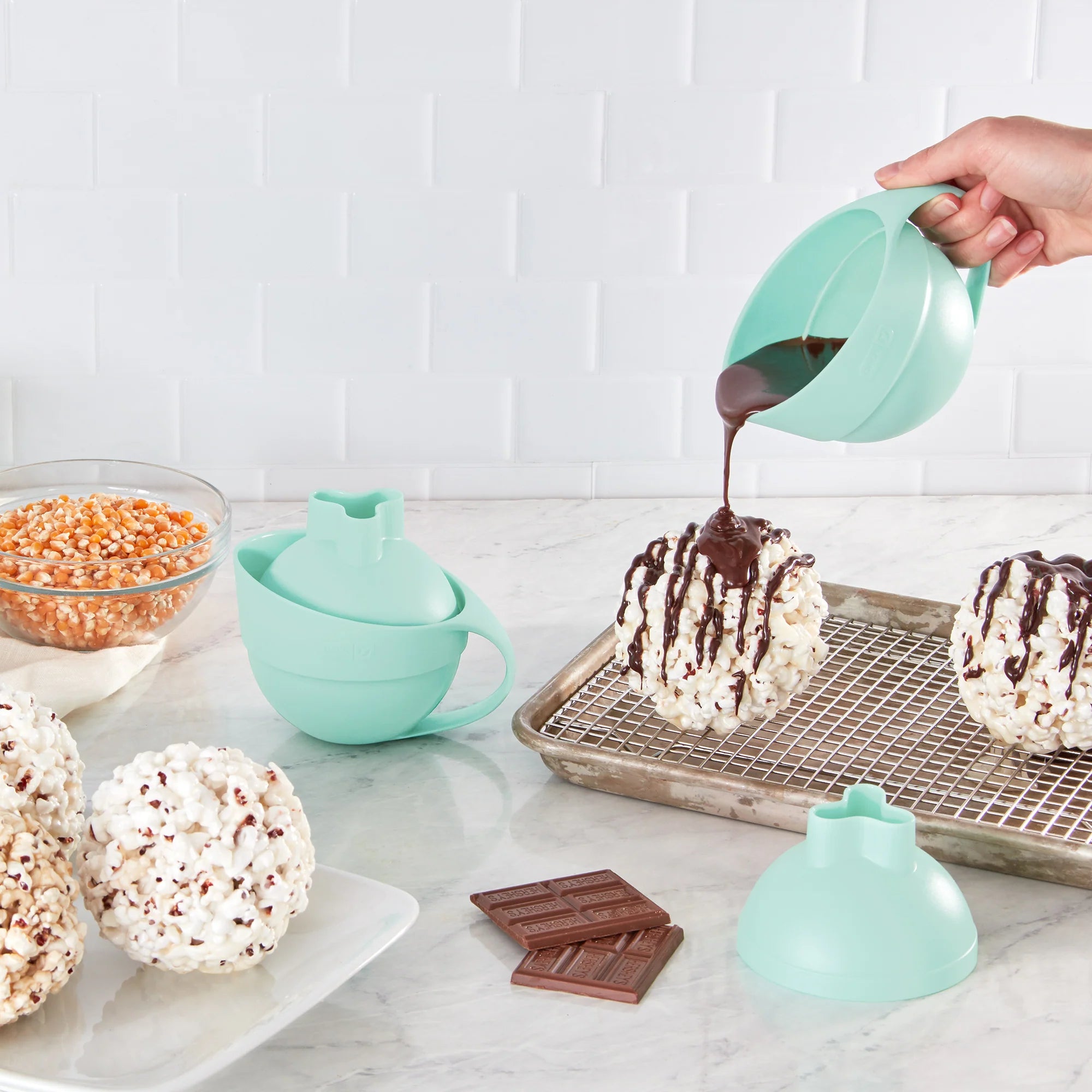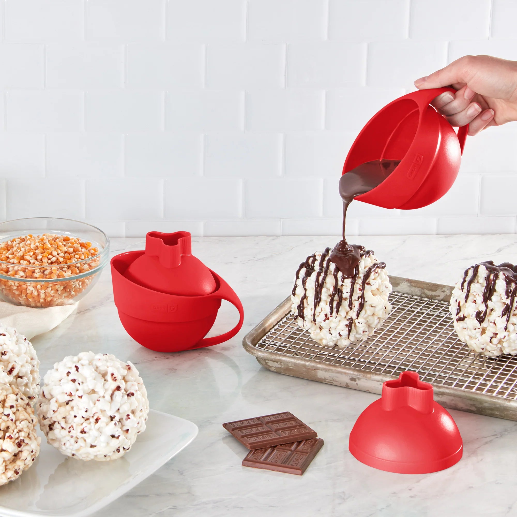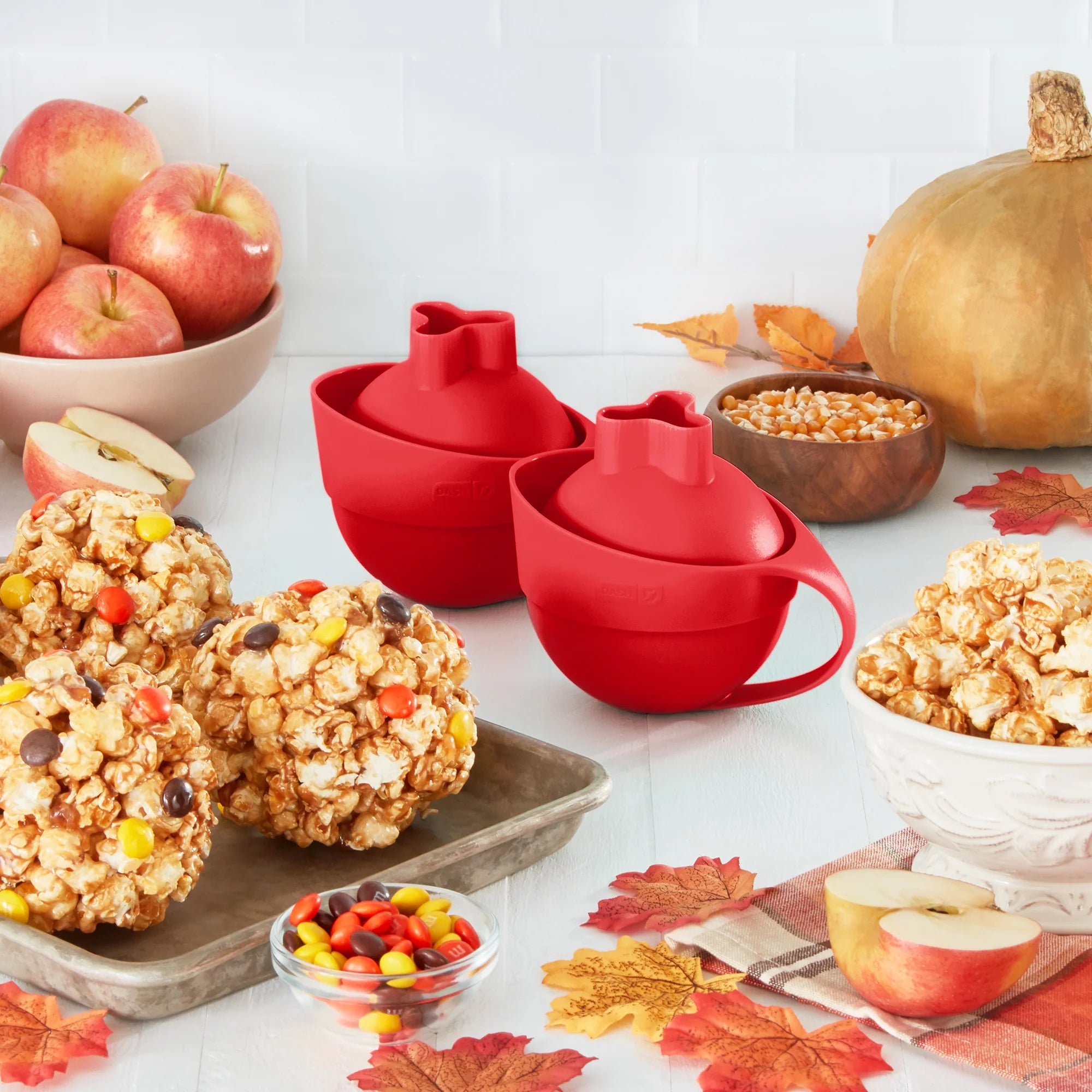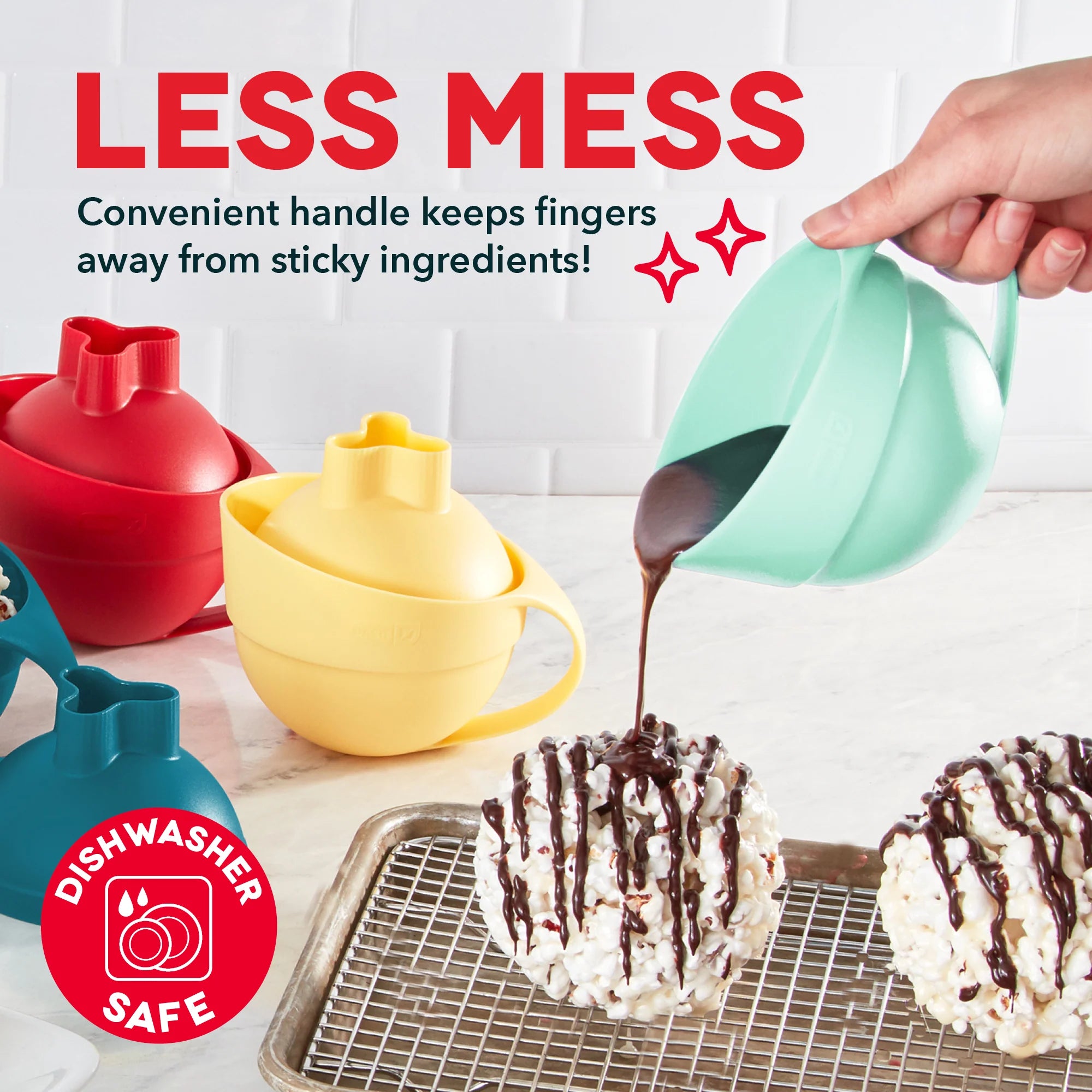 Create homemade popcorn balls and more with the Dash Popcorn Ball Maker Sets! Make popcorn balls, cereal balls and even scoops of shaved ice while keeping your hands mess-free. Simply use the base to scoop up your ingredients, place the lid on top and twist to form into a ball. You can even add a ice pop stick in the Lid’s opening to make easy-to-eat, portable treats. Popcorn Ball Makers release foods easily and are top-rack dishwasher safe for quick cleanup. Microwave ingredients like chocolate inside the Popcorn Ball Maker to decorate your treats—the included Recipe Guide will get you started with both classic and creative popcorn balls to try!