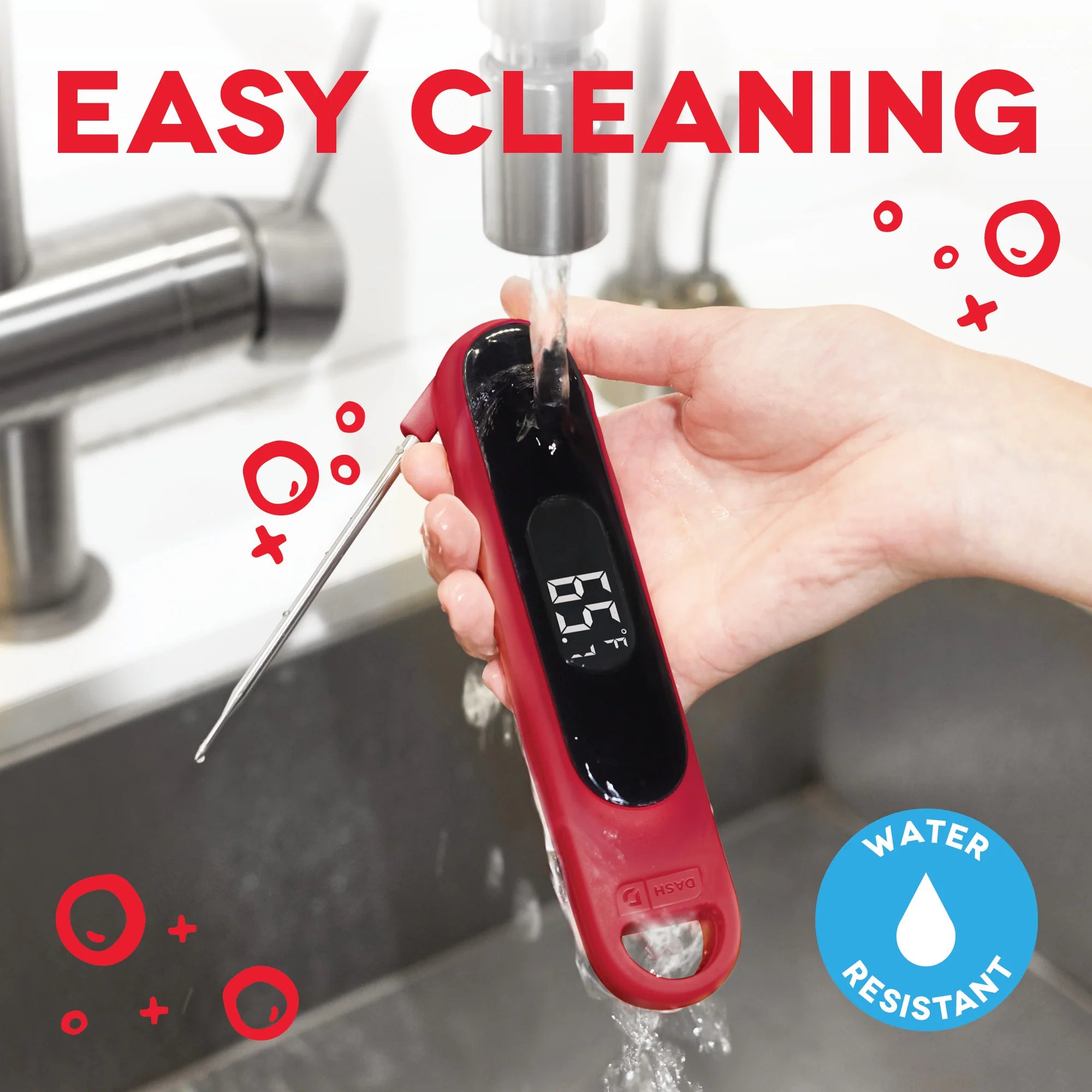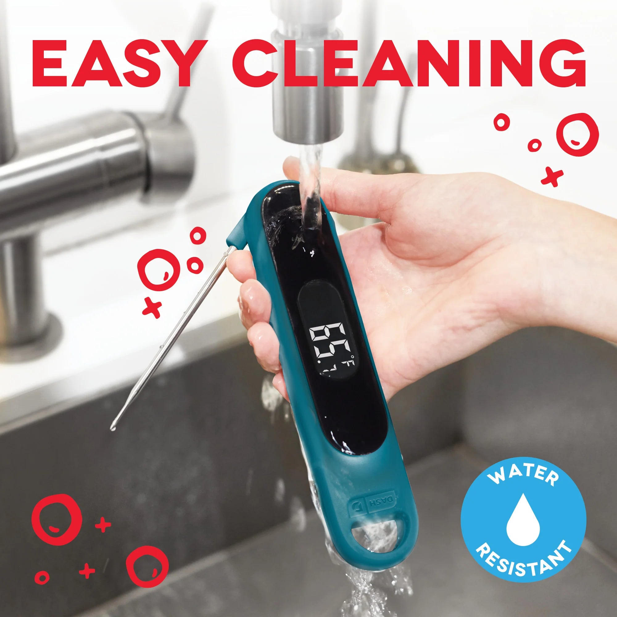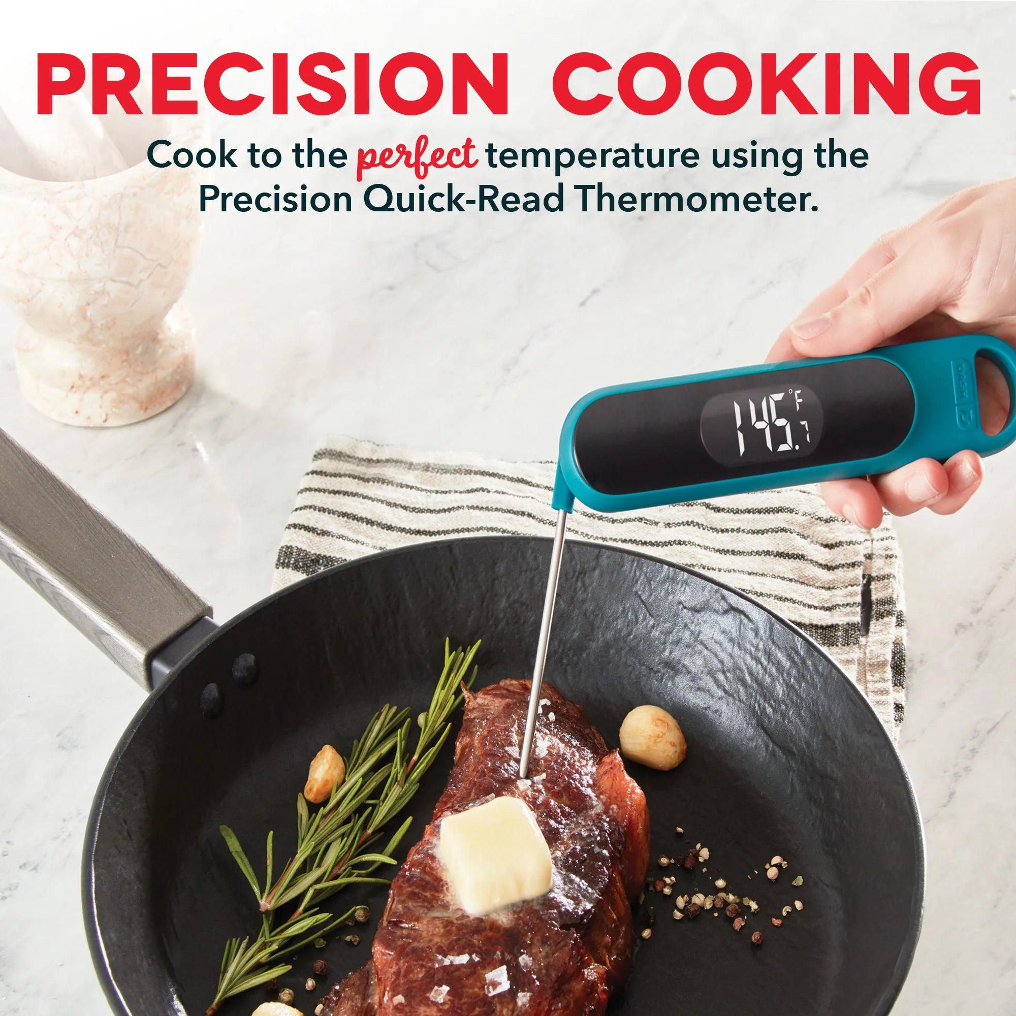 Elevate your cooking with the Dash Precision Quick-Read Thermometer! Check meats and entrées for the perfect doneness while cooking, or read the temperature of chilled desserts as they cool! The Quick-Read Thermometer’s probe provides an accurate reading within 3 seconds, whether hot or cool, and you can easily read in Celsius or Fahrenheit on the LCD display. When you’re done, the thermometer is water resistant and easy to clean!