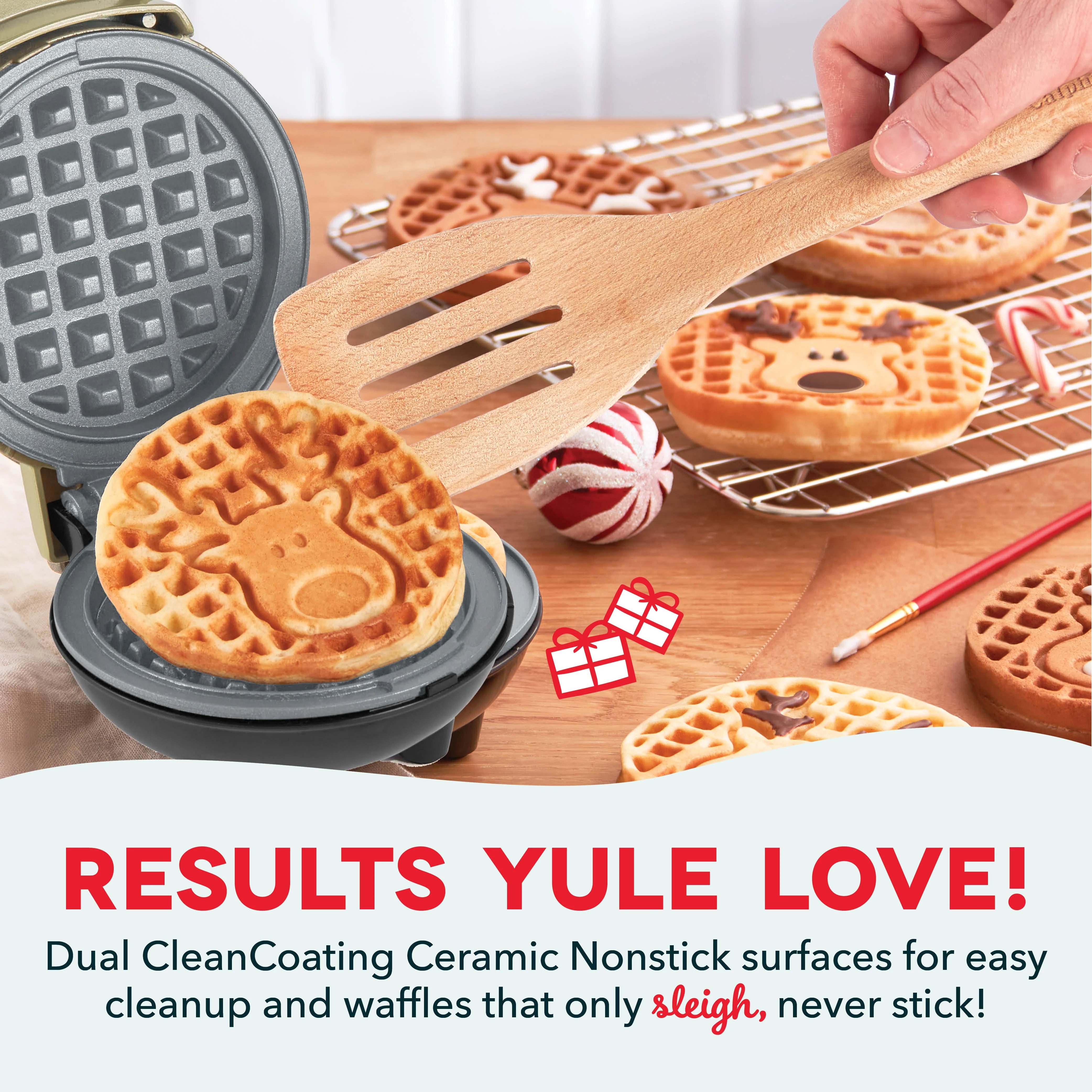 Santa Claus is coming to town! Sleigh holiday hosting with 4” mini waffles in a ready-to-decorate Reindeer pattern. Santa’s Little Helpers will love decorating these merry minis—ideal for seasonal celebrations, holiday bake sales, and all-around making spirits bright! Dual nonstick cooking surfaces release waffles cleanly for photo-ready results and no-mess cleanup. As compact as it is cute, a built-in cord wrap at the base makes for easy drawer storage. And the included Recipe Guide is filled with a sleigh-ful of inspiration to help you make it homemade for the holidays!