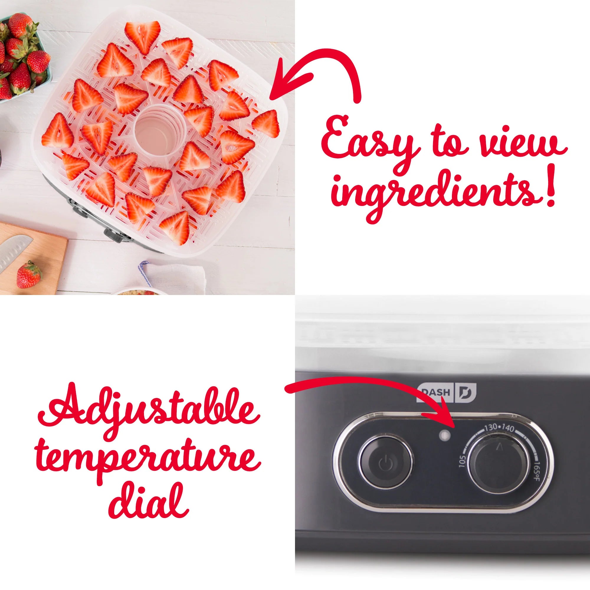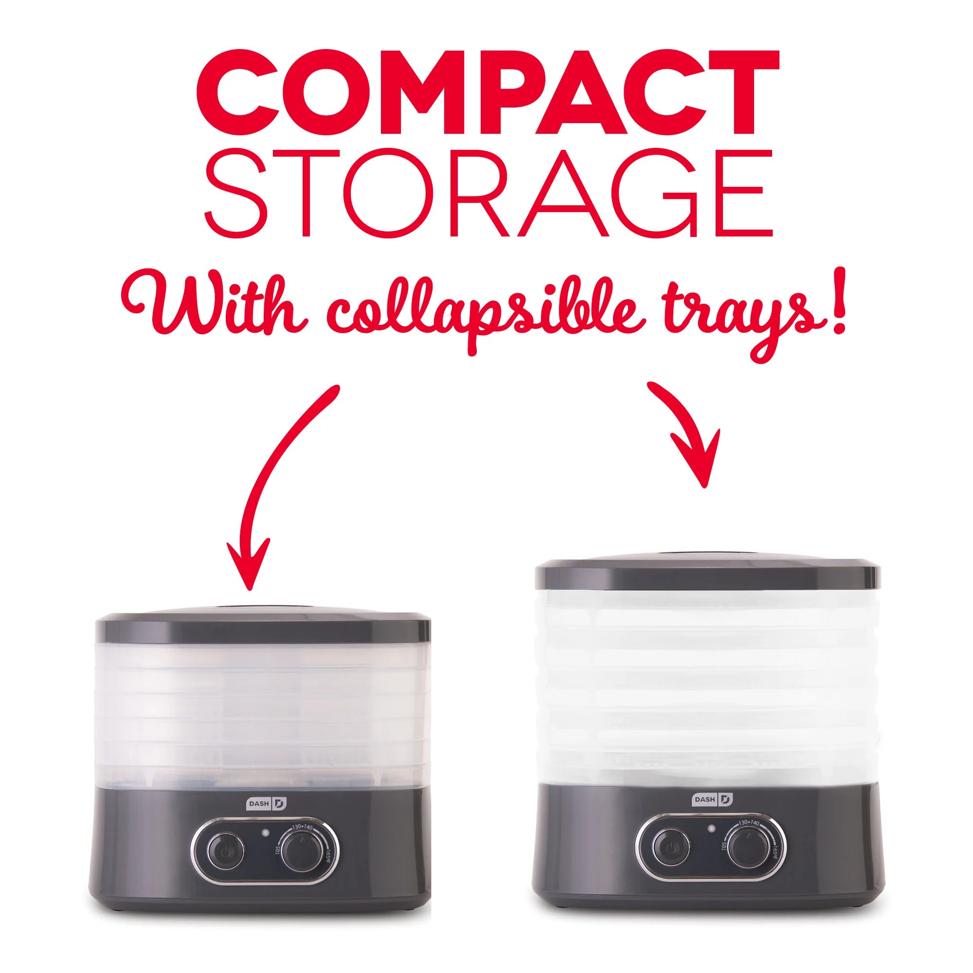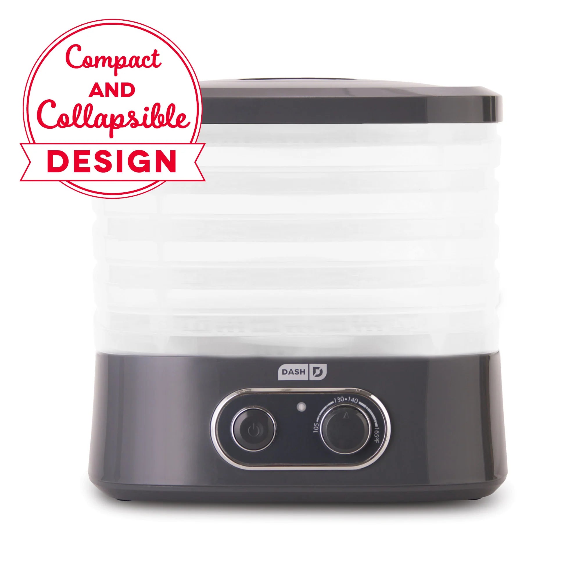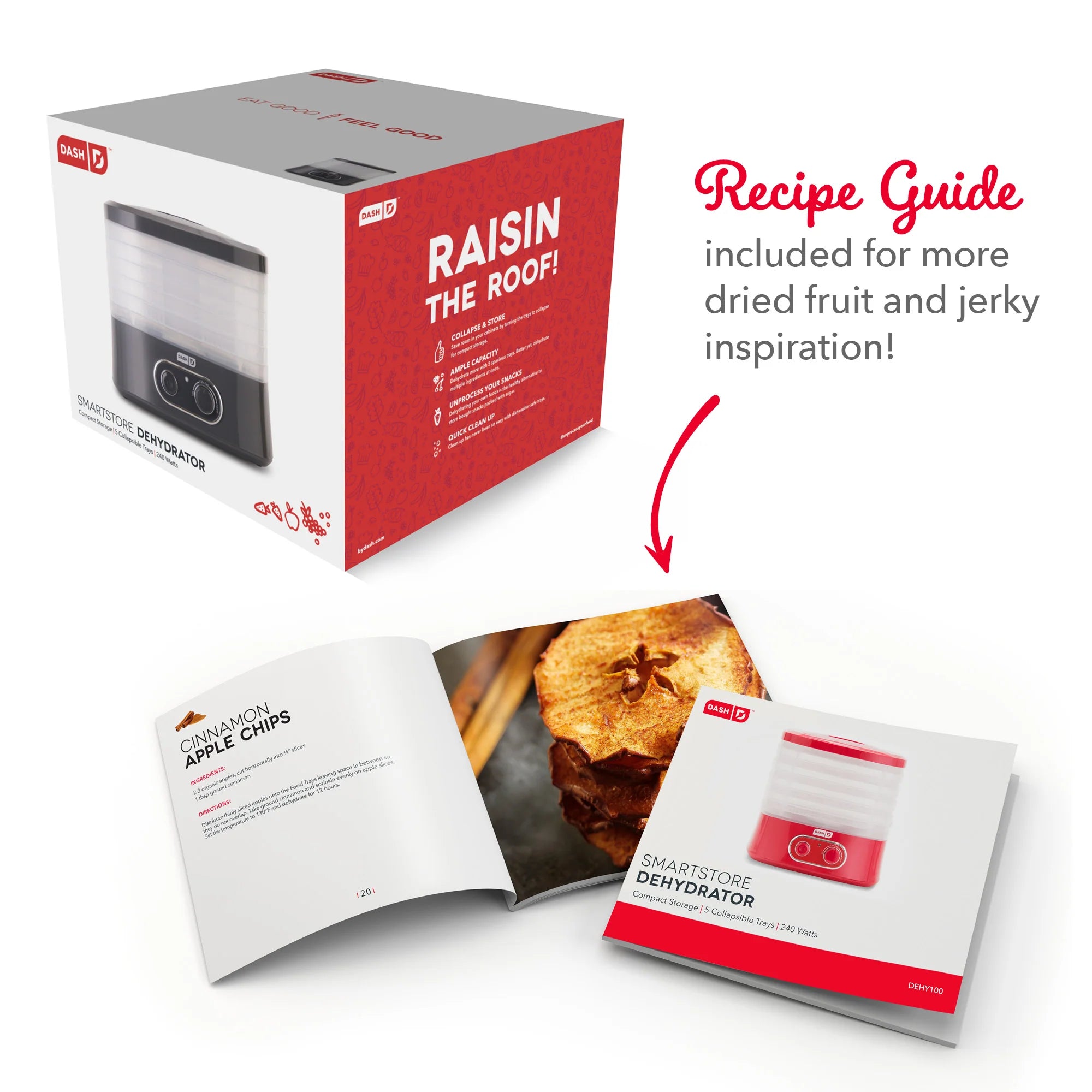 Make your own healthy snacks anytime with the Dash SmartStore® Dehydrator! 5 stackable trays provide room for five layers of ingredients, and the included Recipe Guide will tell you the exact time and temperature to make veggie chips, dried fruit, jerky, trail mix, and other tasty snacks. Just set it and leave it overnight or during the day, and your food will be dehydrated when you come back! Trays are dishwasher safe for easy clean-up and collapsible so storage is compact. Cut out added sugar and sulfites and create healthy, unprocessed alternatives to store-bought snacks right at home.