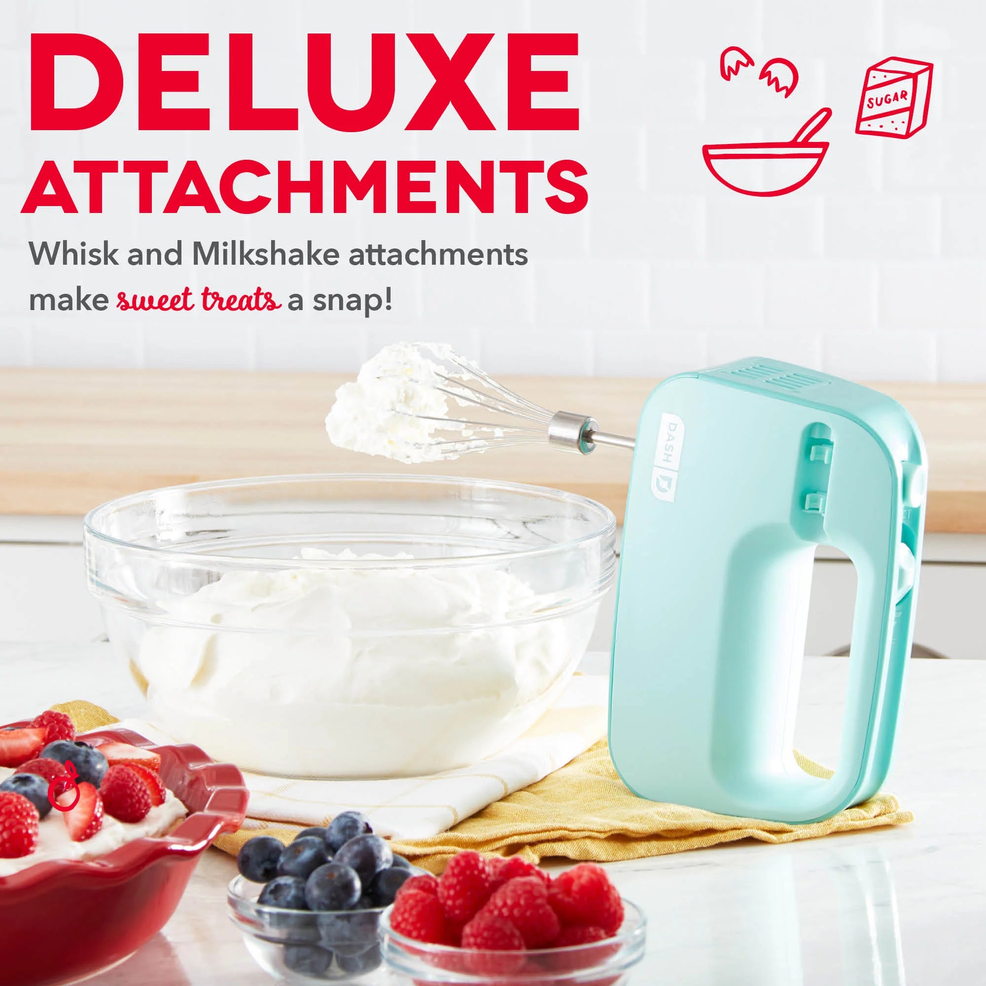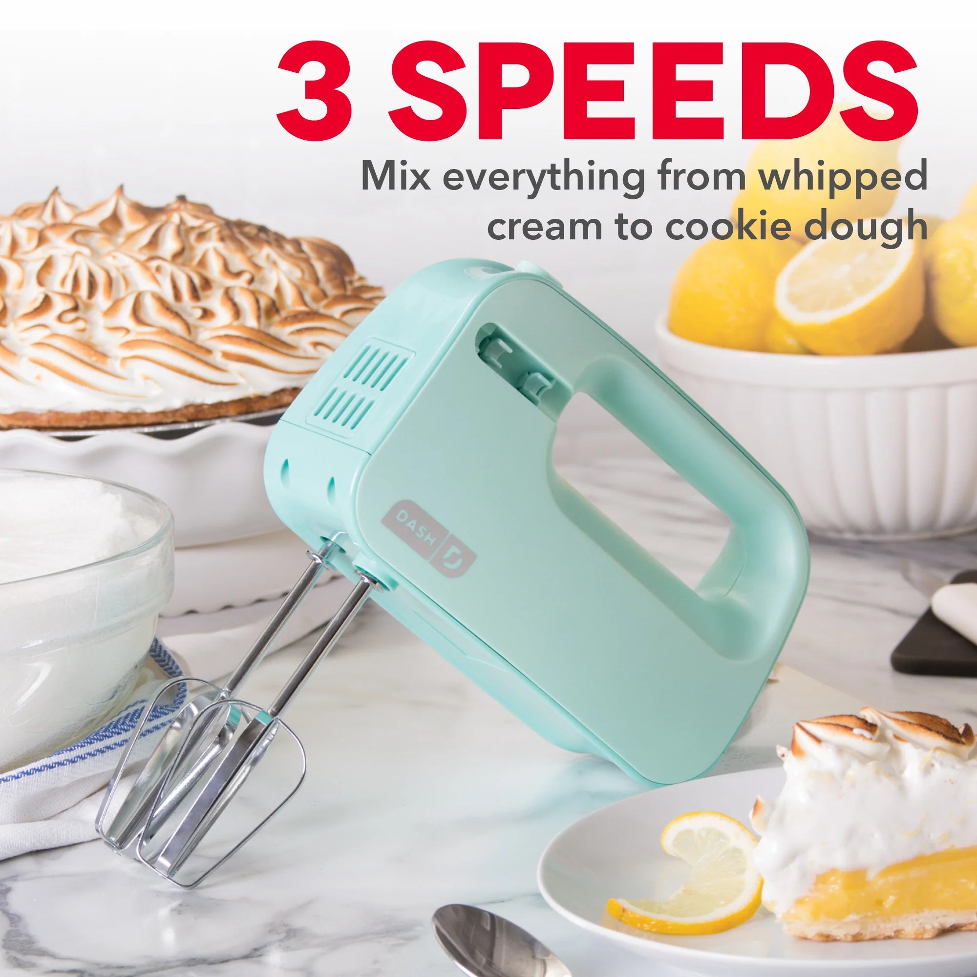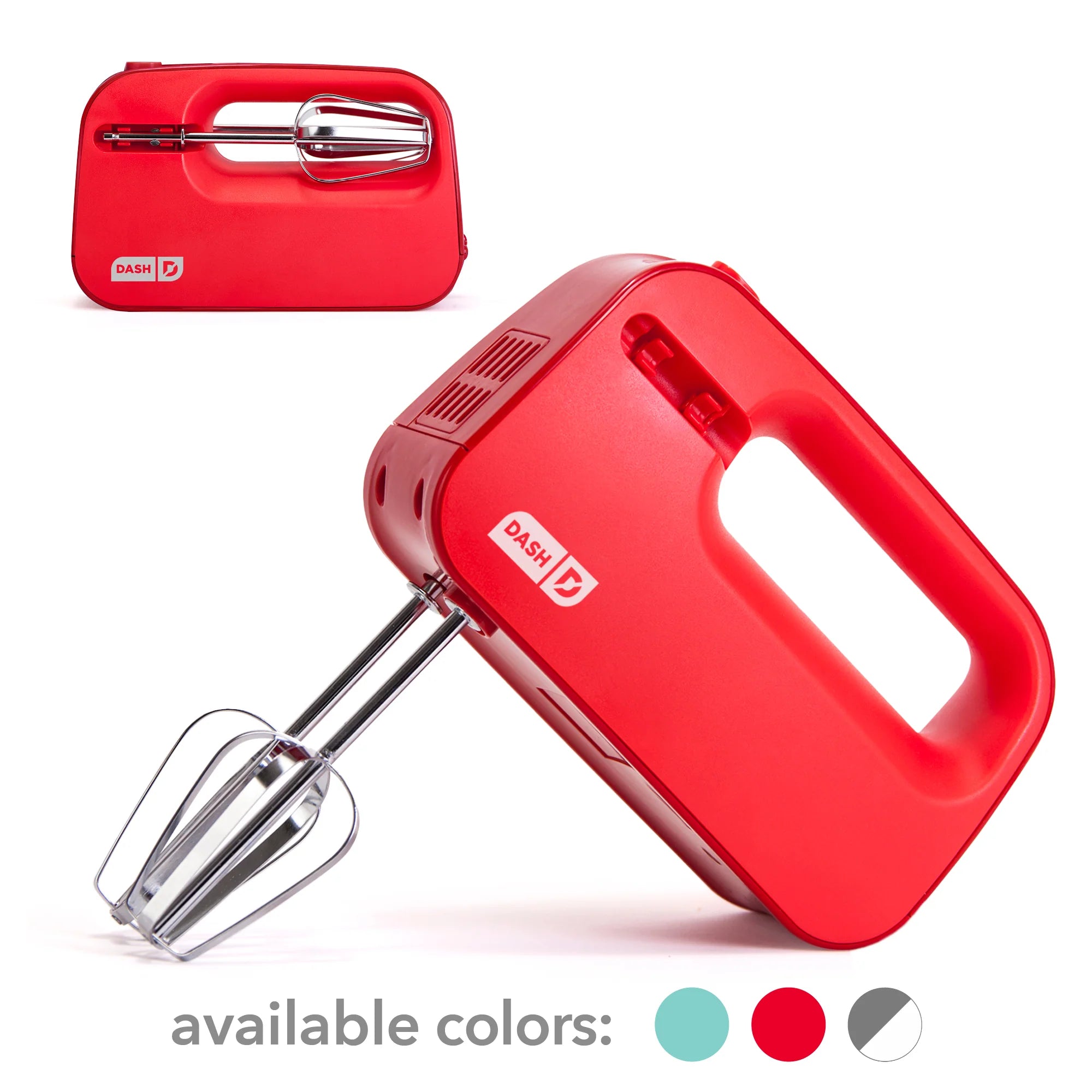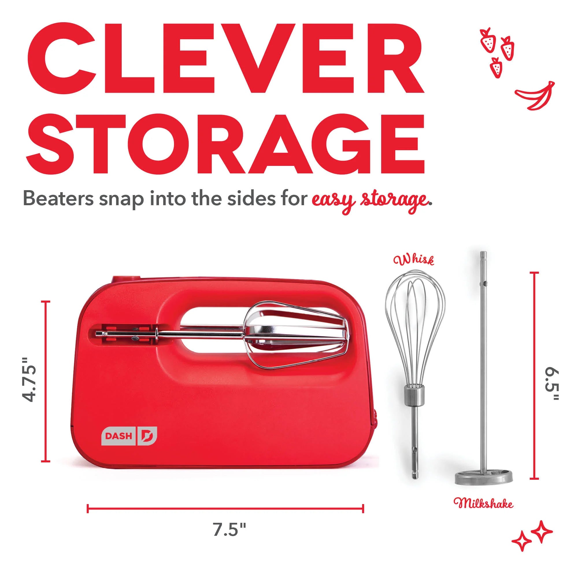 Compact storage combines with three-speed power in the Dash SmartStore® Hand Mixer.