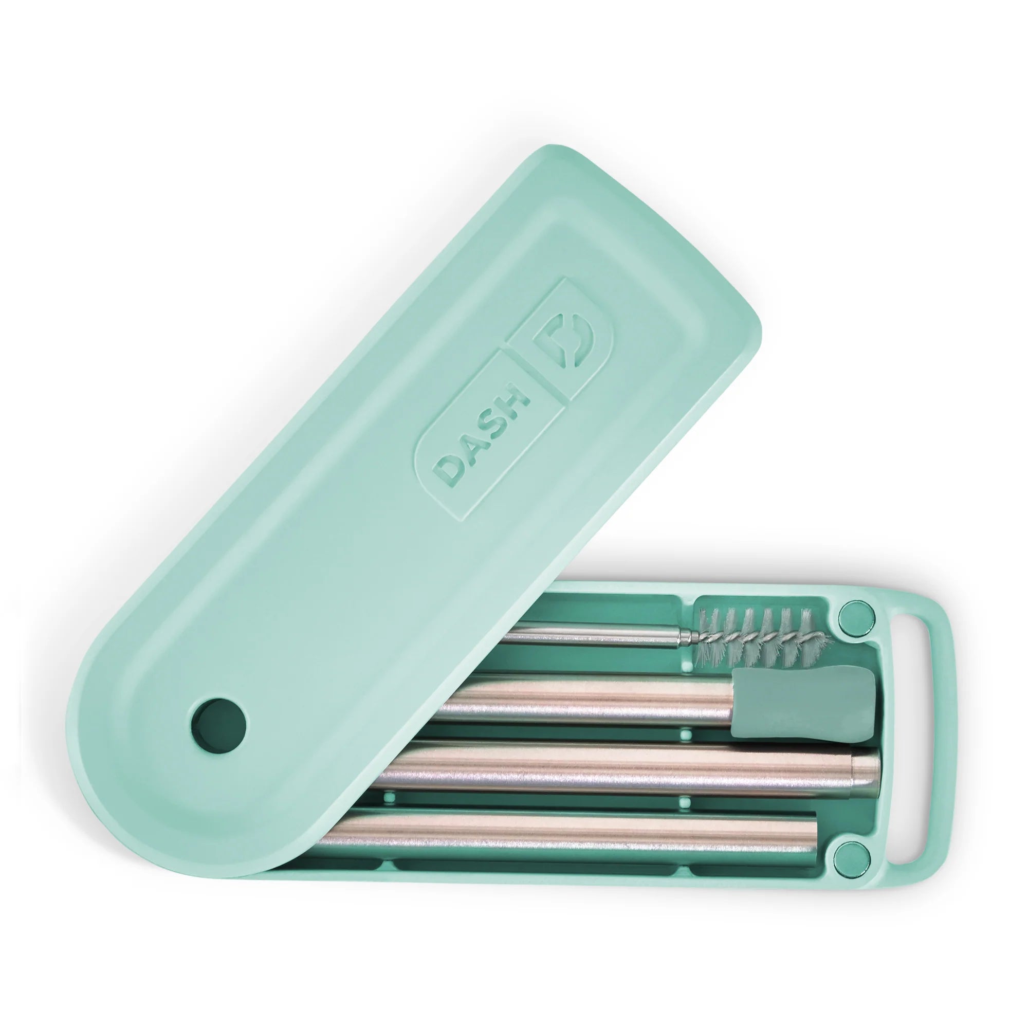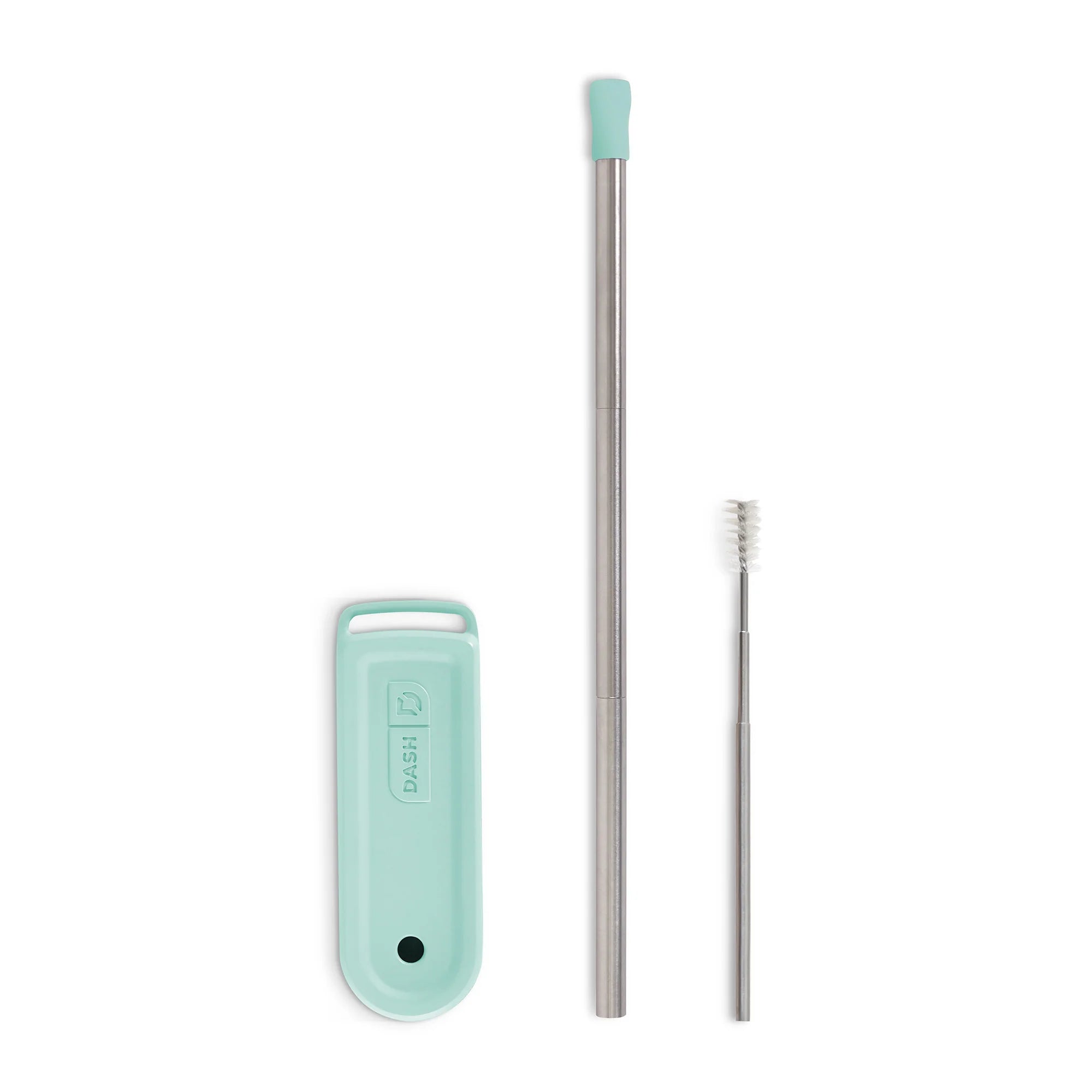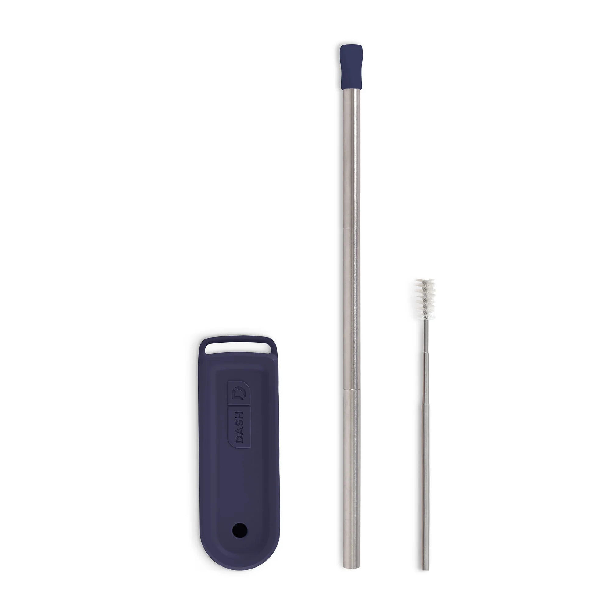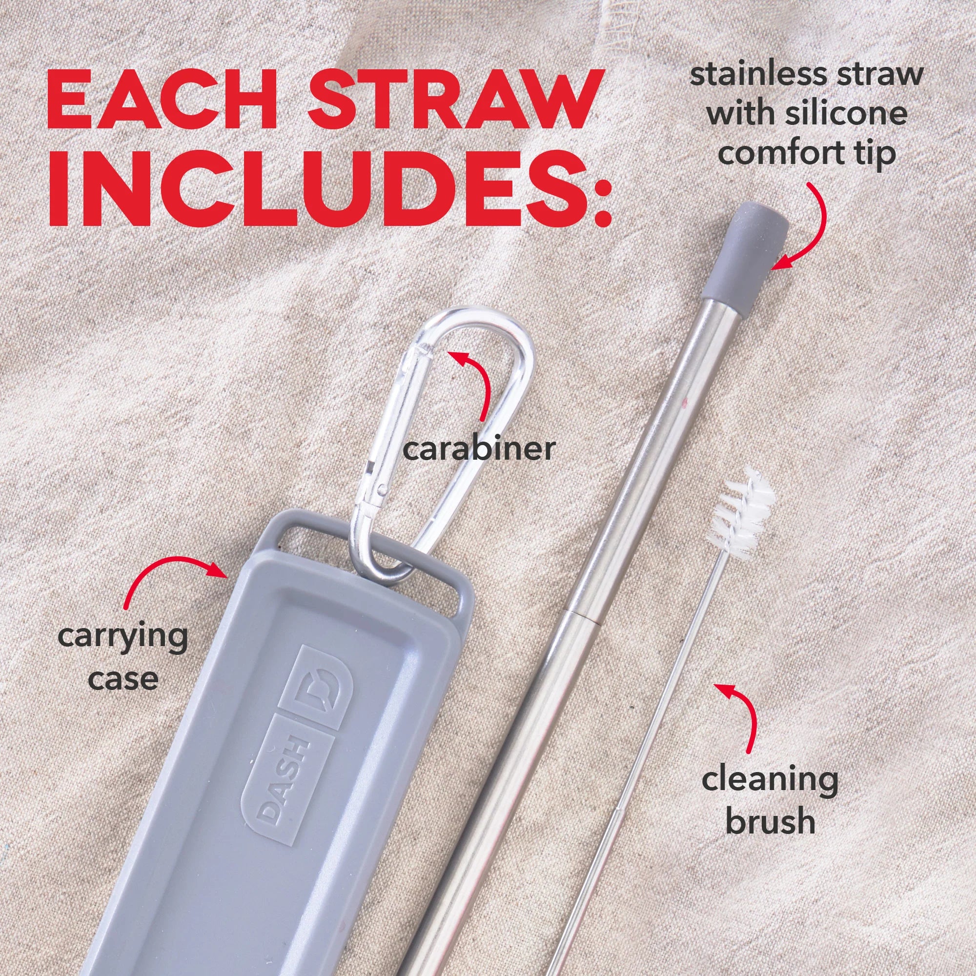 Enjoy refreshing beverages from your own personal, portable straw with the Dash Super Straw! This food-grade stainless steel straw cuts down on single use plastic and fits perfectly in even large 24 oz beverages. The silicone comfort tip adds a pop of color and is molded to the stainless base, so it doesn’t collect dirt or fall off. Ideal for traveling, the Super Straw is held together with powerful magnets to stir even thick beverages or ice, and the straw collapses easily into its own Carrying Case. The Super Straw comes with everything you need to sip on the go, including a collapsible nylon Cleaning Brush and a Clip to attach the case to your backpack or bag.