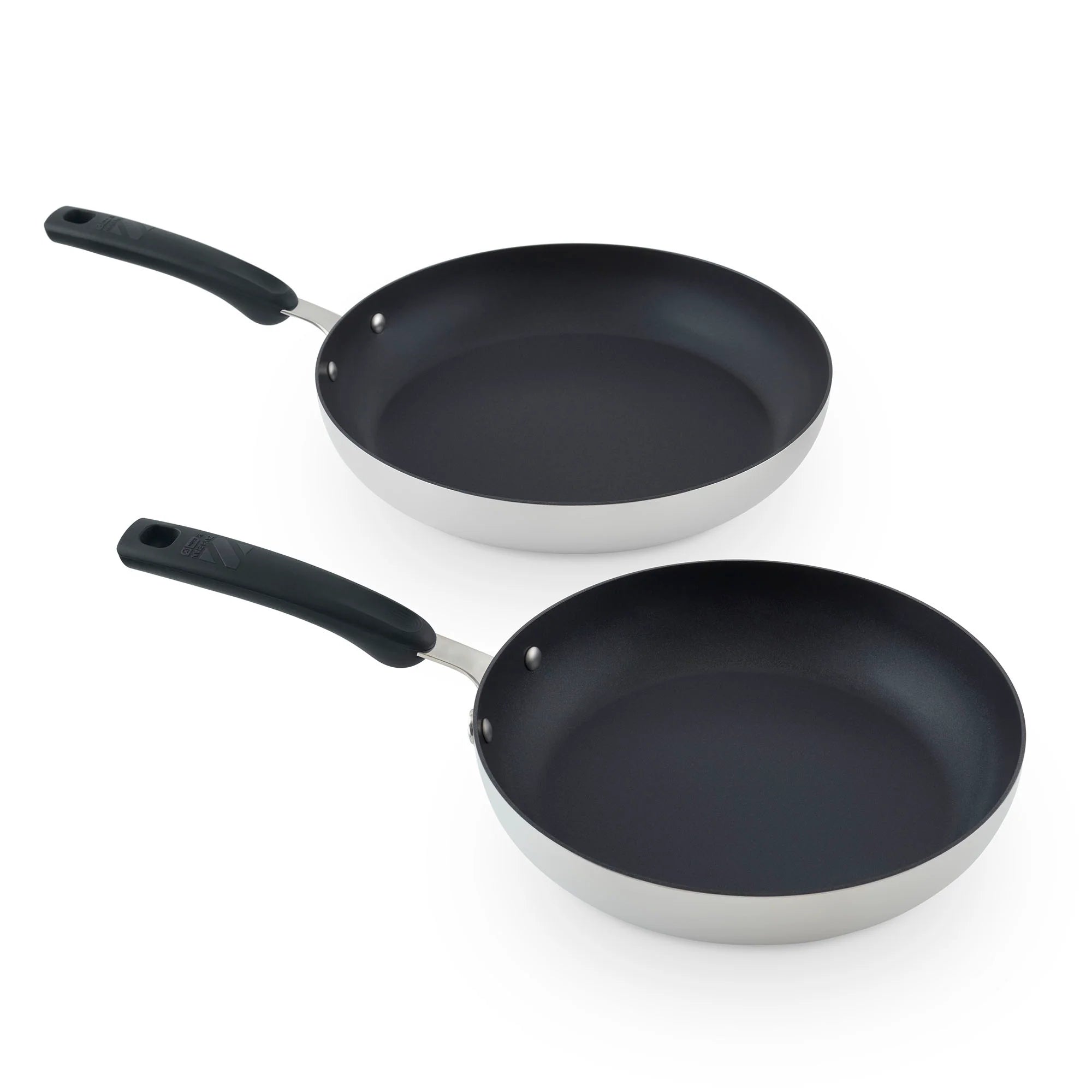 Instantly elevate your cookware with these Zakarian by Dash TruPro™ Stainless Steel Fry Pans. They’re a professional chef’s best friend: Each pan (one 10” and one 12”) features our unique TriGlide™ nonstick coating, so food releases with ease for simple serving and cleanup, and with a Tri-Ply TruPro™ stainless steel construction, they heat up quickly and evenly. Plus, we’ve included recipe cards from Chef Zakarian himself, so you can whip up delicious meals the whole family will love right away.