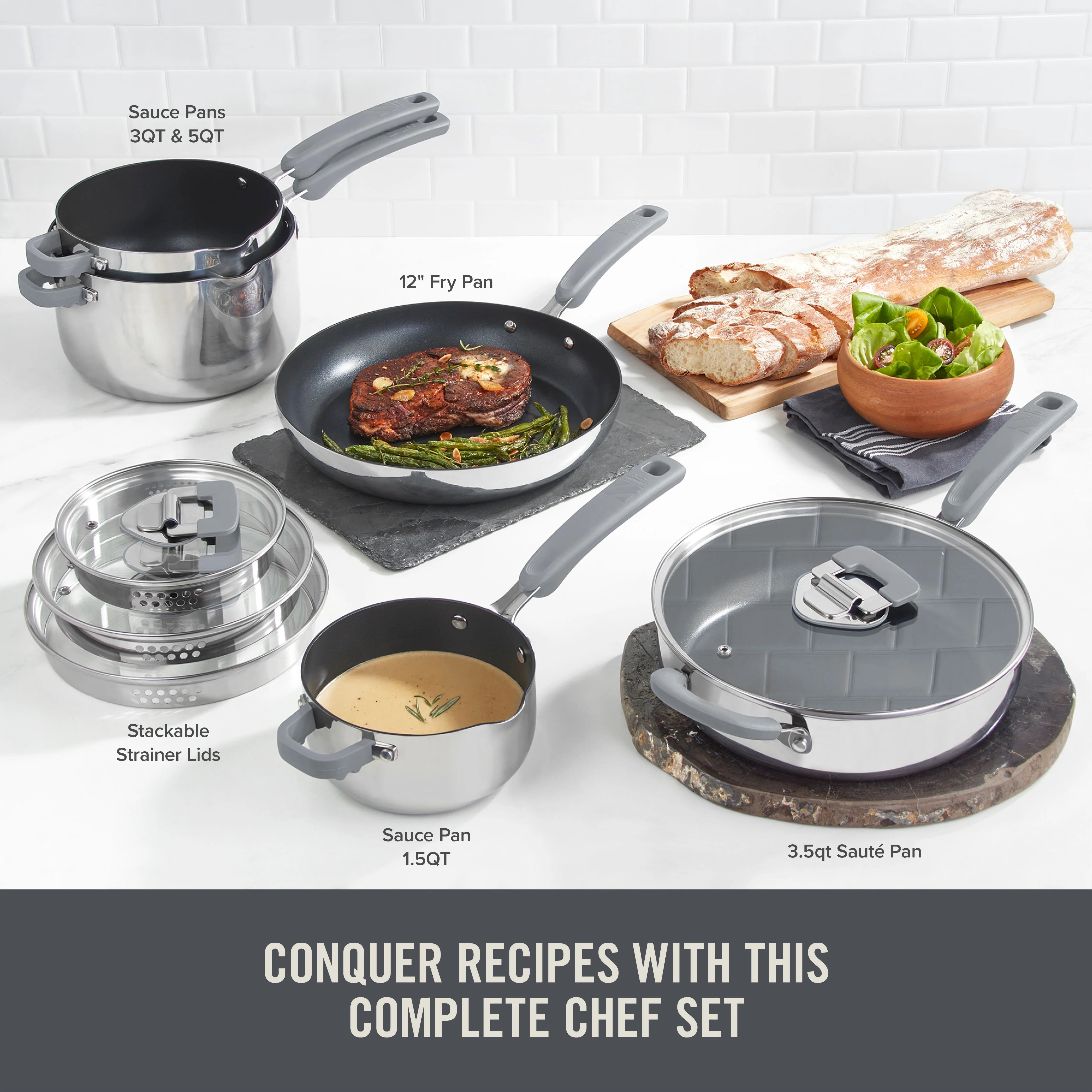 Create restaurant-quality meals at home with the TruPro™ Tri-Ply 10 Piece Stainless Steel Cookware Set.