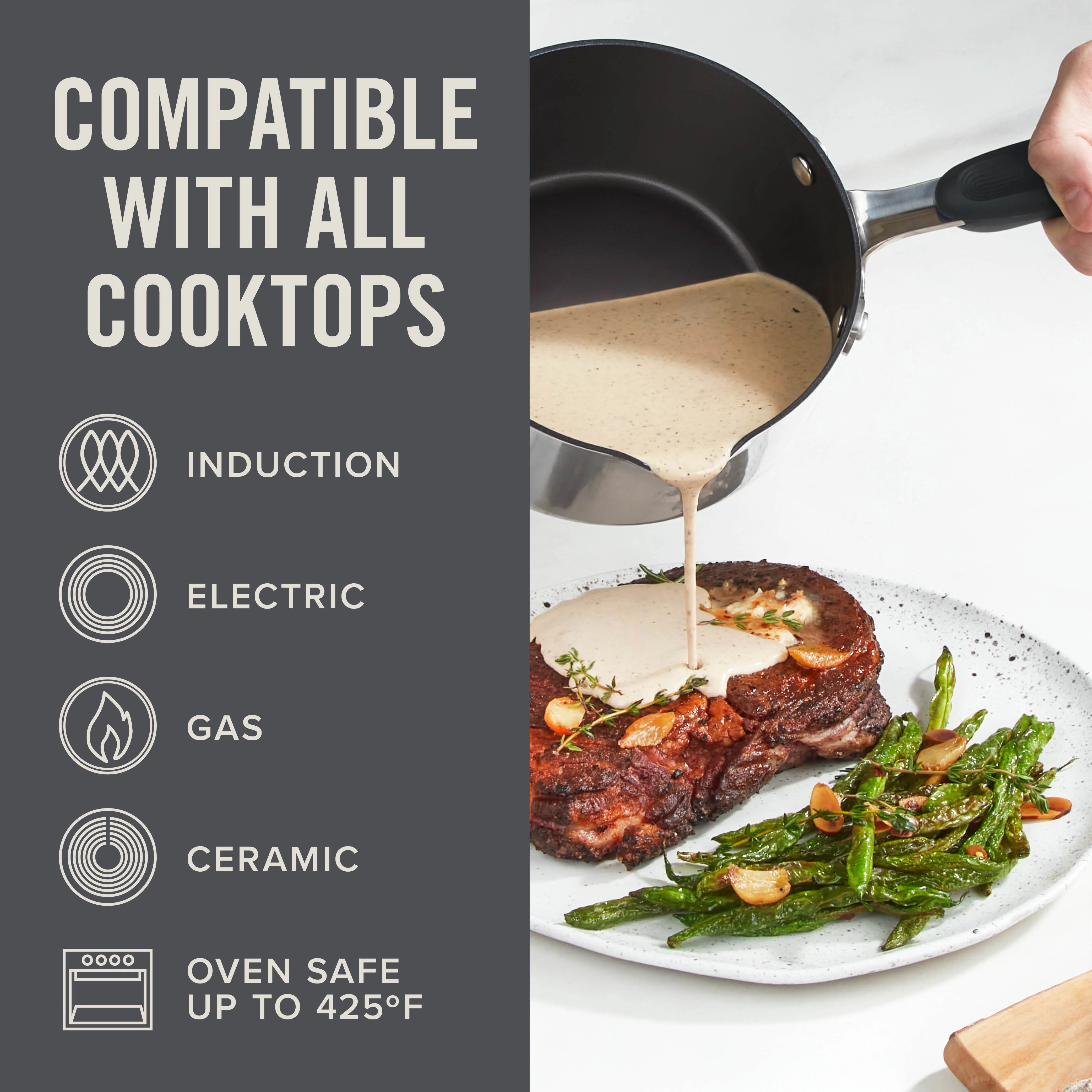 Create restaurant-quality meals at home with the TruPro™ Tri-Ply Nonstick 6 Piece Stainless Steel Stacking Sauce Pan Set.